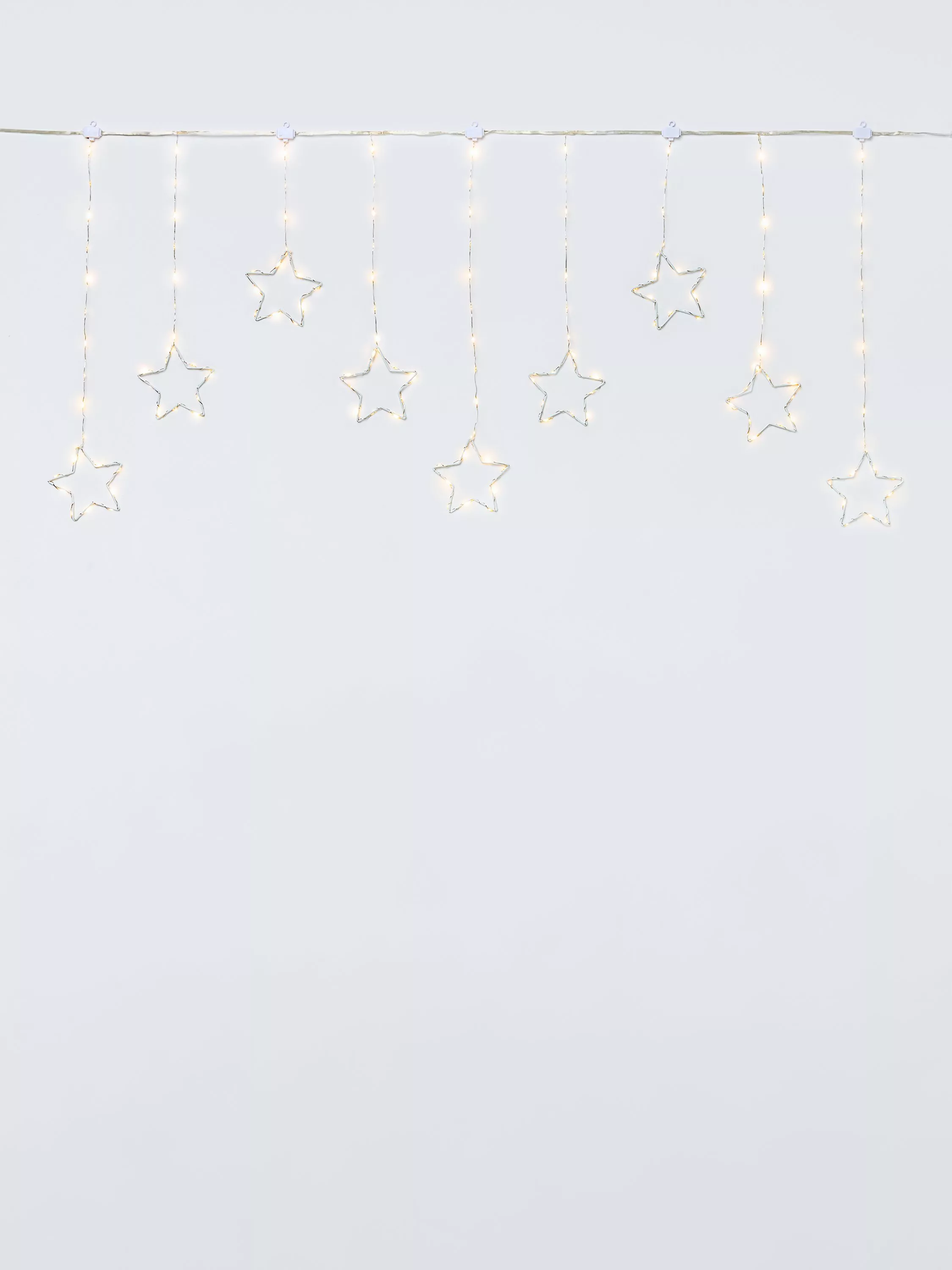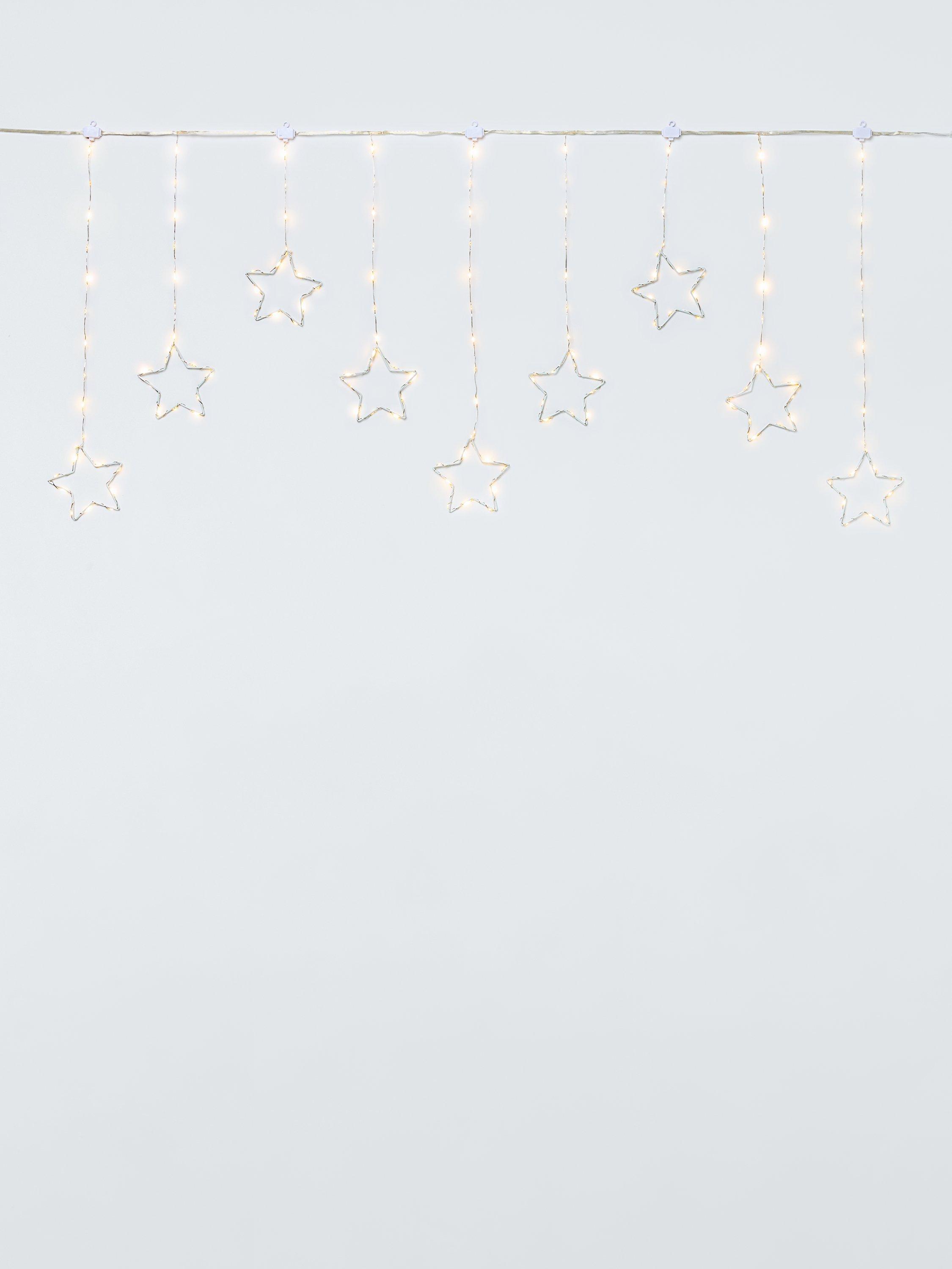 Hang this curtain of stars in your window to give a warm and welcoming glow. A timer automatically switches the lights on at the same time each day and off after 8 hours.