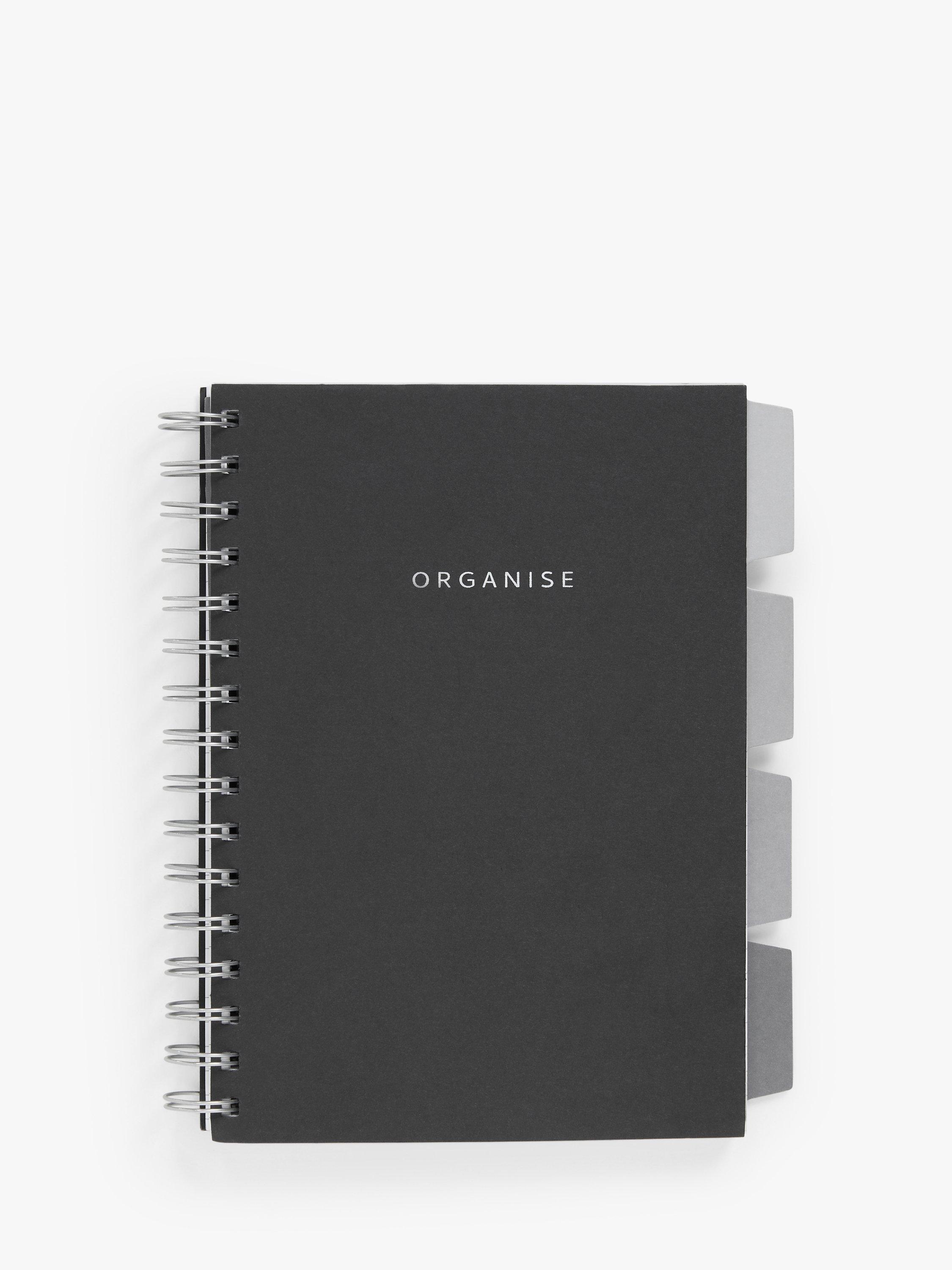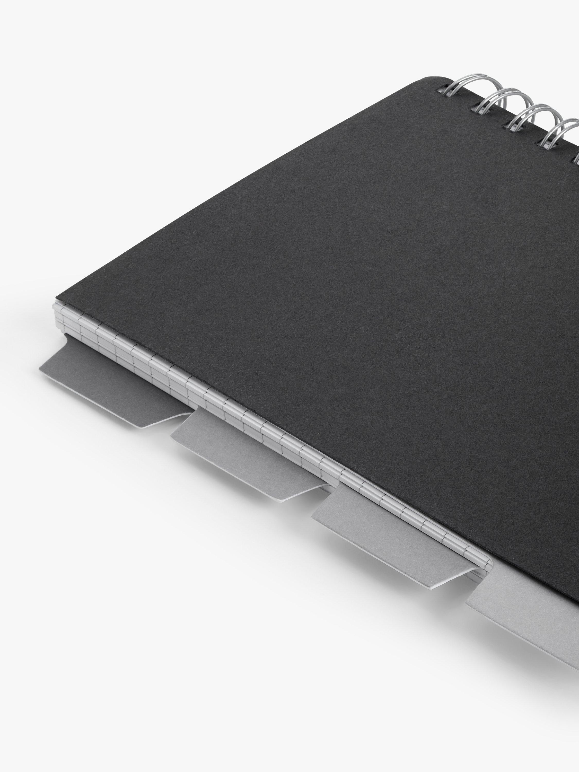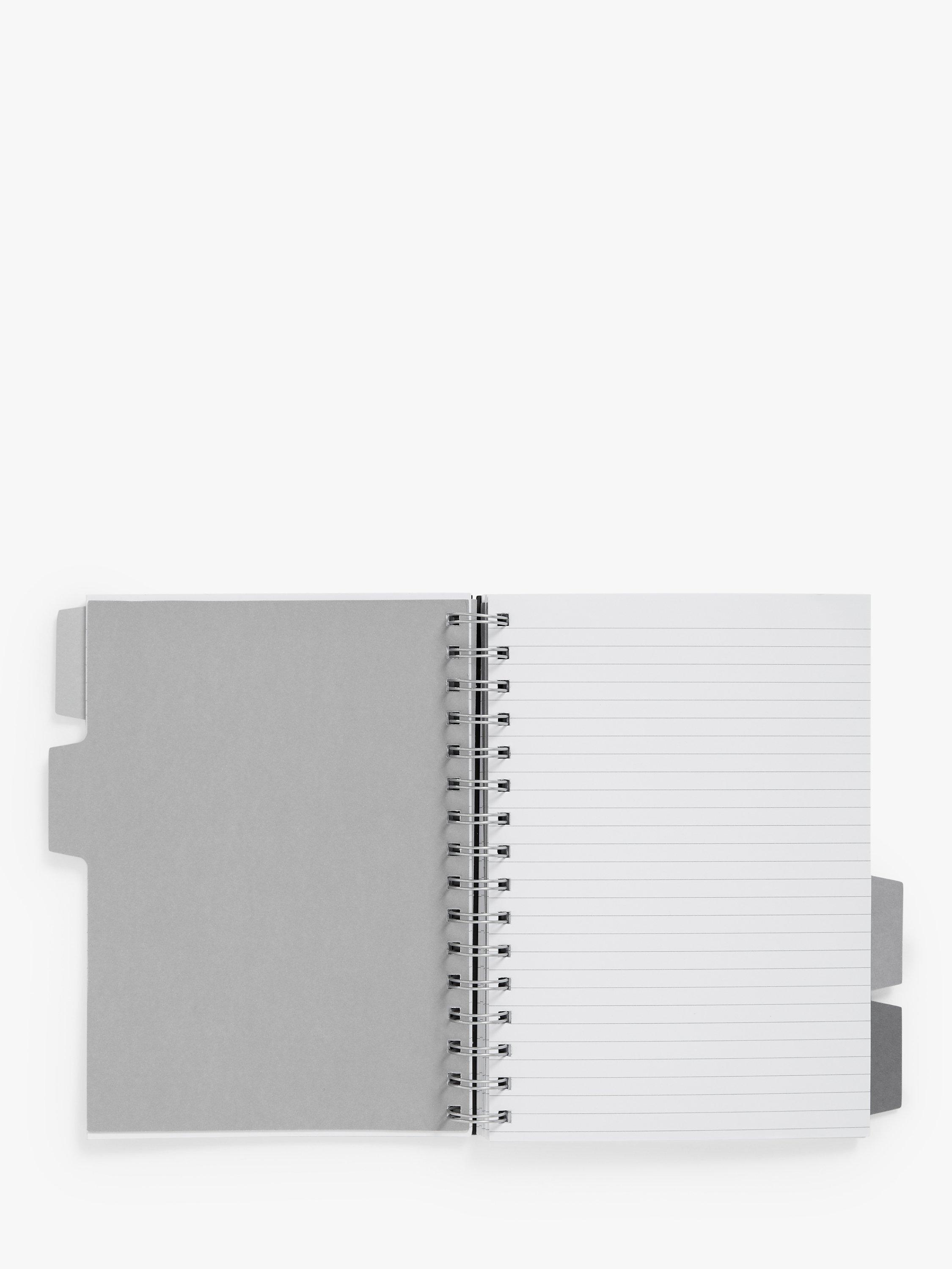 A spiral bound A5 notebook with dividers.