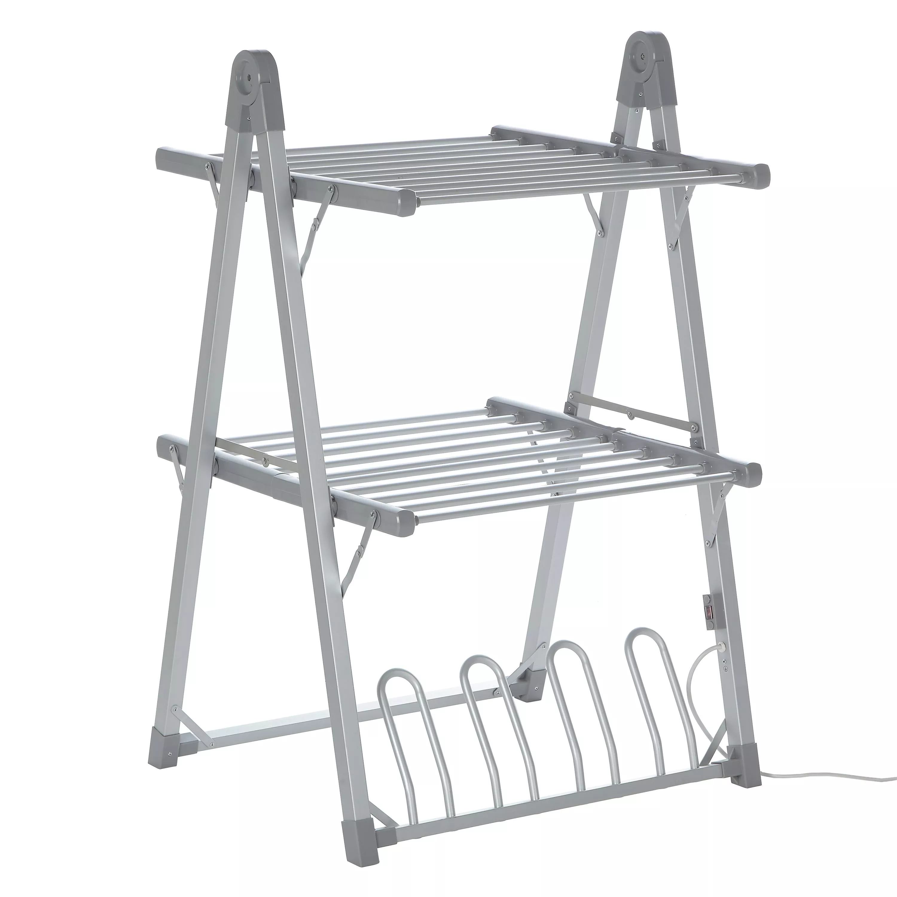 Dry your clothes quickly without cluttering your radiators with this prim and practical indoor airer. Just plug it in to the mains, feel the aluminium alloy heat up, and place your wet laundry on the 2 tiers to enjoy super-toasty results. Sturdy, lightweight and foldable, it's super easy to position this airer to suit your needs and you’ll have no problem storing it either.