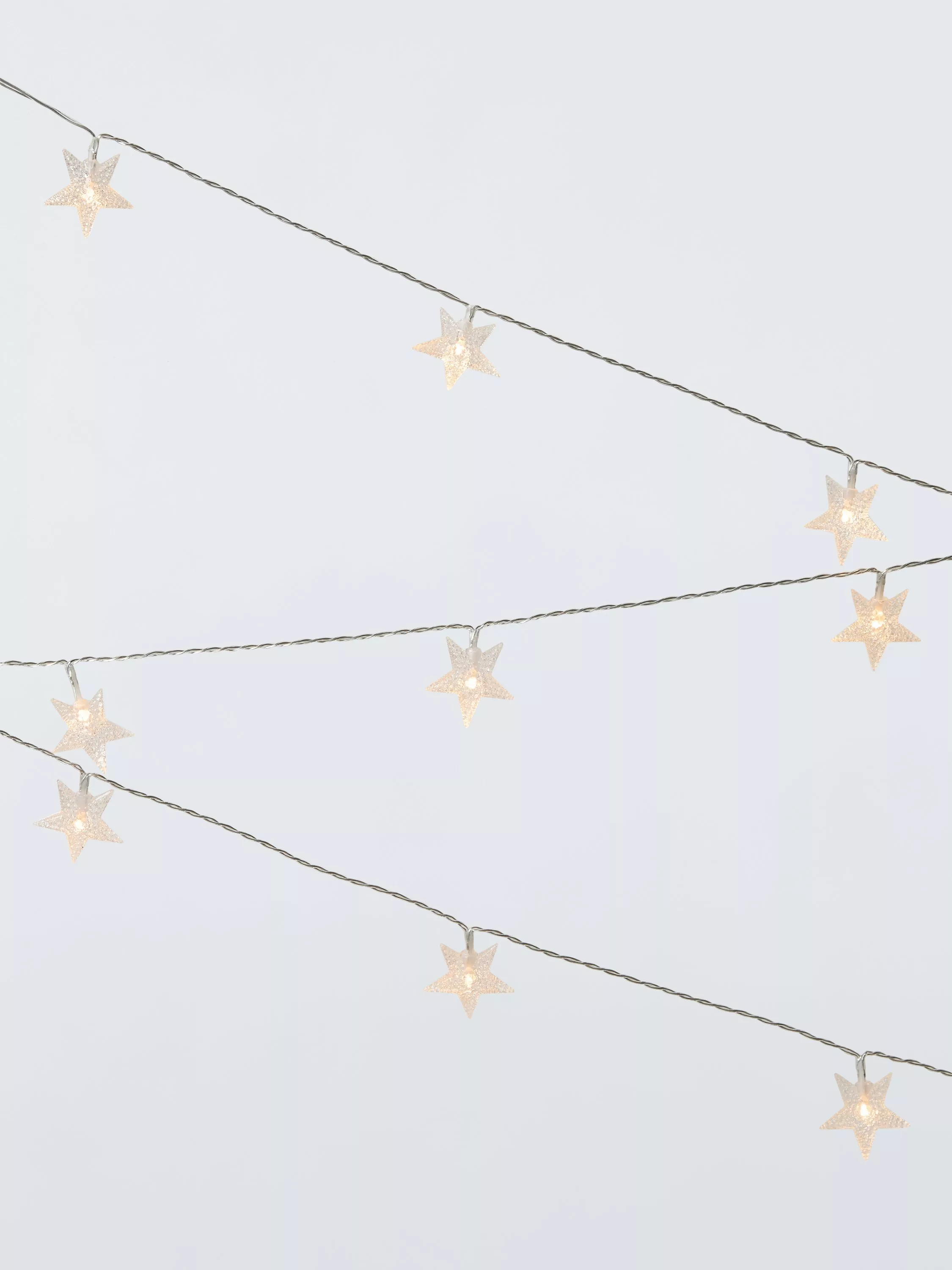 A string of twinkling stars lit with 24 multifunction LEDS. It comes with a timer that automatically switches the lights on at the same time each day and off after 8 hours.