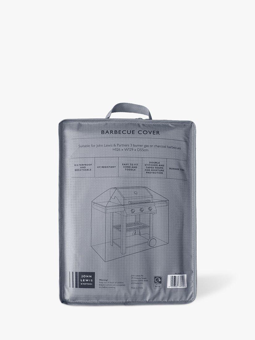 Protective cover for the John Lewis 3-Burner BBQ. Waterproof with taped seams for better protection yet breathable with built-in ventilation to prevent mildew. The cover comes with a cord toggle and bungee ties for an easy, secure fit. Made from strong 420D polyester with UV30+ sun protection for all-year-round use.