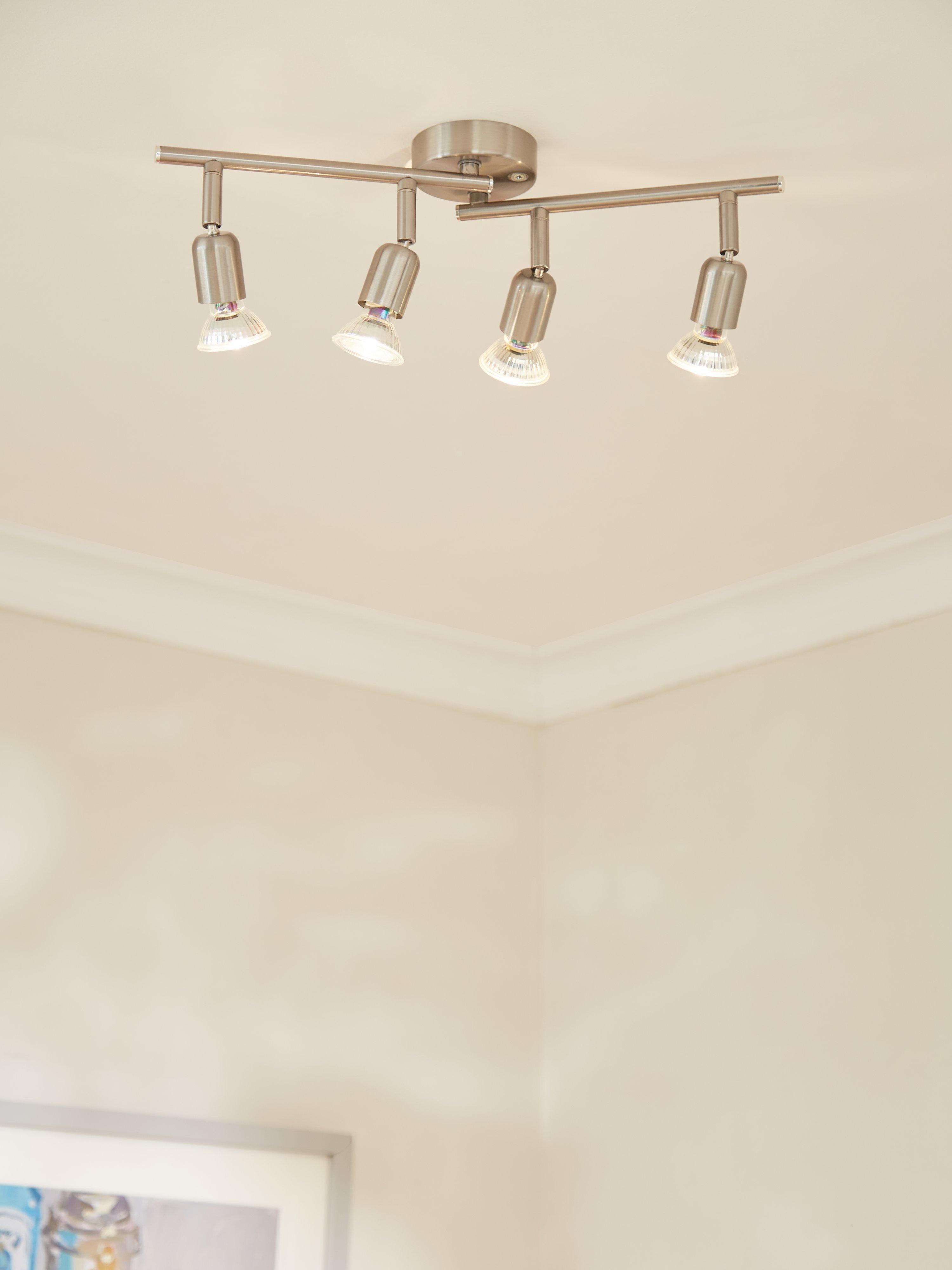 The four spotlights on this ceiling fitting provide a bright and effective illumination. You can adjust the angle and direction of the two arms to best suit your space and styling preference. Ideal for a quick refresh at home, for a surprisingly low price.