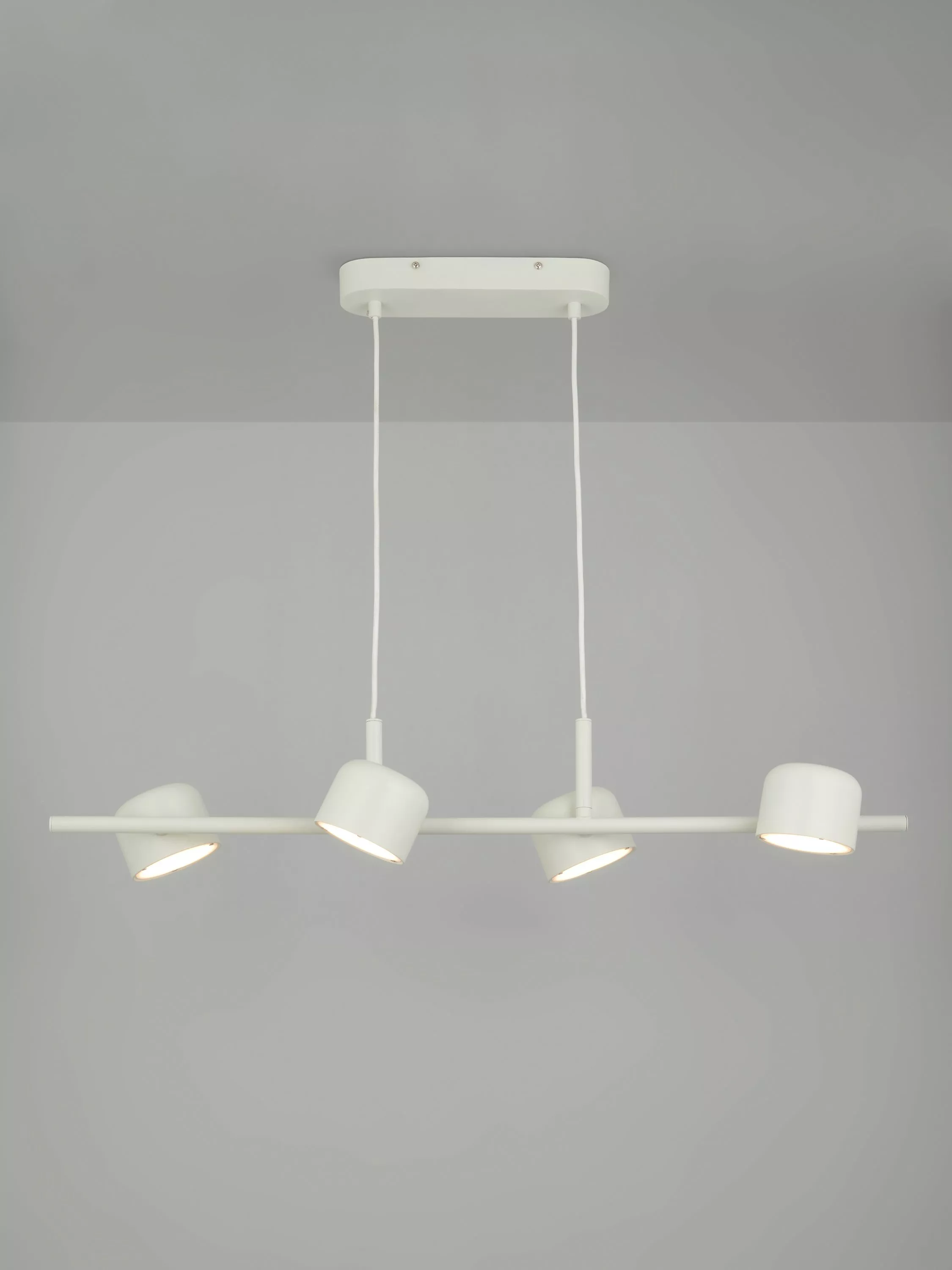 The Pivot LED bar pendant sits elegantly over a modern breakfast bar or kitchen island. The chunky, linear form creates a modern, stylish statement. Each of the four spotlight heads can be positioned to direct light as required.
