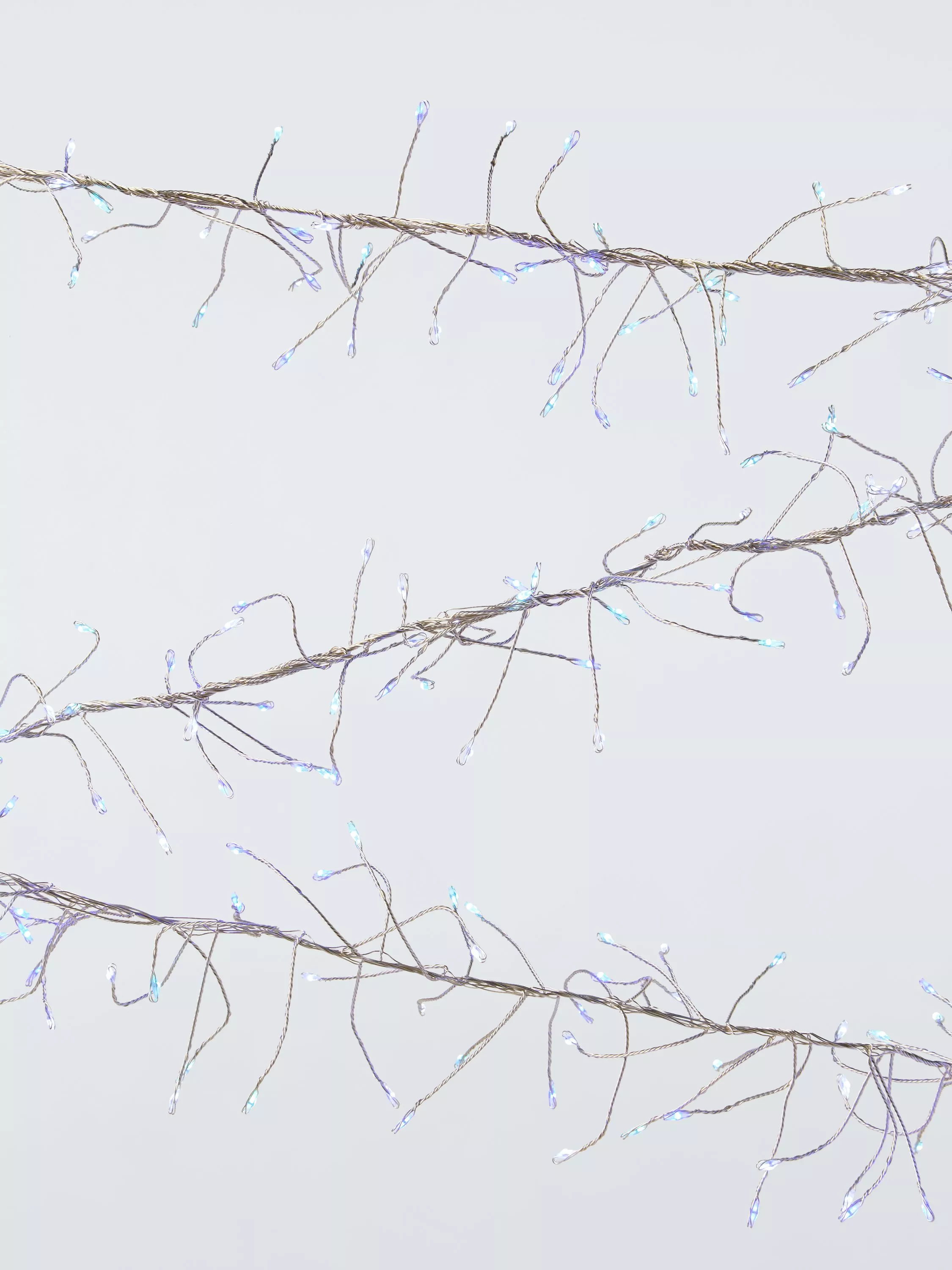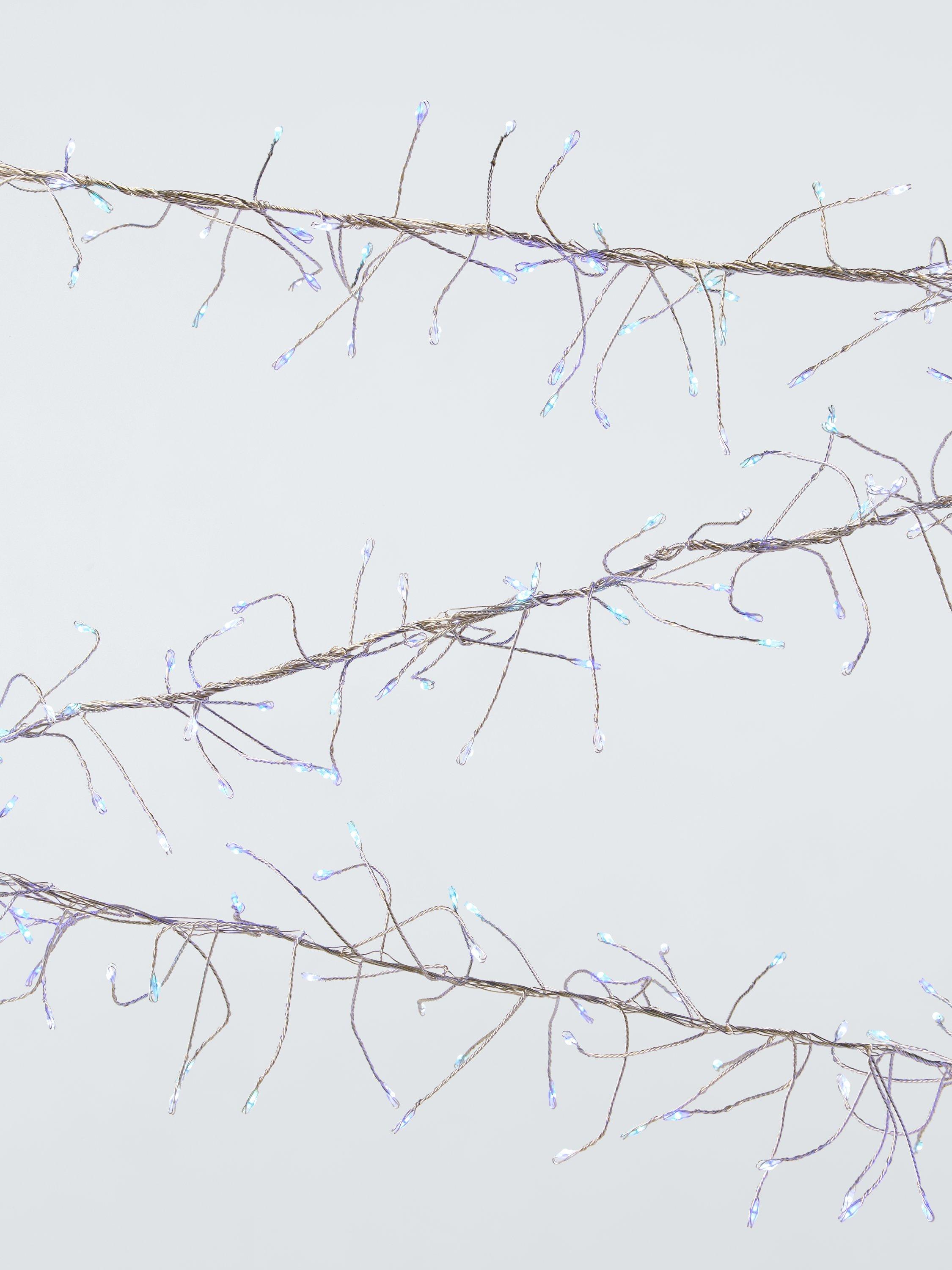 A string of 480 micro LED multifunction cluster vine lights on a flexible wire, with a timer that automatically switches the lights on at the same time each day and off after 8 hours. Available in a range of light and wire colour combinations for a choice of different looks.