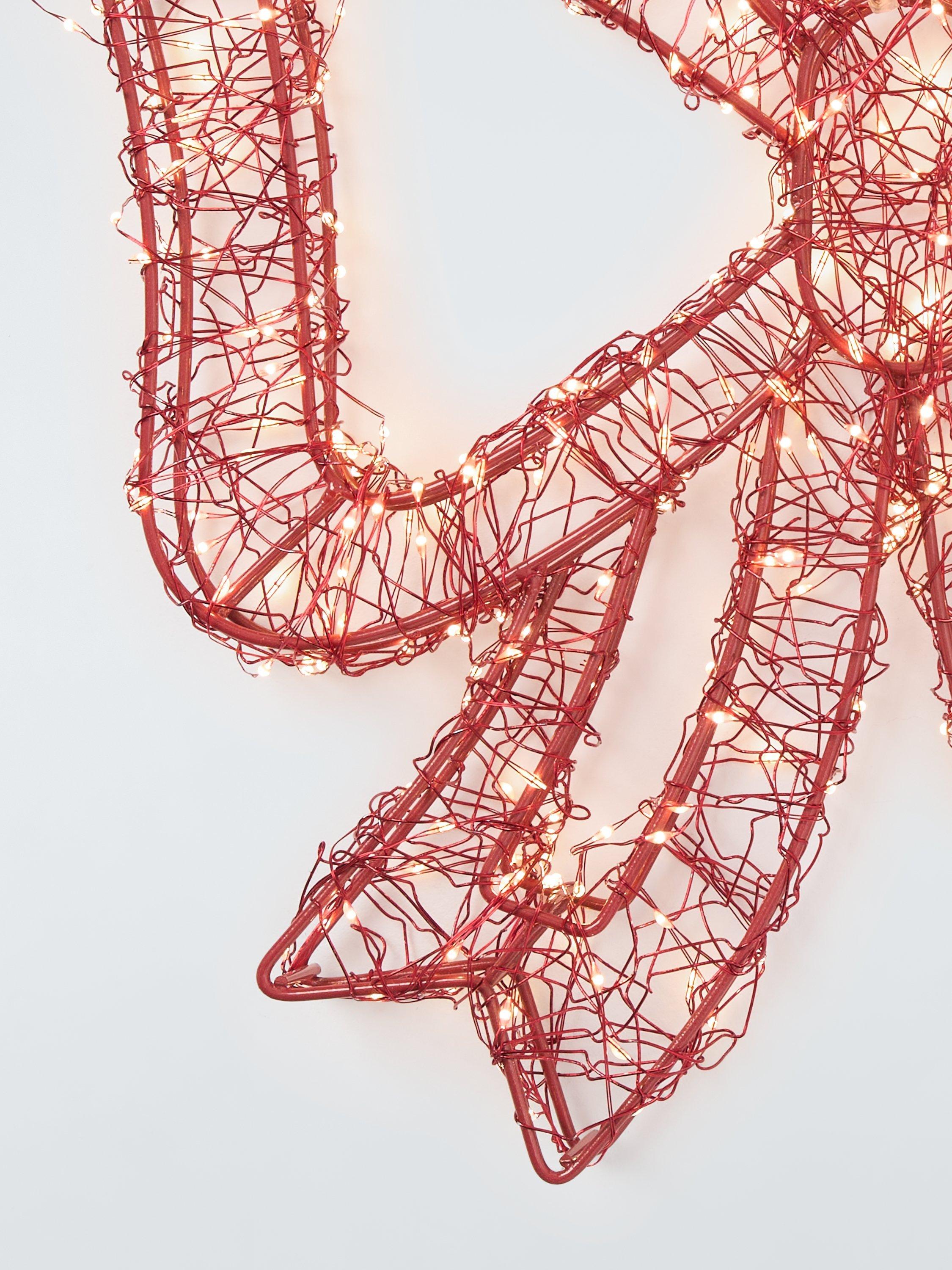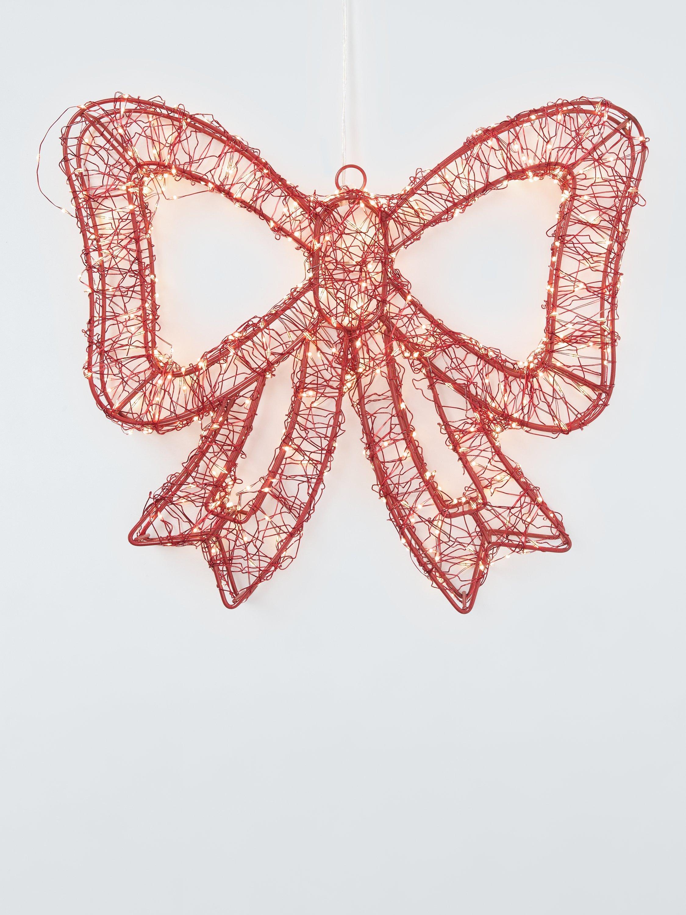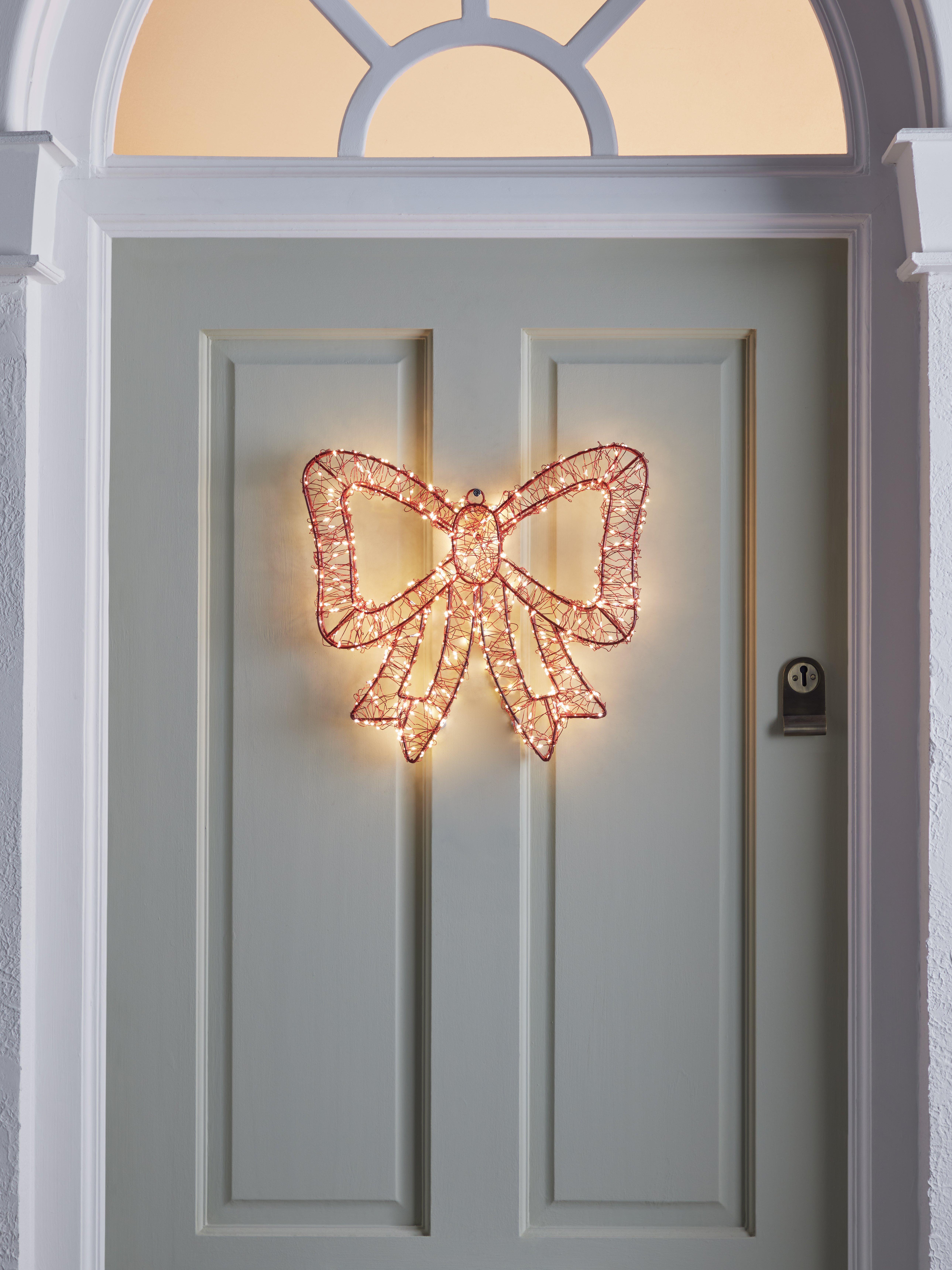 Fitted with 500 static micro LEDs in classic warm white, this wire framed bow can be used freestanding or hung on your door as a great alternative to a Christmas wreath.