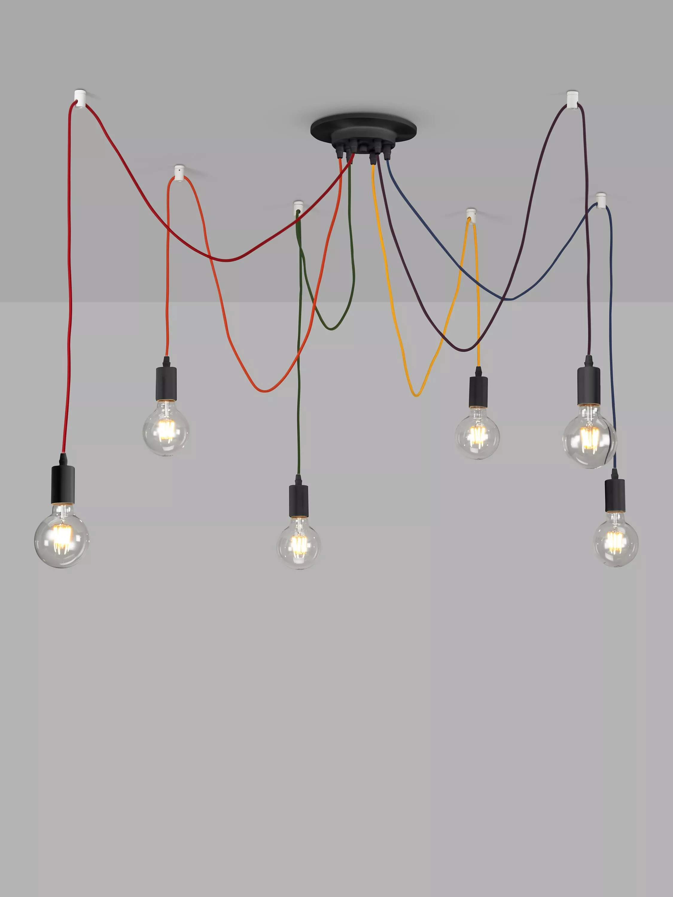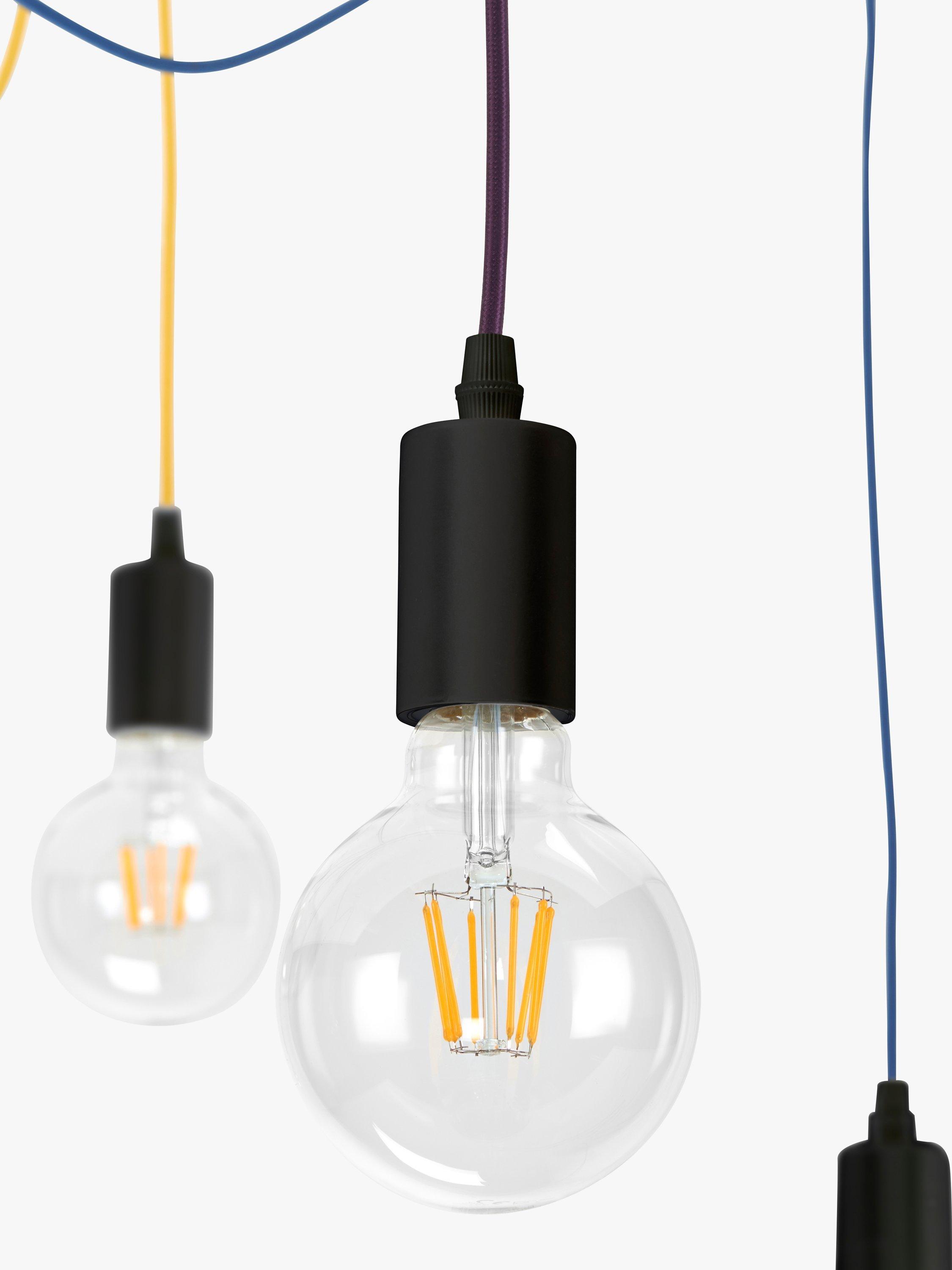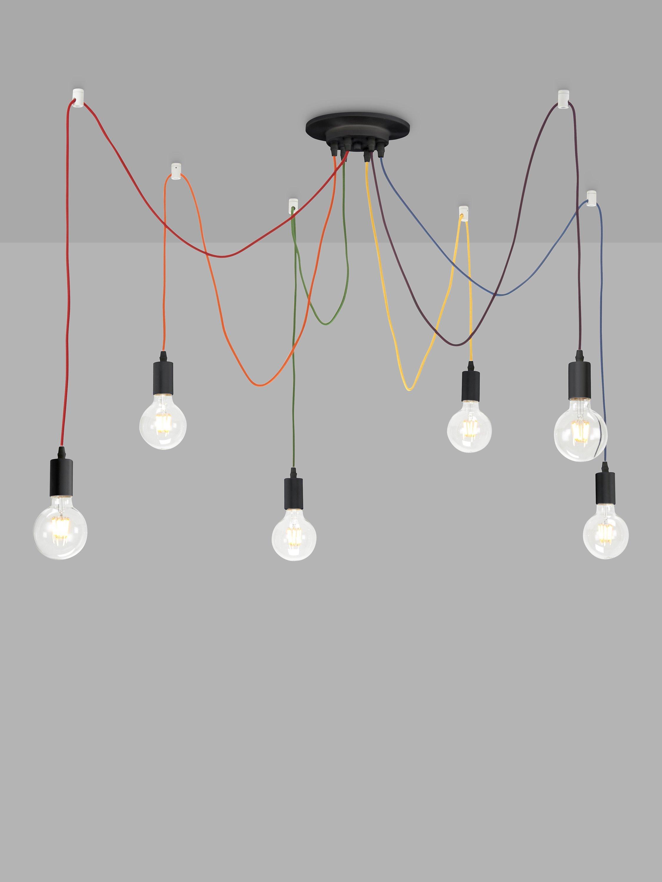 Elevate their bedroom swagger with this 6 pendant swag light from our little home collection. With pops of colours thanks to the braided cables that add a playful touch, this light can be used to distribute the light around your child's room whilst creating a fun and interesting light feature you'll both love. Complement with large decorative E27 bulbs to complete the stylish look.
