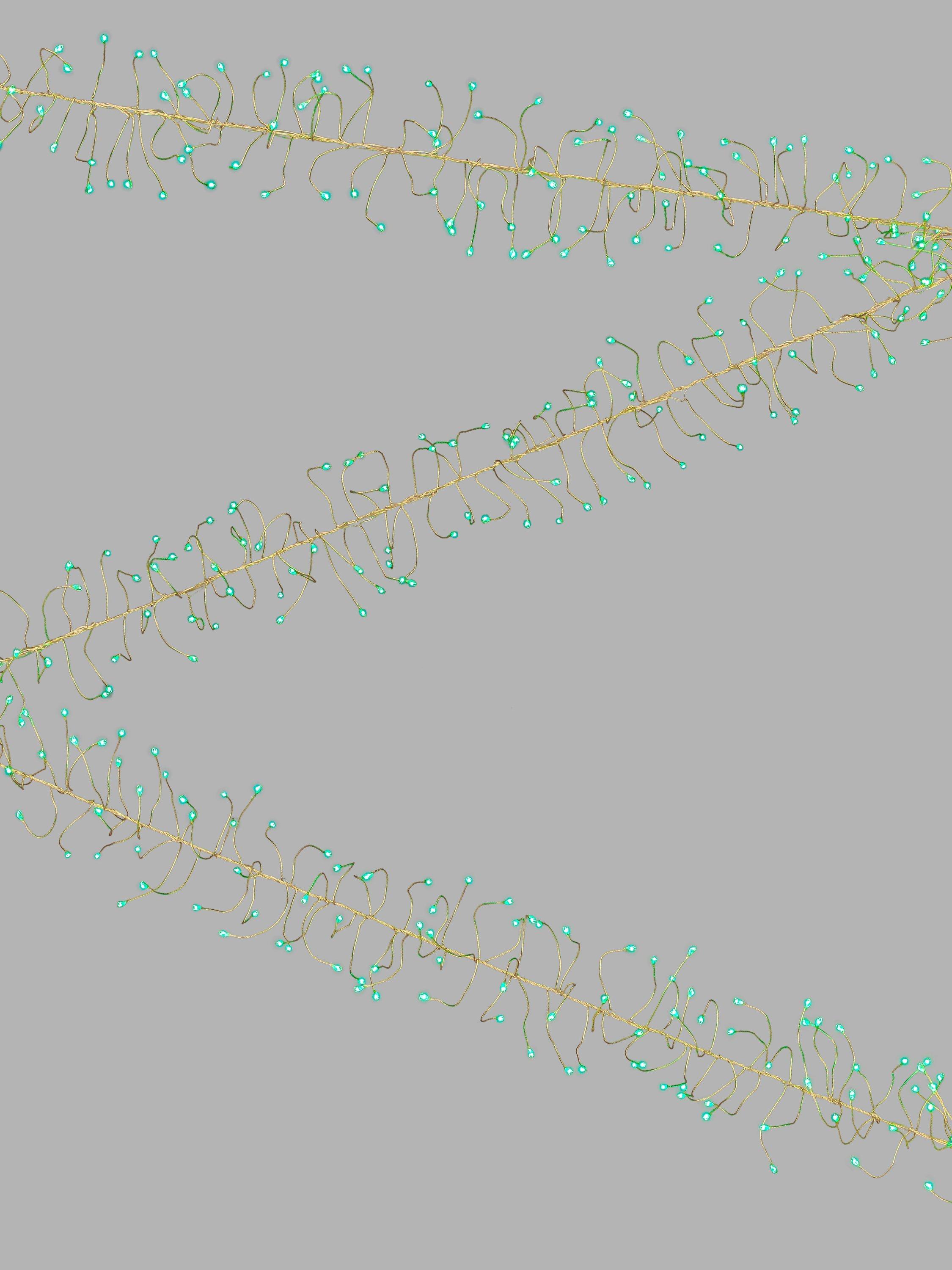 Each of the LEDs is set at the end of a twisting strand of wire, giving the appearance of a natural vine.