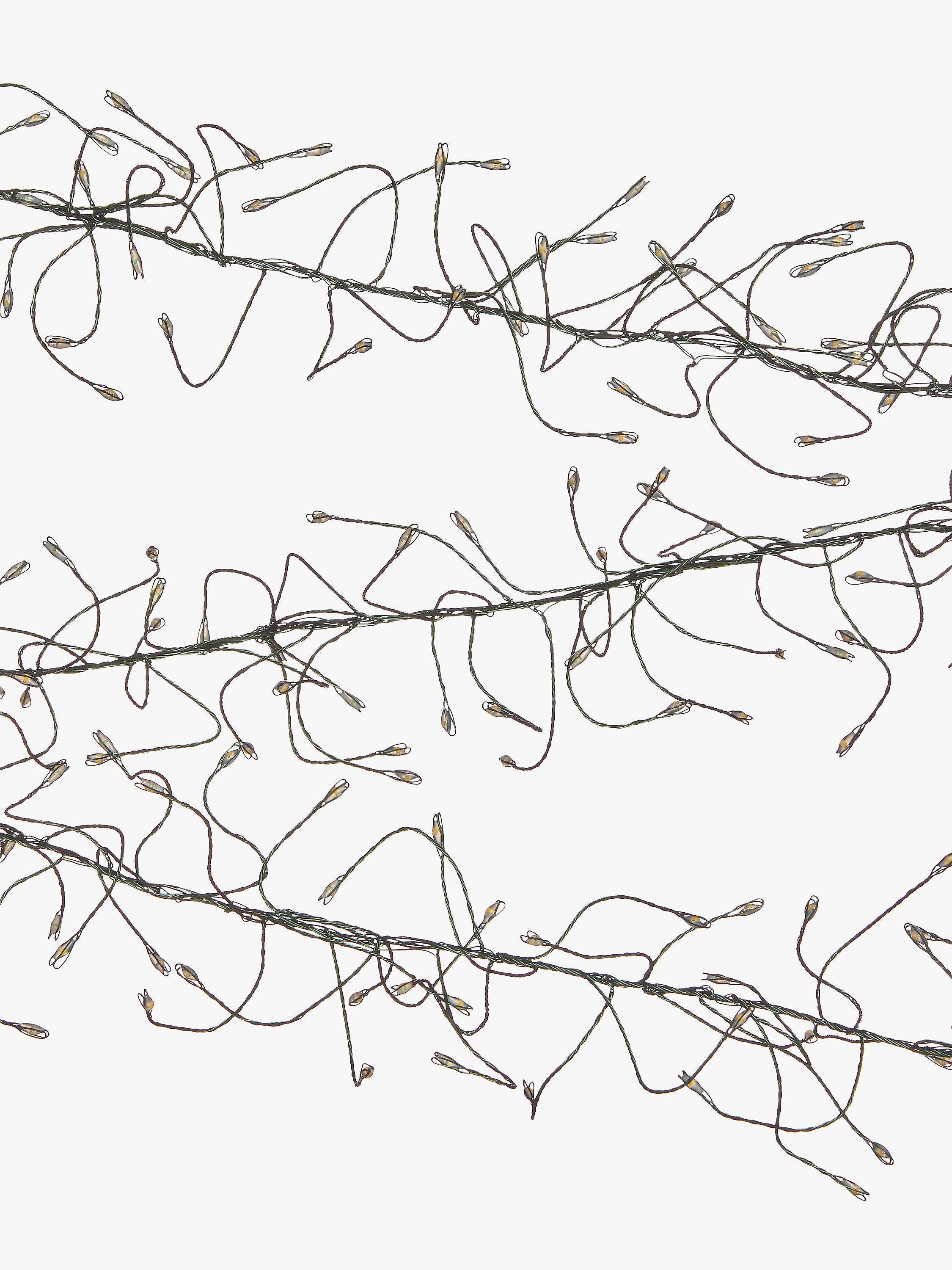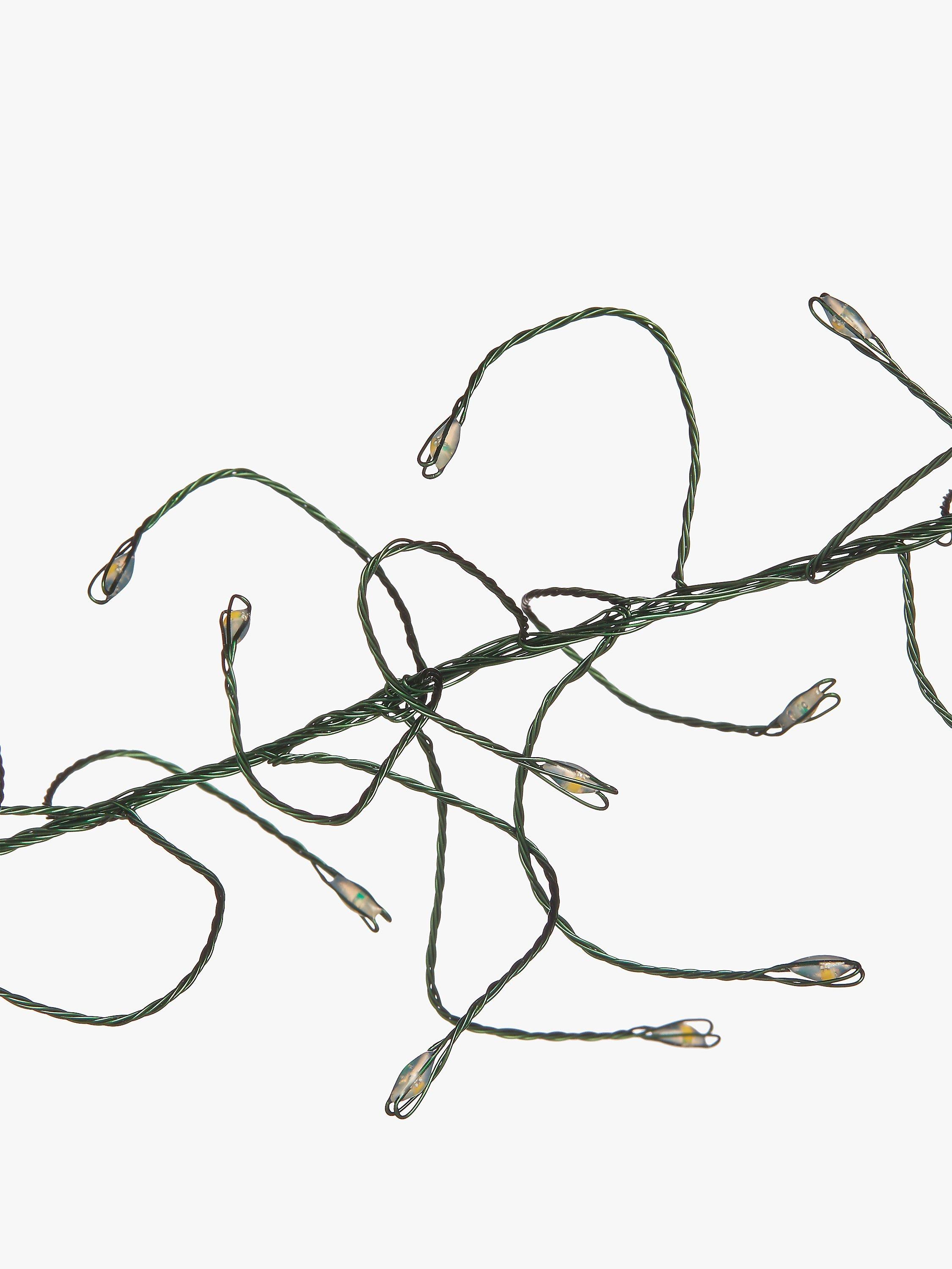 A string of energy-efficient LED bulbs on a flexible wire. Available in a range of light and wire colour combinations for a choice of different looks.
