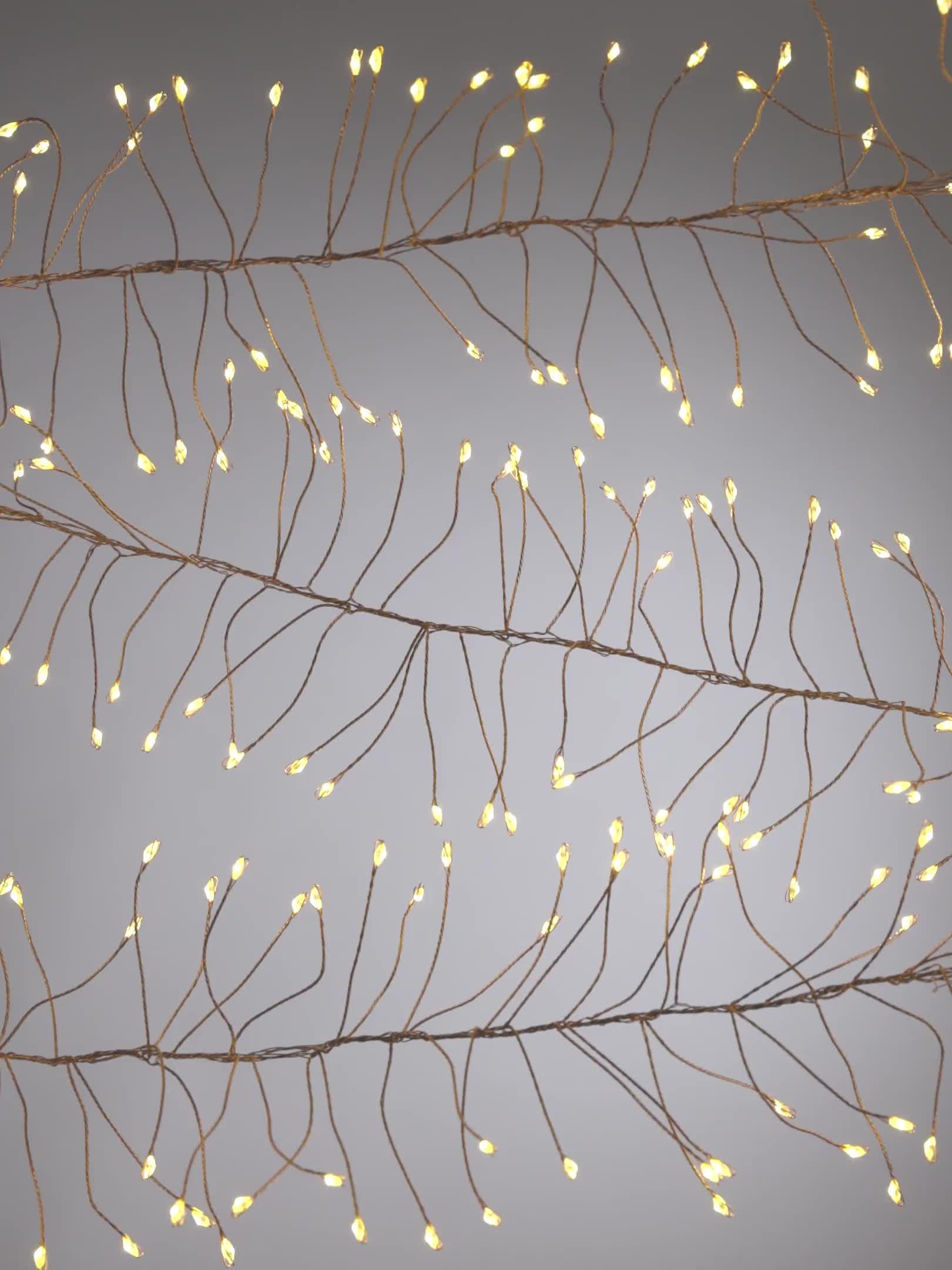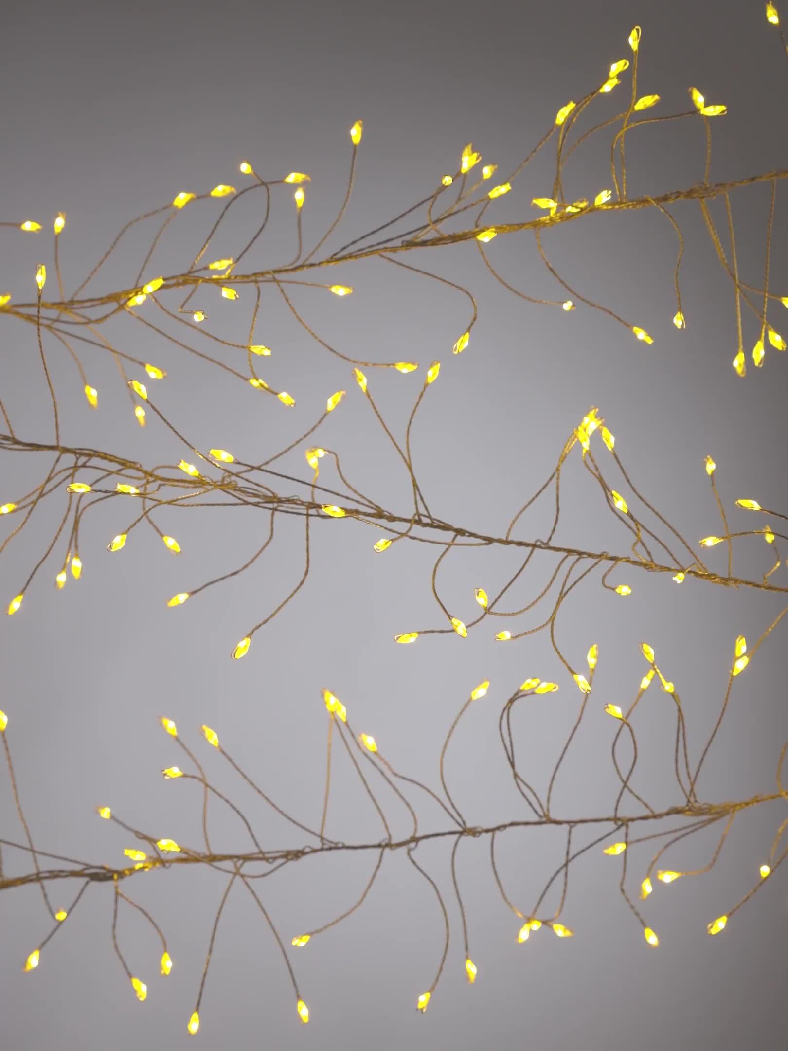 Each of the LEDs is set at the end of a twisting strand of wire, giving the appearance of a natural vine.