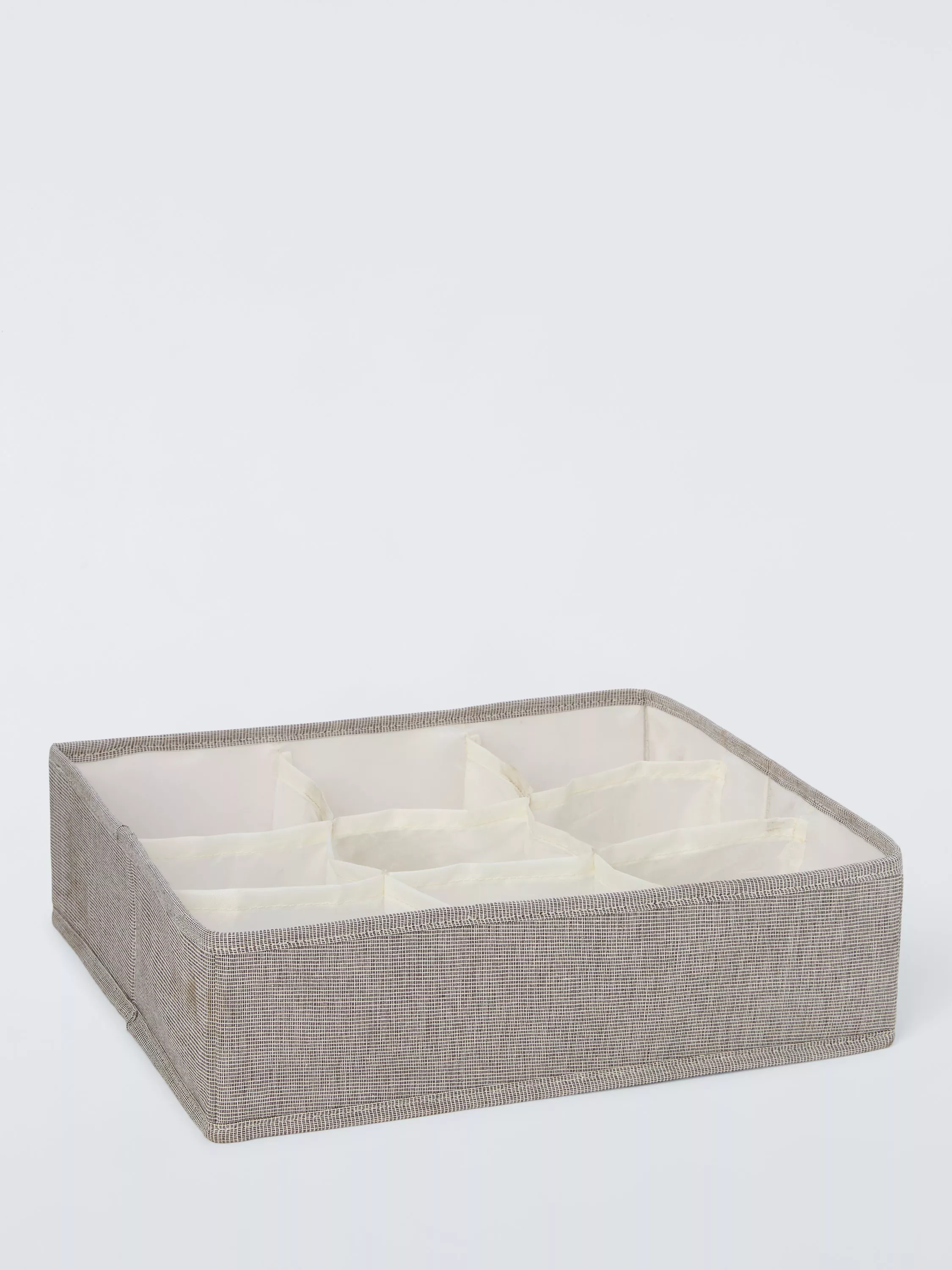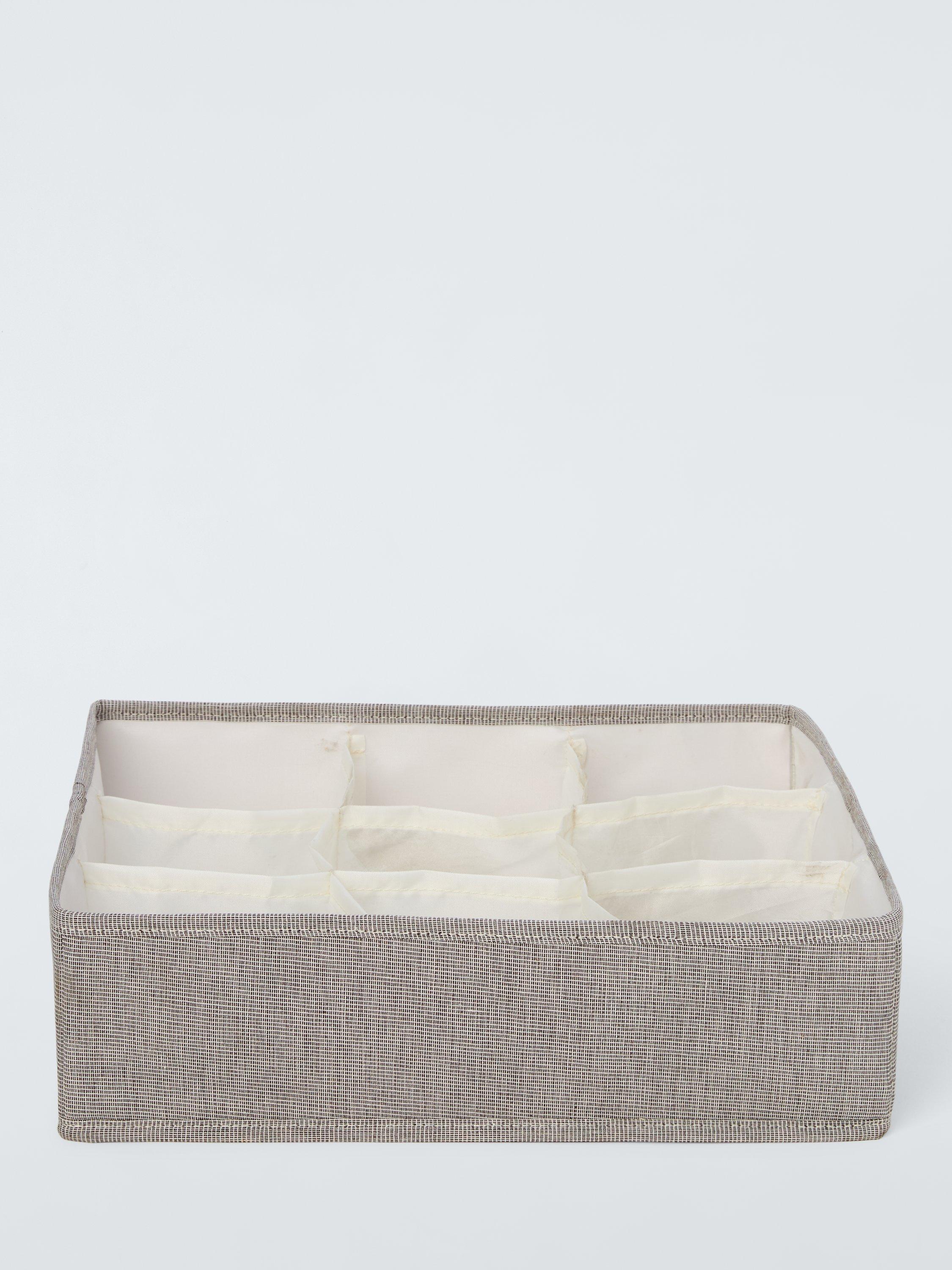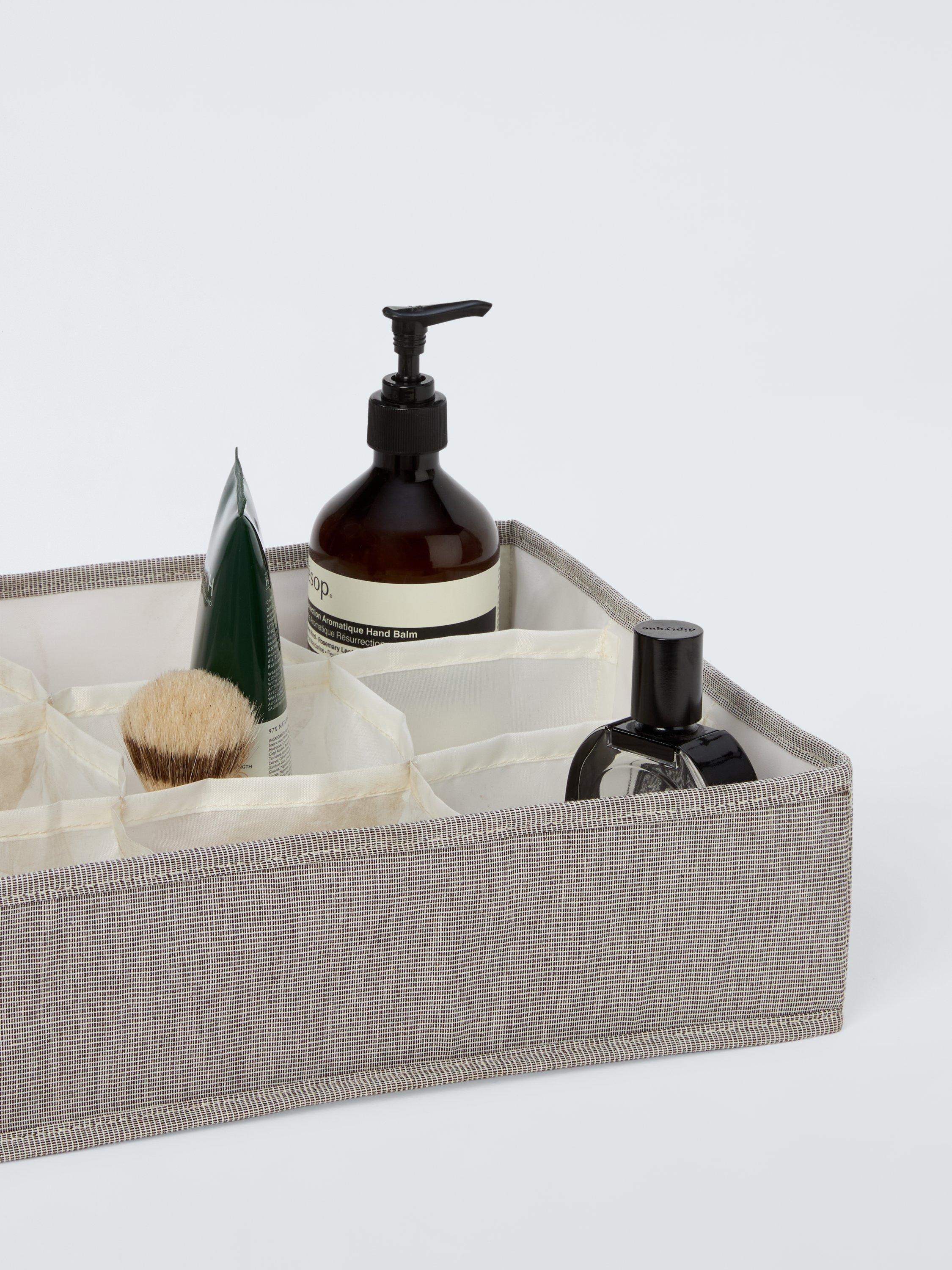 Made from polyester and recycled polyester in a versatile grey shade, this organiser simply folds out for use in drawers, wardrobes or cupboards, or keep on display in bathrooms or bedrooms.