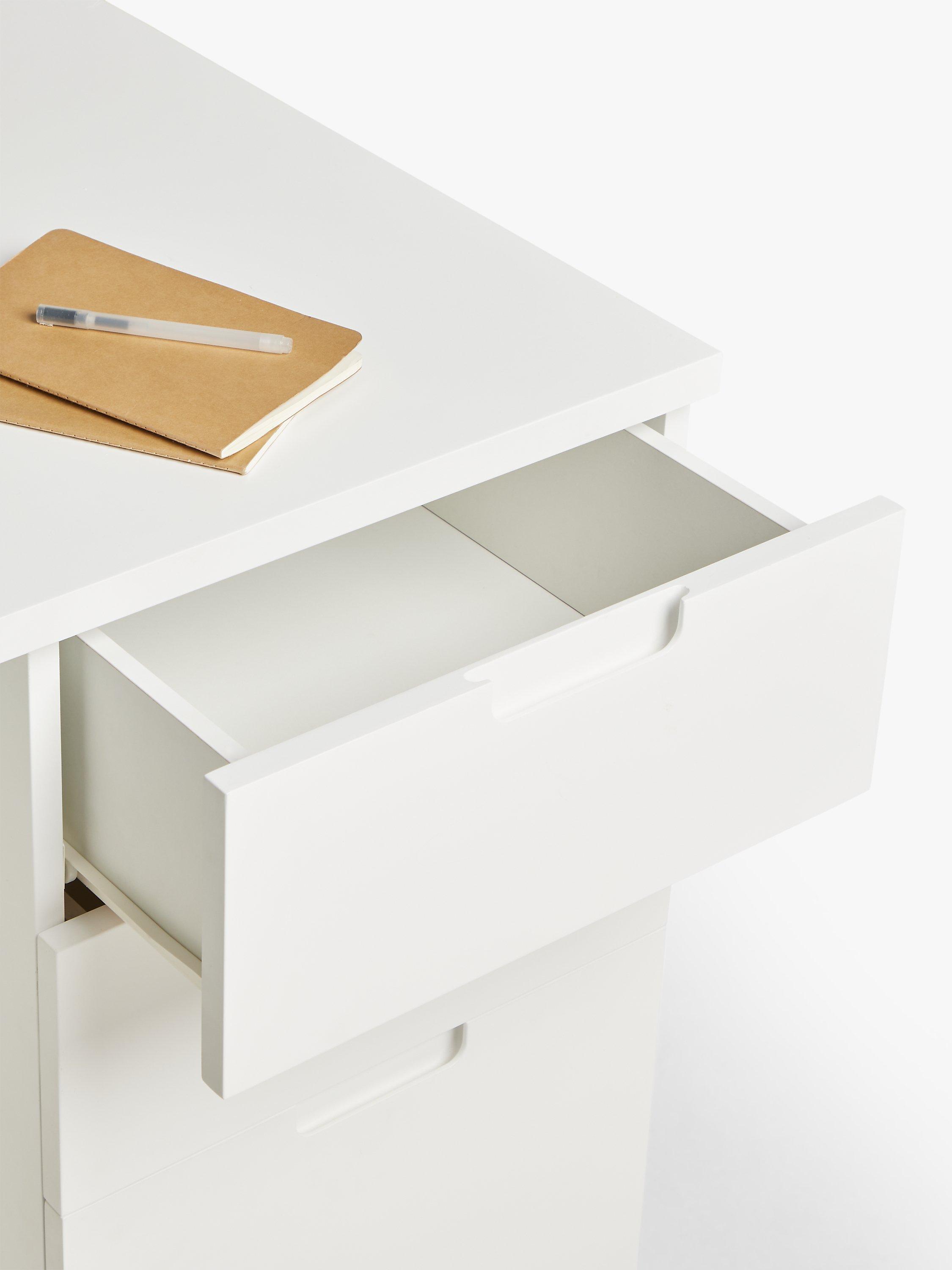A practical and roomy desk, designed with a built-in set of drawers to keep your work surface clean and clutter free. You can position the drawers on the left or right hand side of the frame, whatever suits you best.