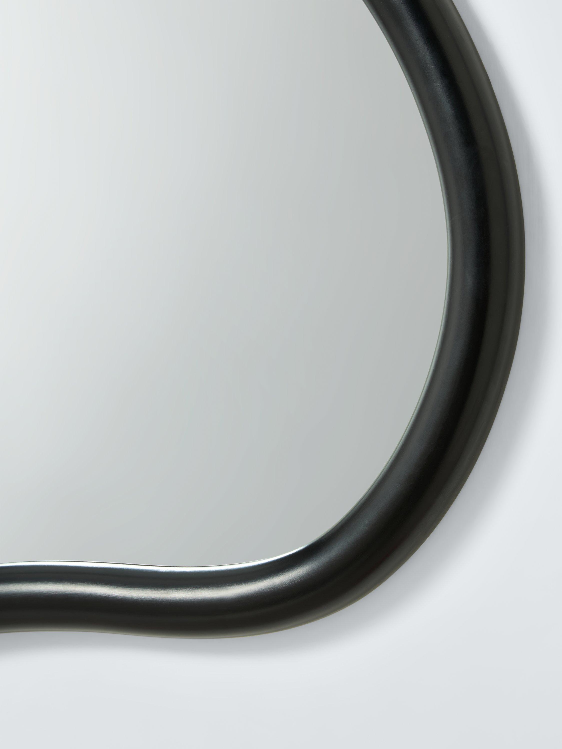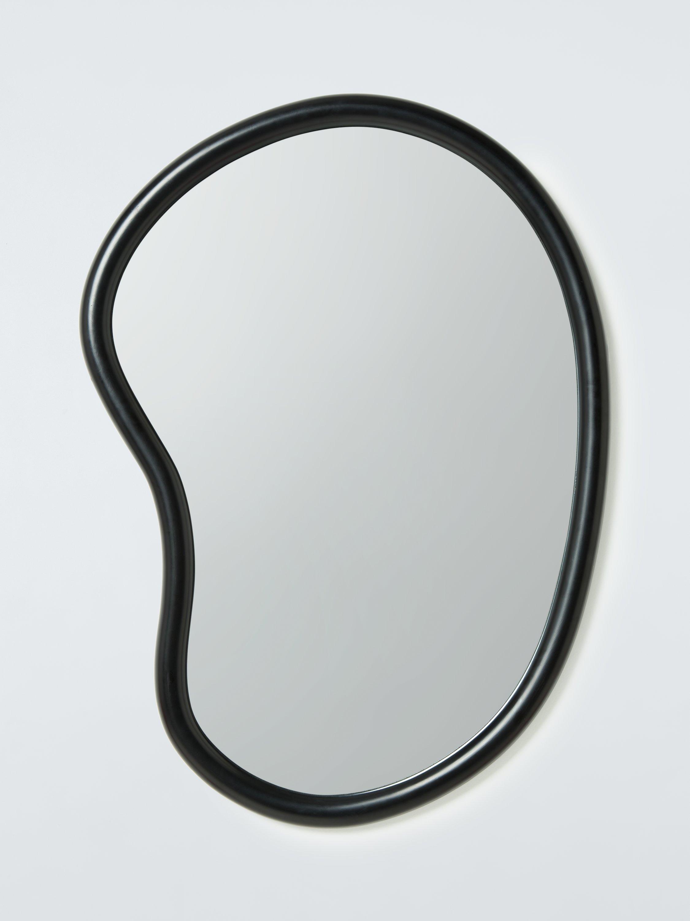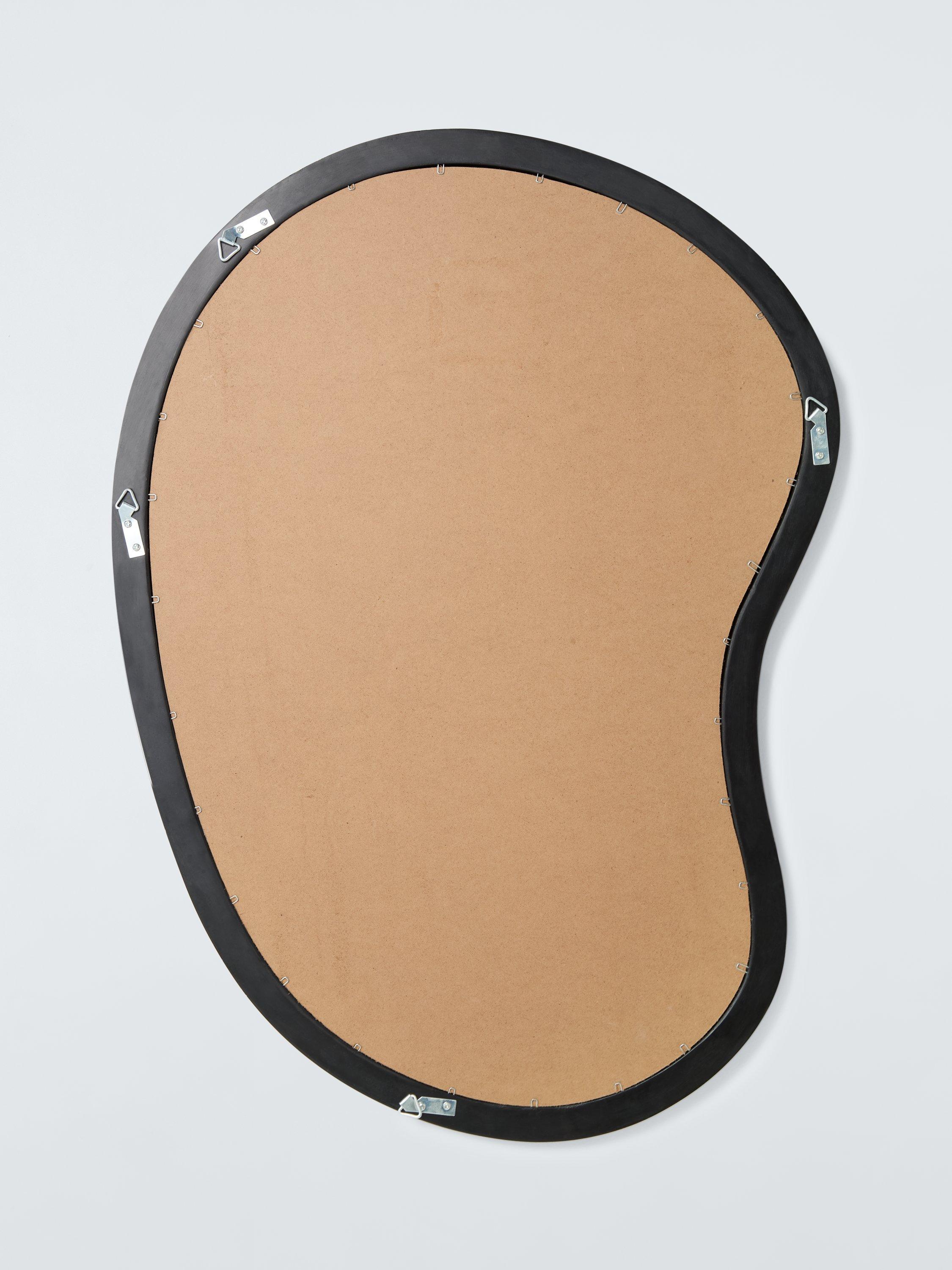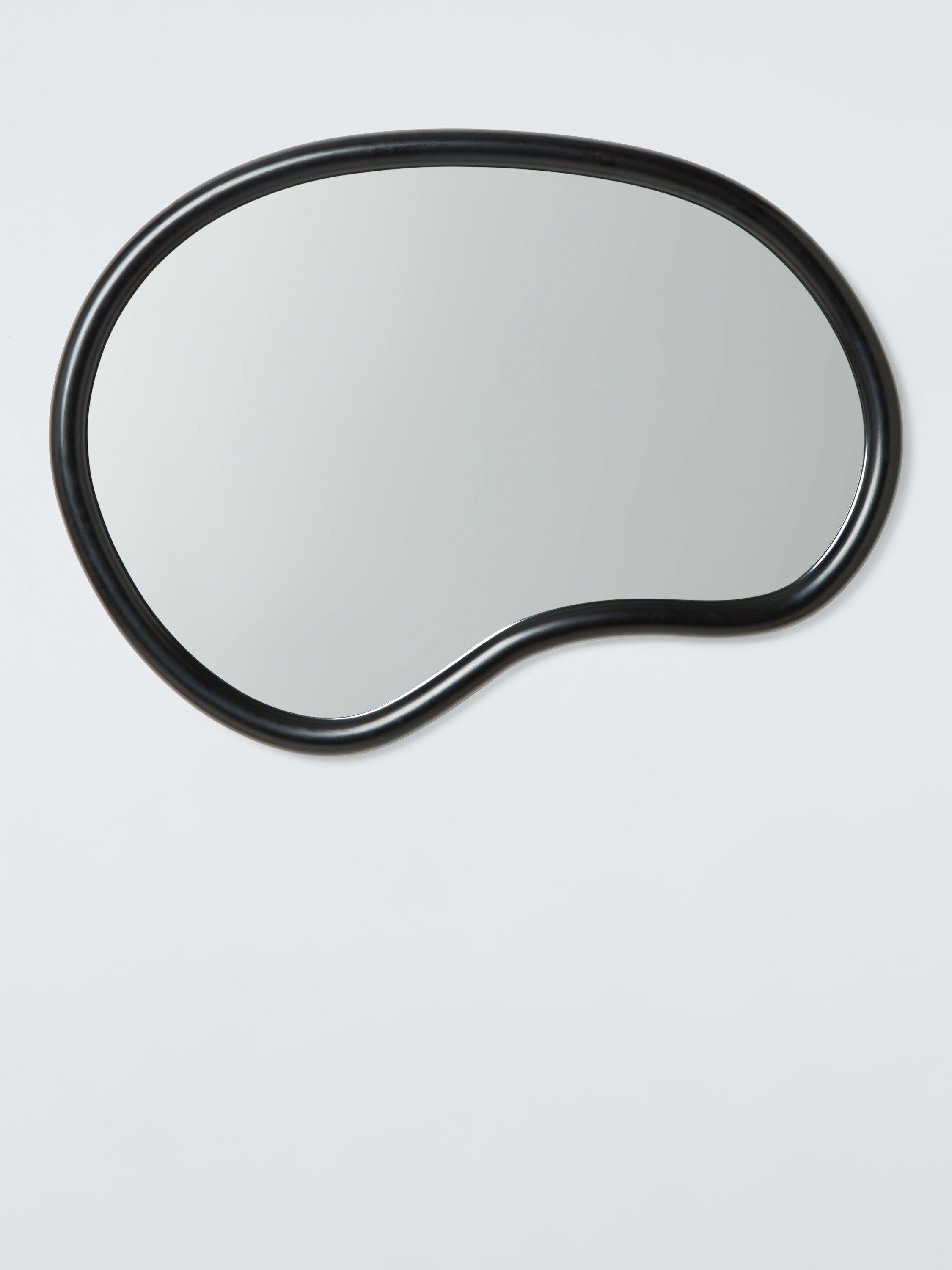 Abstract shape wall mirror, made with a smooth finish. Easy to wall-mount, vertically or horizontally, using the D-ring fittings on the reverse side.