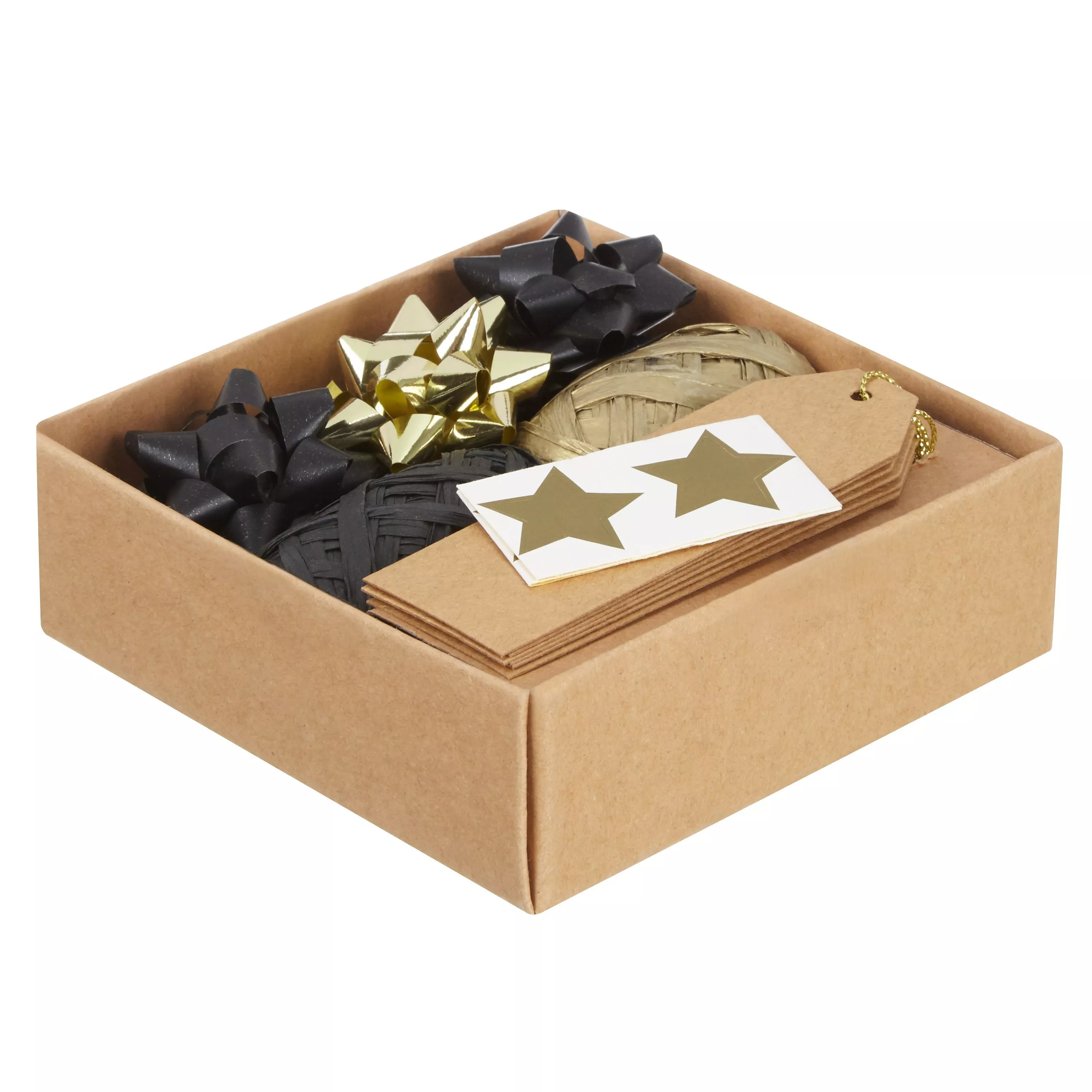 Everything you need to decorate your gifts inside this crafty little box of gems. This Metallic Accessory Pack includes Brown kraft tags, cream/gold metallic twine, gold & black raffia, mini confetti bows 2 x gold flitter, 2 x shiny pale gold, 2 x champagne gold satin, 2 x mid gold satin and metallic gold stickers.