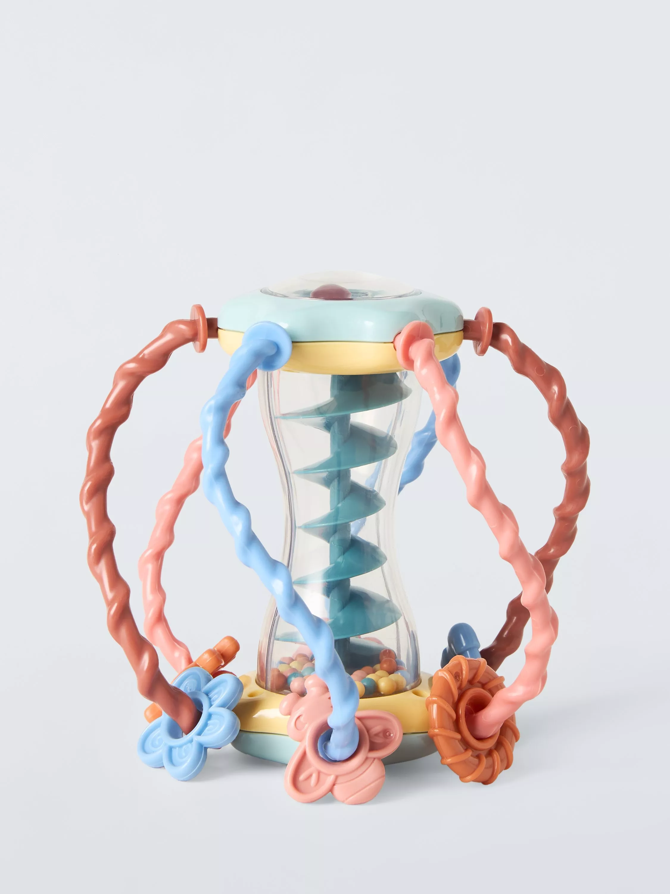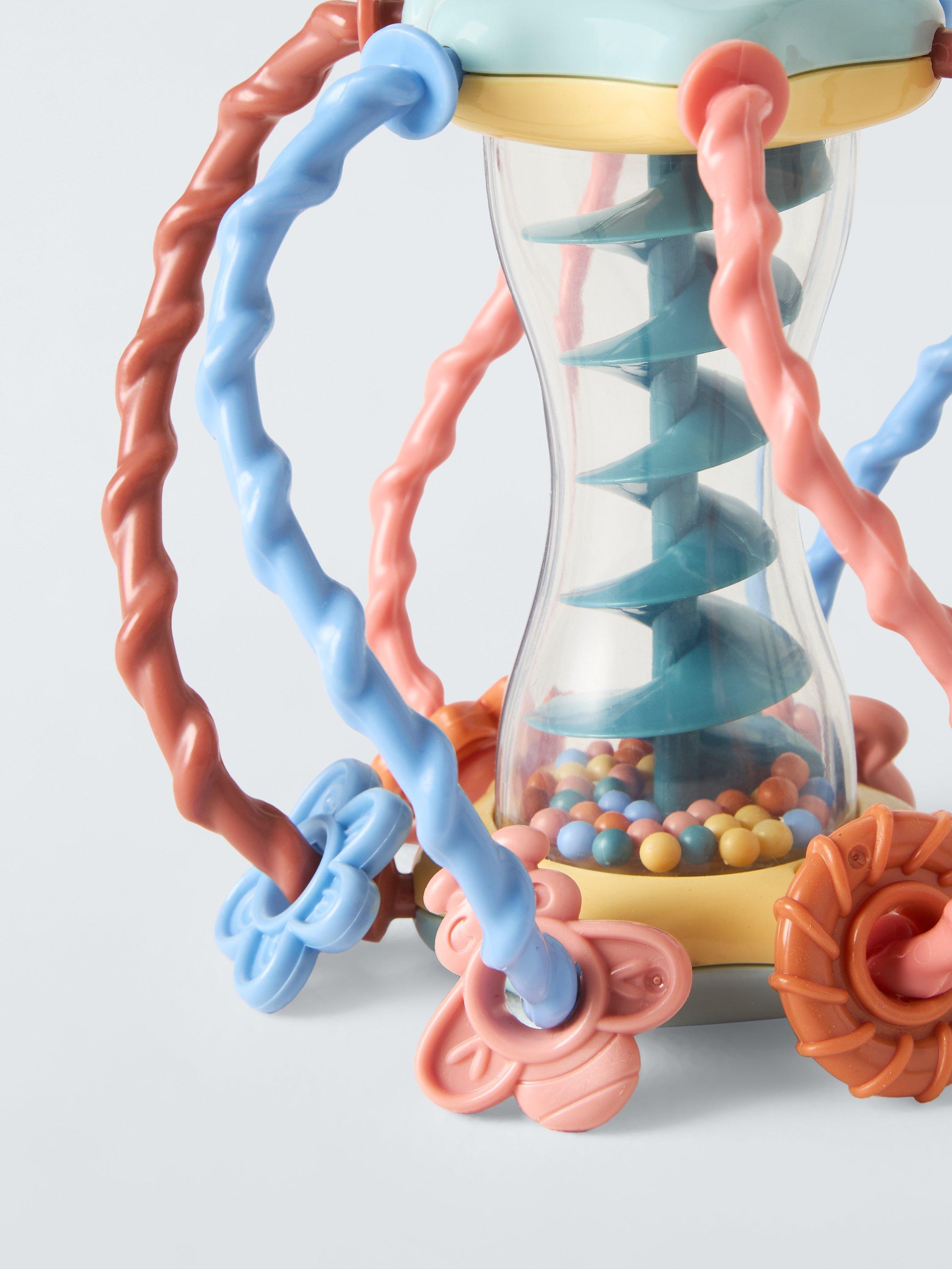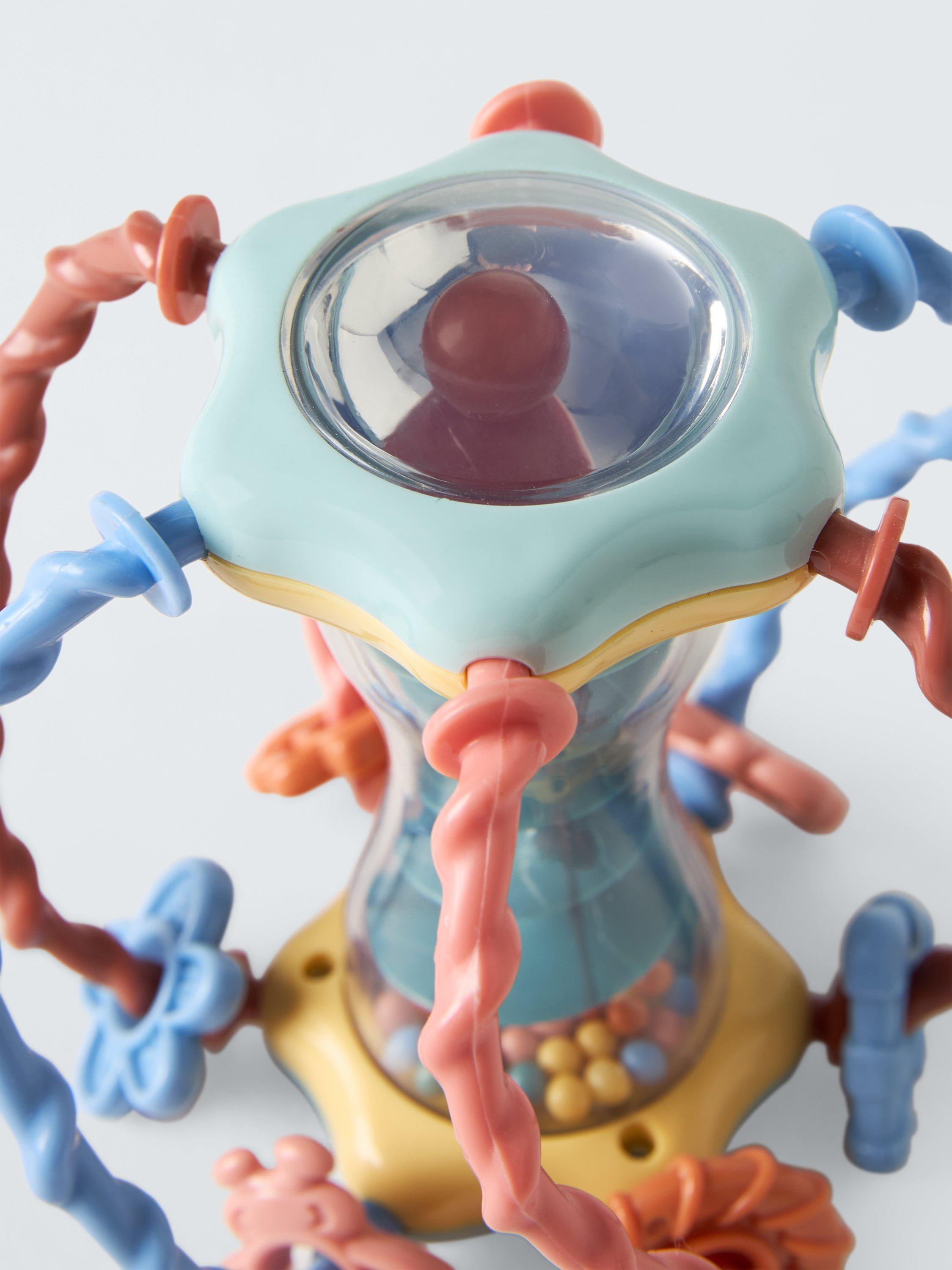 This brightly-coloured ball is easy for your baby to grip. They can also turn the ball upside down and hear the balls flying down the maze. Six twisted poles can have fun coloured shapes that can take a walk up and down on them - there's so much to discover!
