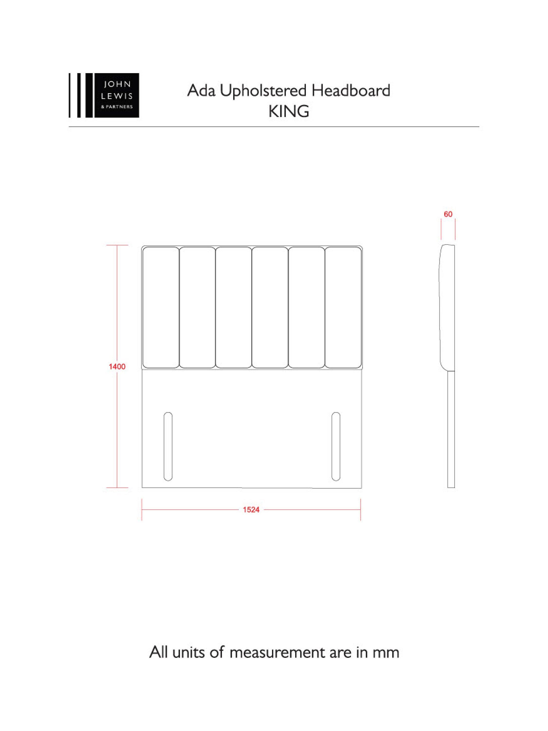John LewisAda Full Depth Upholstered Headboard, King Size, Brushedweave Silver