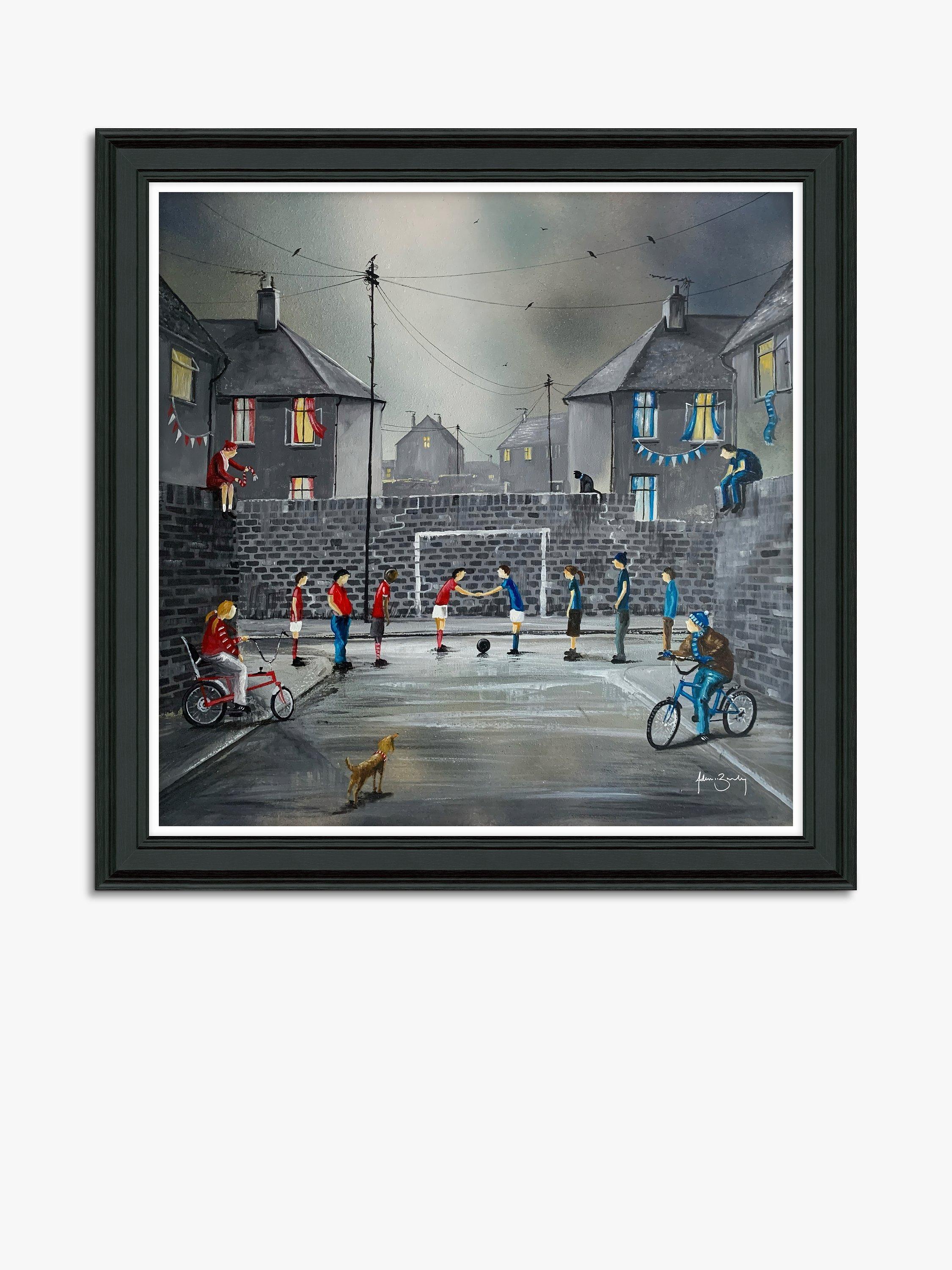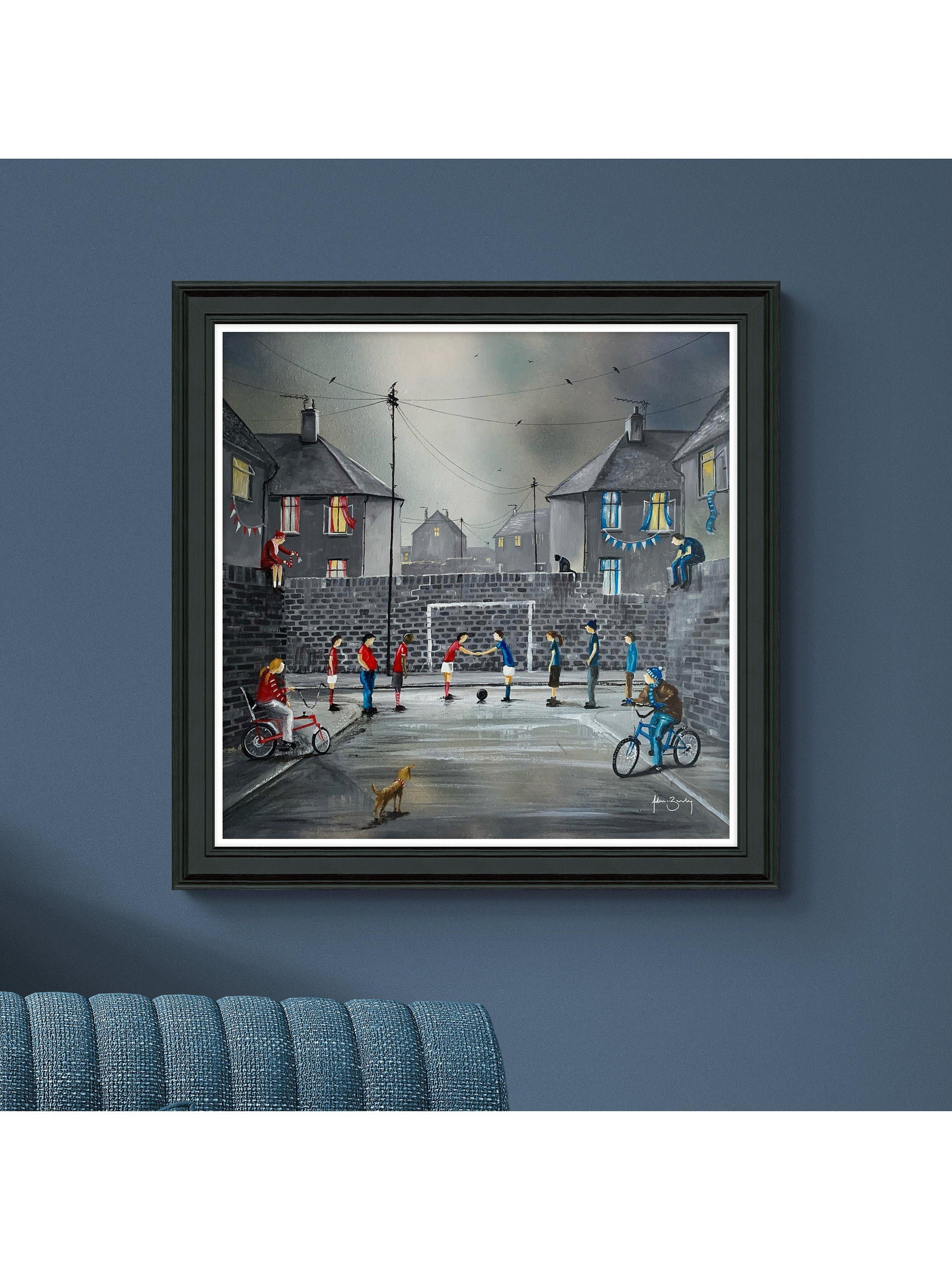 'Derby Day' football match by artist Adam Barsby. Made in the UK, this unglazed print has a black frame and is finished with a hand-applied artist's texturing gel.