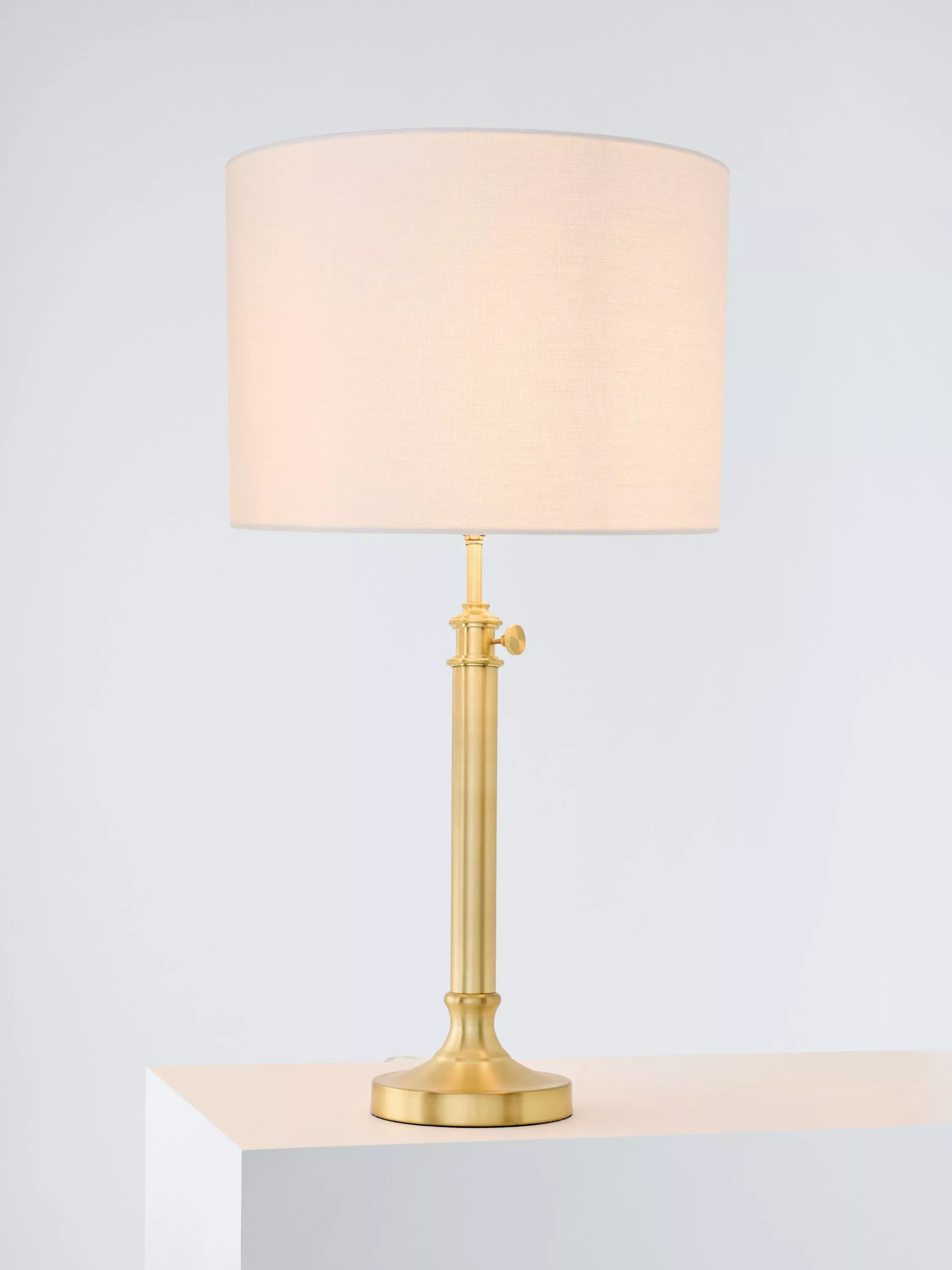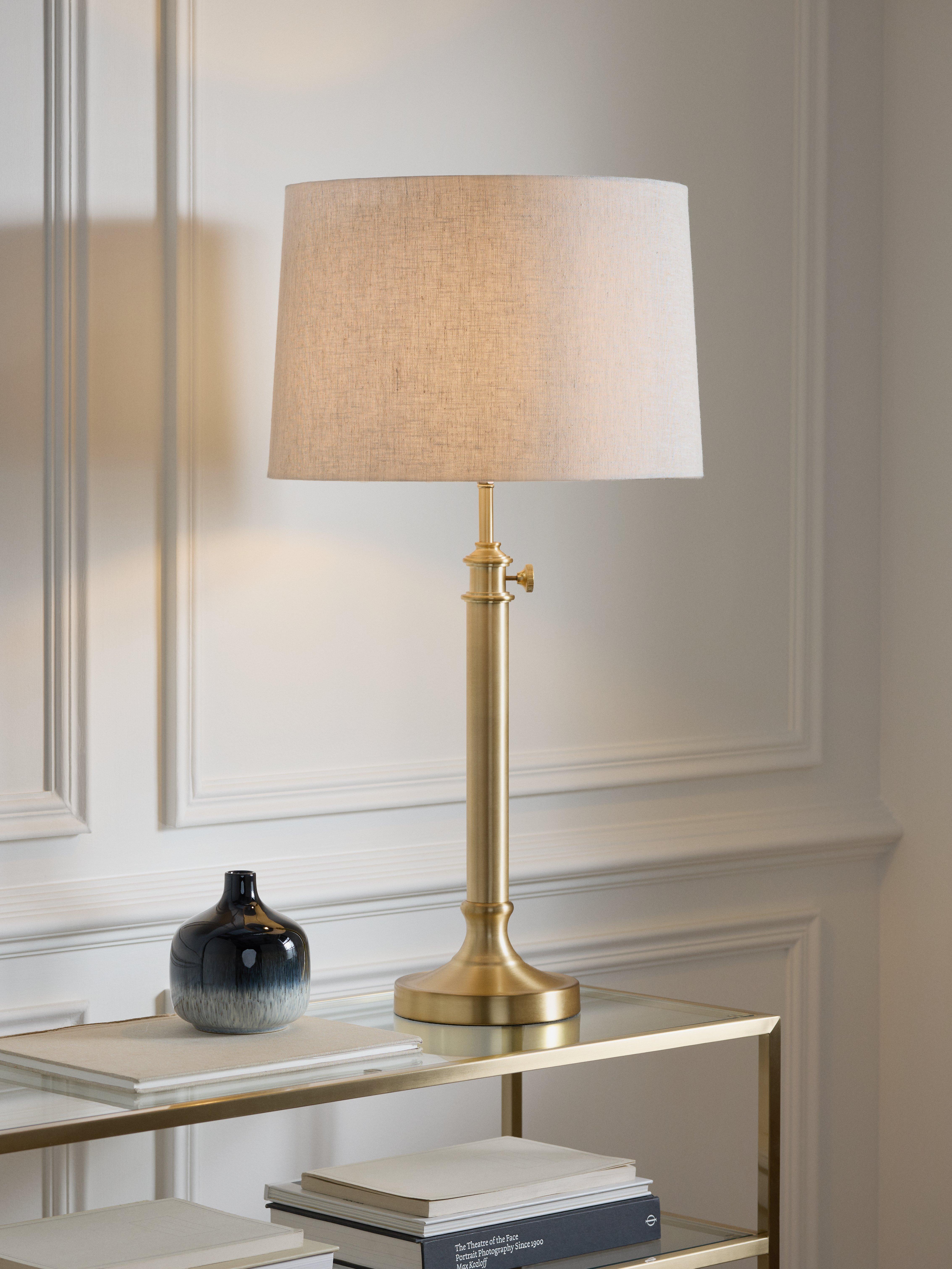 Pair this lamp base with any fabric shade to bring warmth to any space. Choose a finish to suit your living room console or nightstand and modify the lamp to fit your space using the decorative joint on the pole. Adjusts the height from 26cm to 34.5cm . Turn the lamp on and off with the rotary switch on the socket.