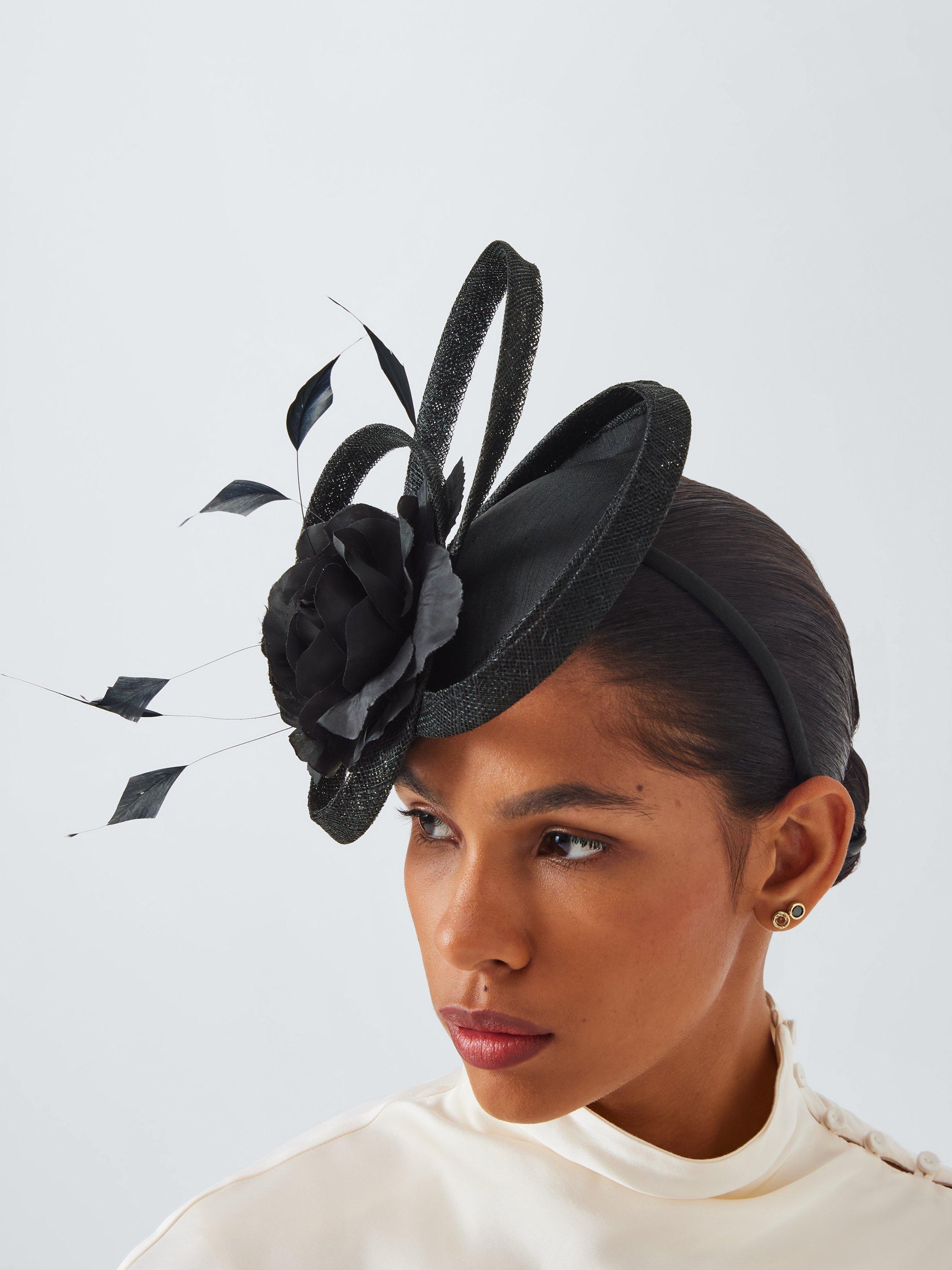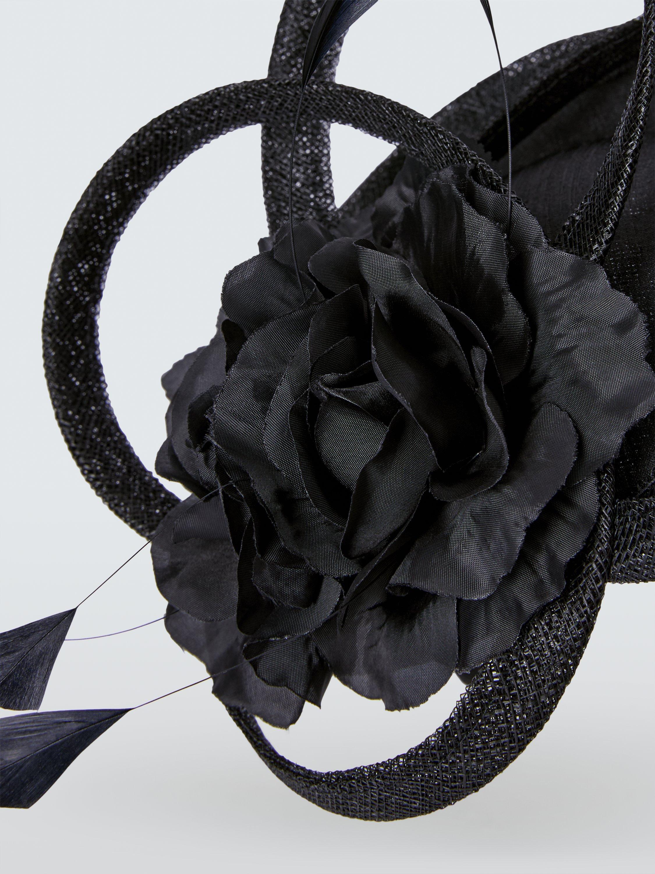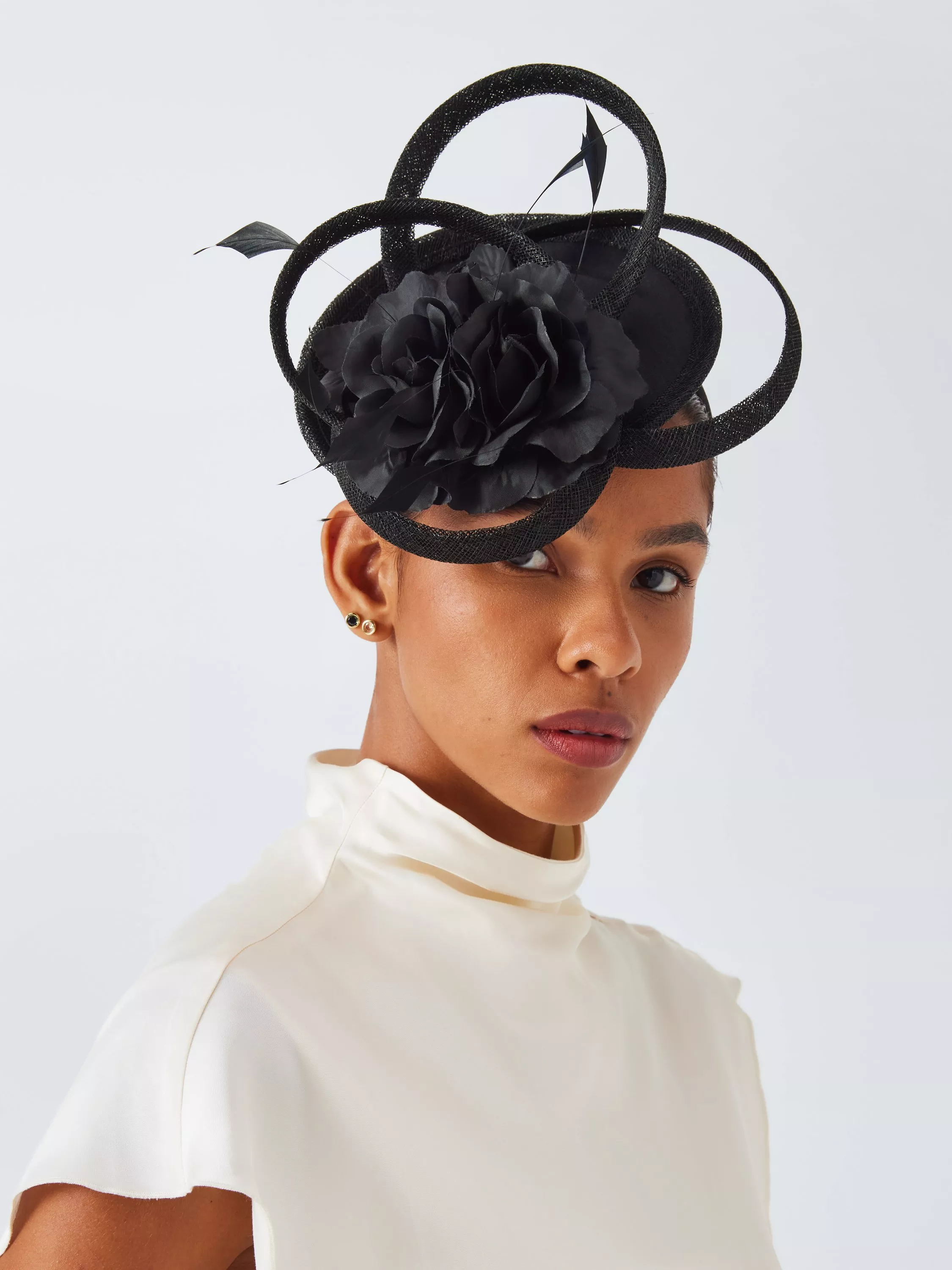 A stylish fascinator with flower trim and loop detailing for that perfect day.