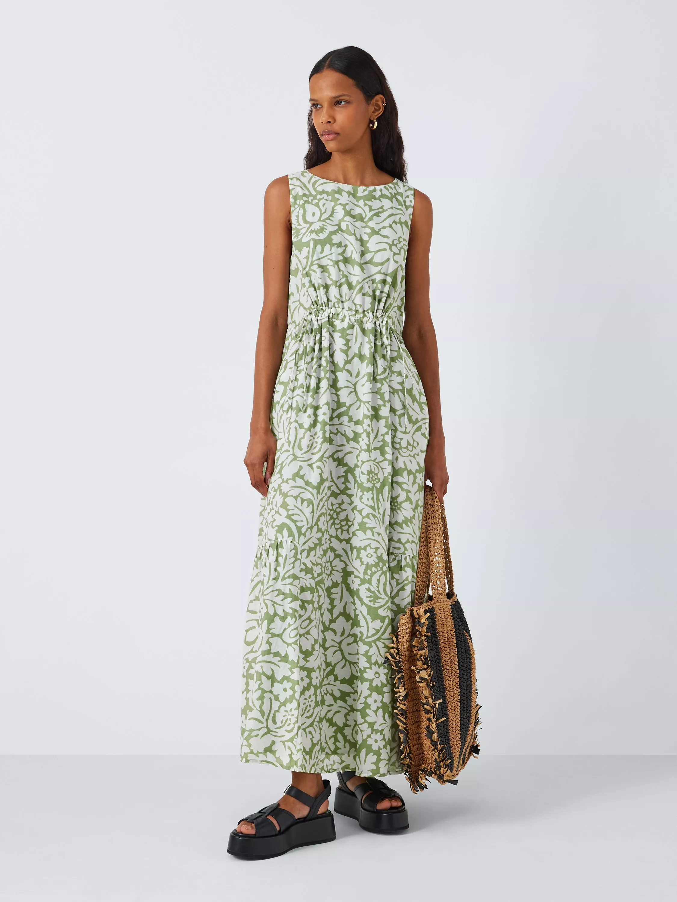Made from cotton with added viscose for a lightweight edge, this maxi dress is finished with a floral print and is stamped with tie detailing at the waist.