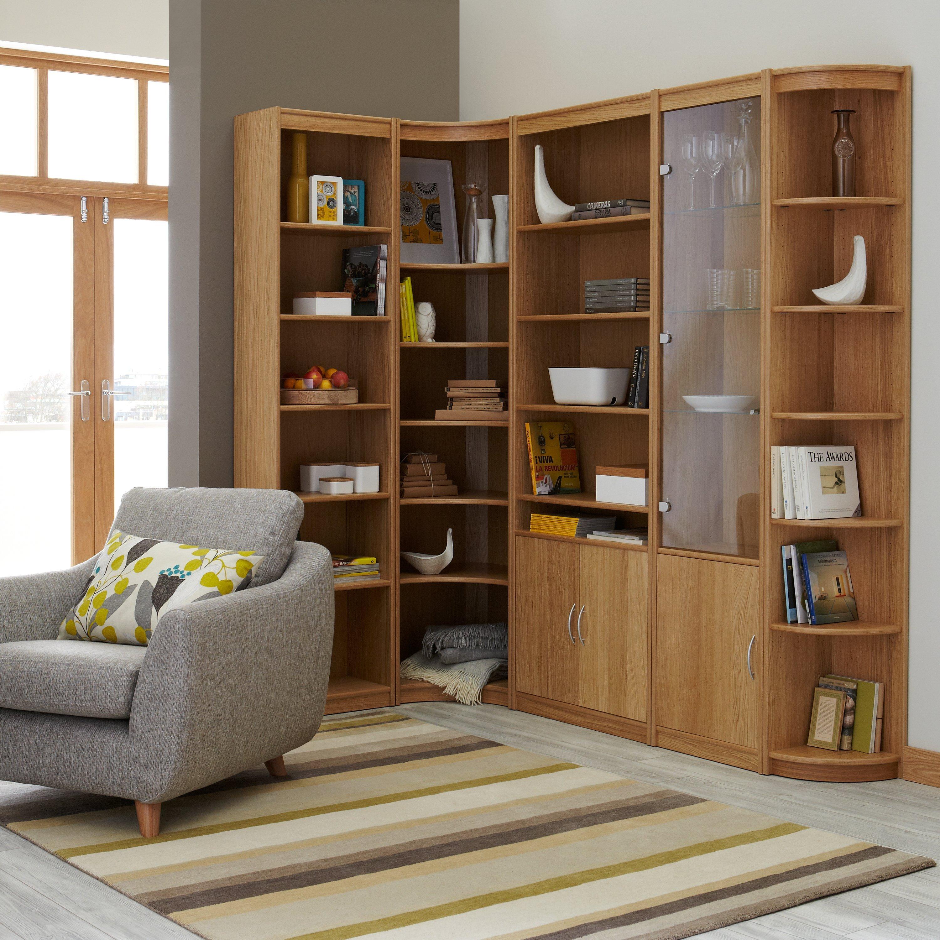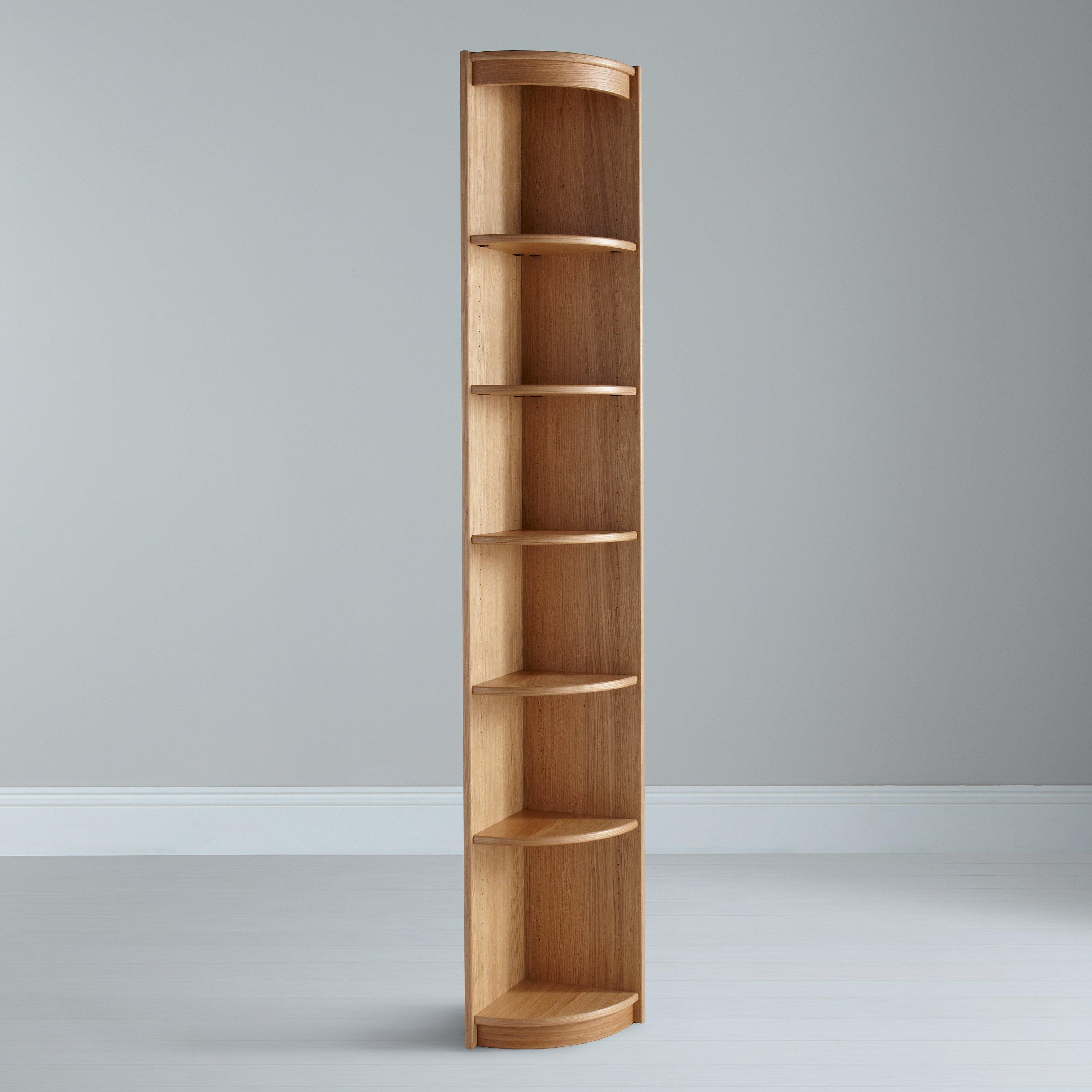 This simple and stylish corner unit provides convenient storage for smaller living spaces. It's made from oak veneer and features five curved shelves to display your books, DVDs and ornaments.
