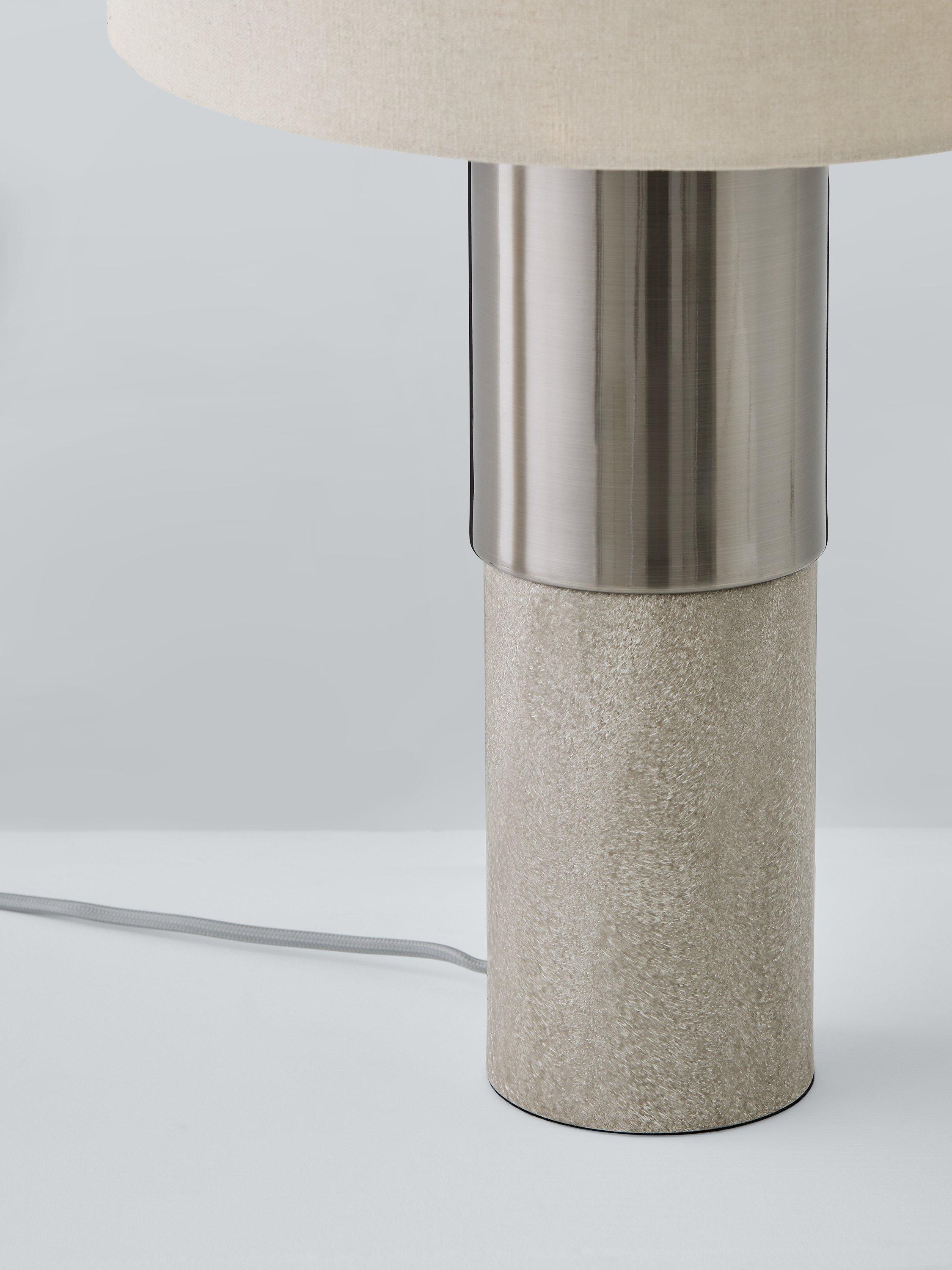 The Akani table lamp reflects contemporary elegance, with its sturdy profile and brushed finish. Its smart two-tone base will lend tactile interest to your table tops, while its complementary natural linen lampshade offers a perfect finishing touch.