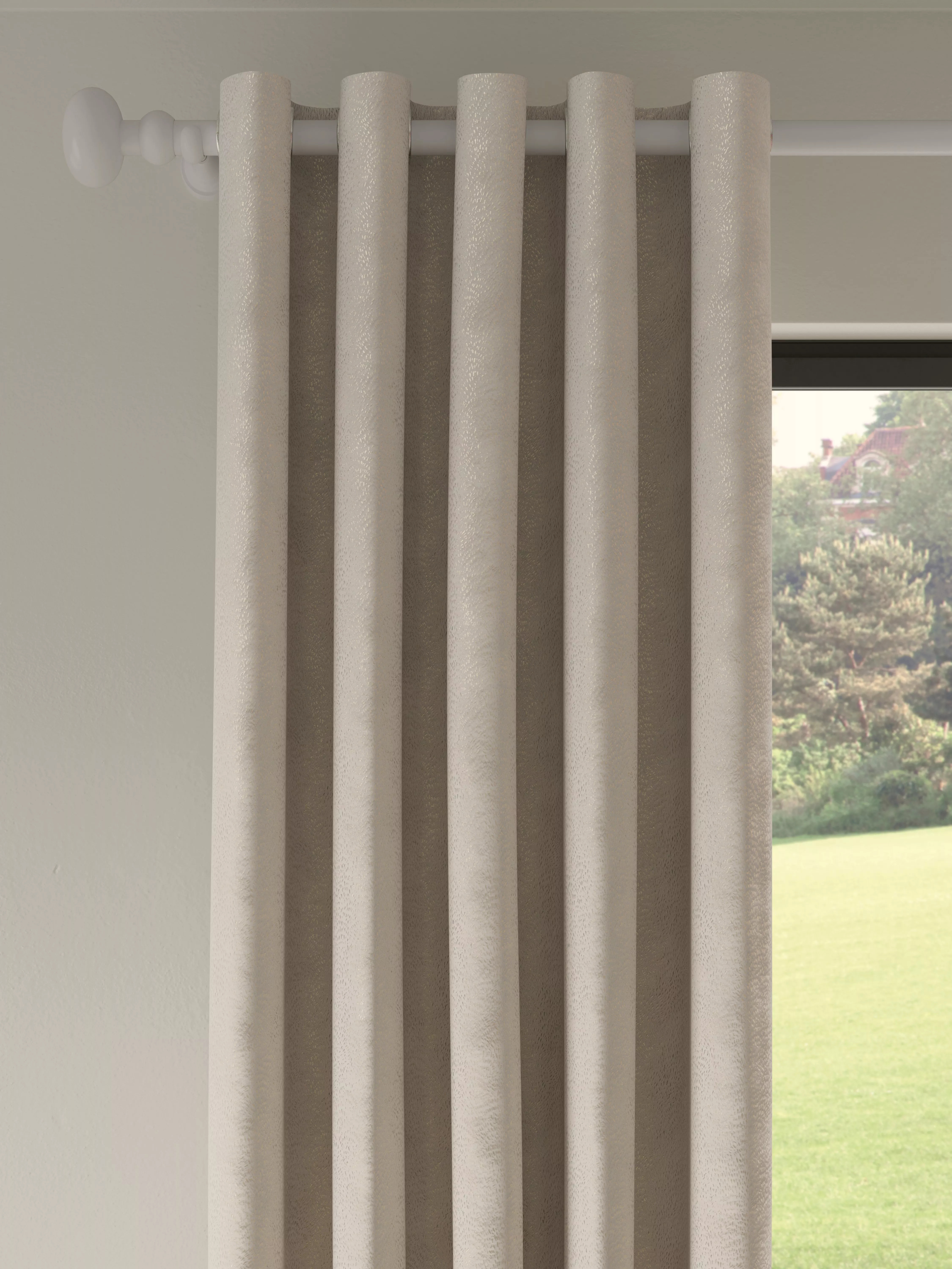Easy to style these curtains are plain in colour but textured in finish. The eyelet heading gives them a more contemporary look with large, even folds. The lining lends a full look to the curtains, improving the drape.