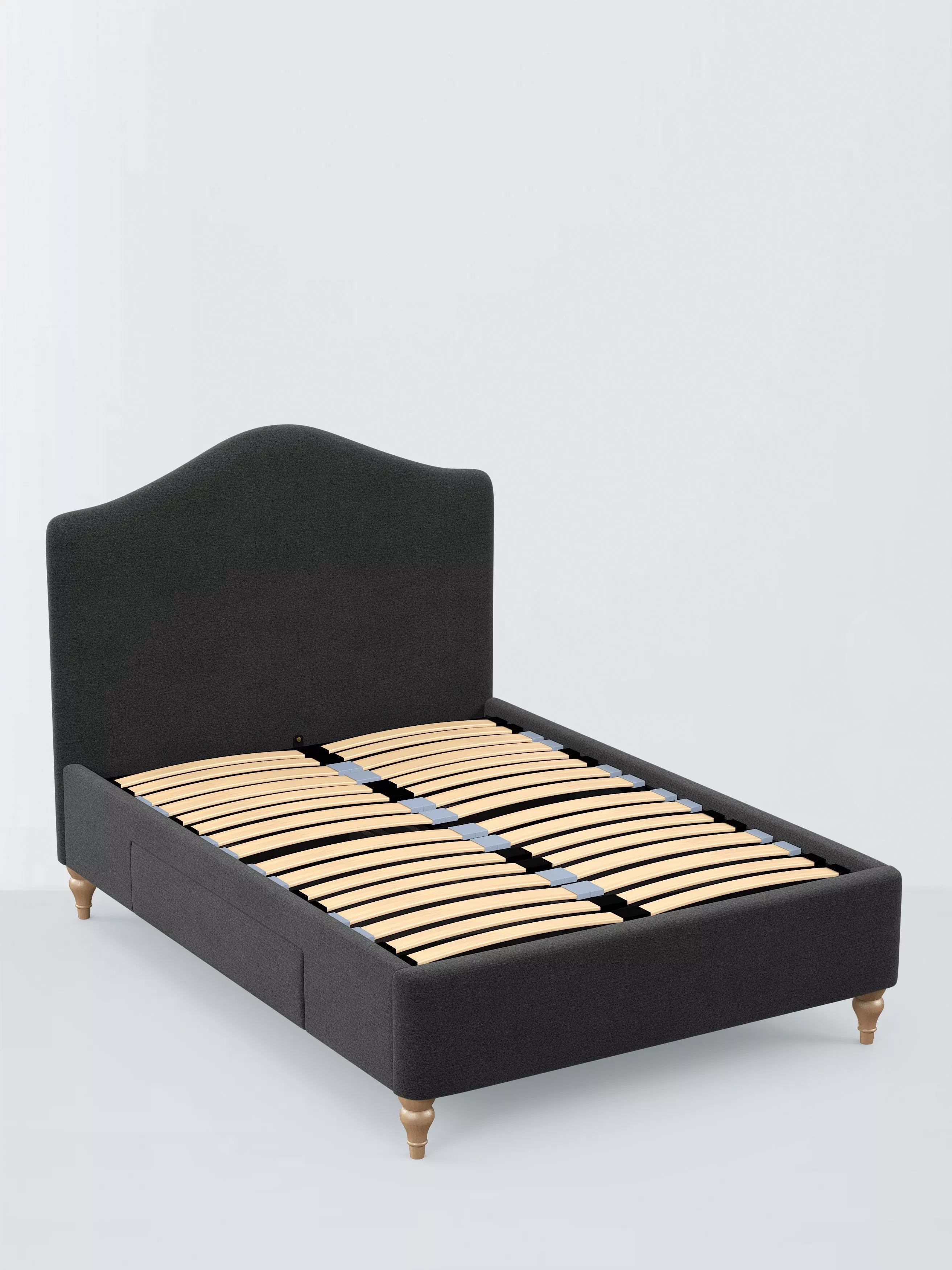 Our Alice bed frame exudes traditional charm, with a gently curved headboard that's foam filled to ensure optimal comfort and turned wooden legs. We've included two spacious drawers that are ideal for extra storage. We've added sprung Smart Slats to the base which provide enhanced support where you need it most.