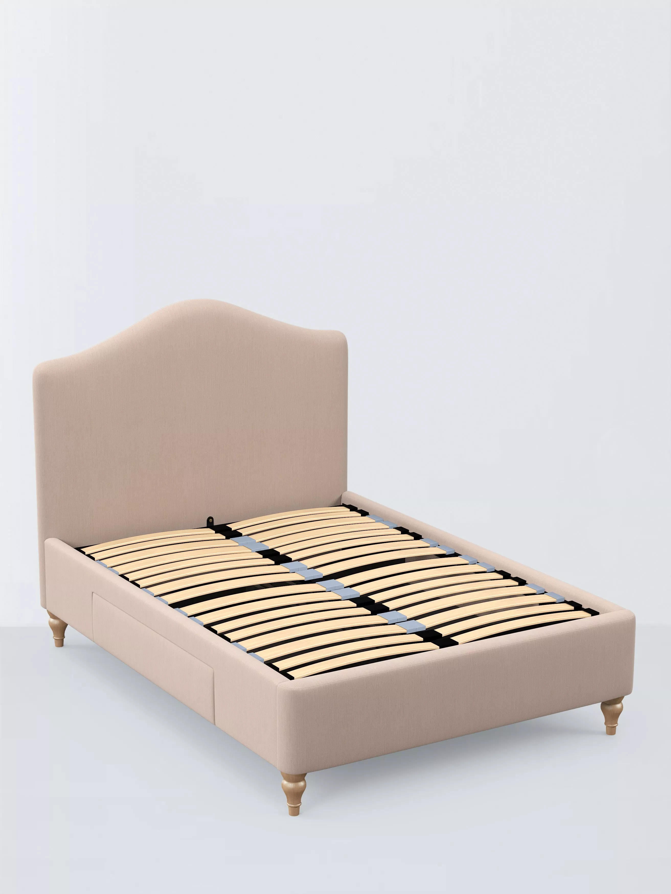 Our Alice bed frame exudes traditional charm, with a gently curved headboard that's foam filled to ensure optimal comfort and turned wooden legs. We've included two spacious drawers that are ideal for extra storage. We've added sprung Smart Slats to the base which provide enhanced support where you need it most.