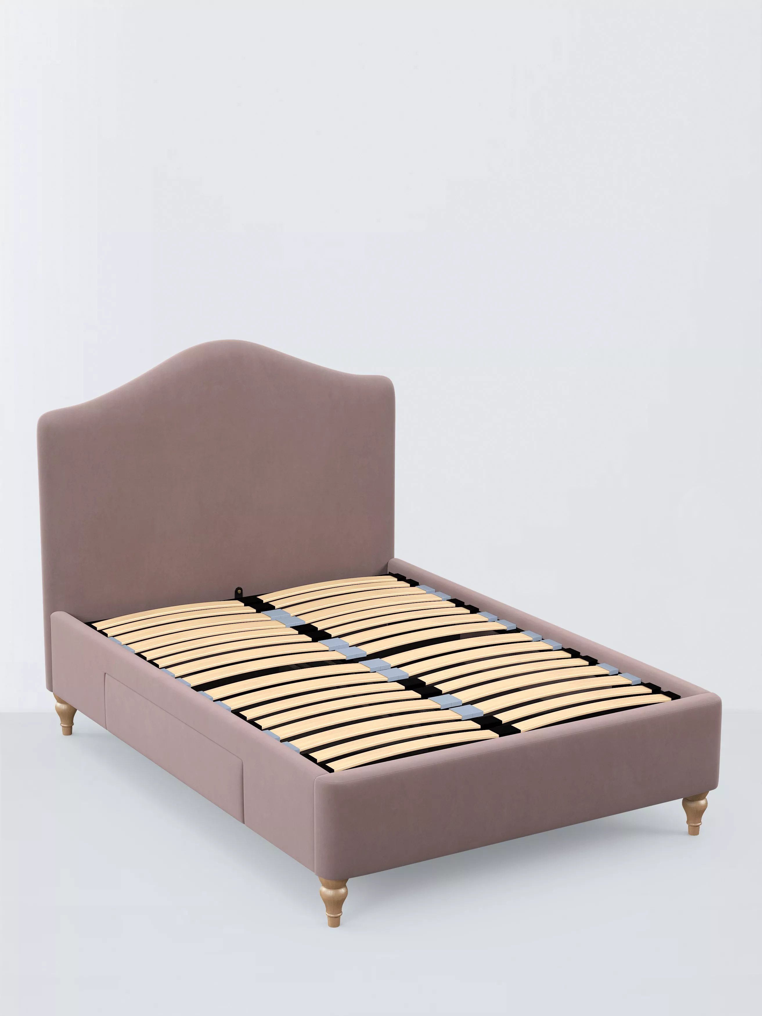 Our Alice bed frame exudes traditional charm, with a gently curved headboard that's foam filled to ensure optimal comfort and turned wooden legs. We've included two spacious drawers that are ideal for extra storage. We've added sprung Smart Slats to the base which provide enhanced support where you need it most.