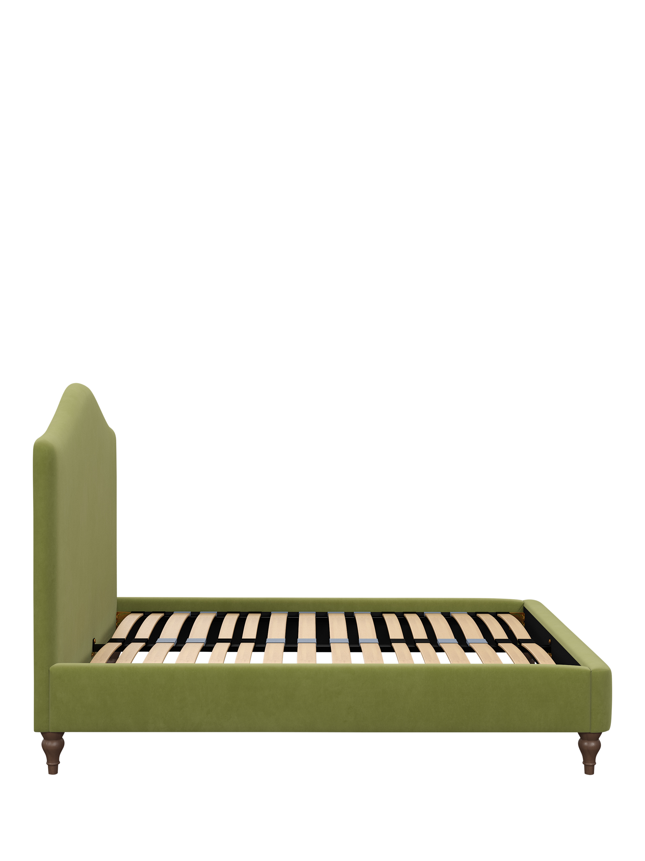 Our Alice bed frame has a charming, traditional design, with a gently curved headboard and turned wooden legs. We've added sprung Smart Slats to the base which are wider at the shoulders, lumbar and feet for enhanced support where you need it most, and it's available in a selection of fabrics and colours.