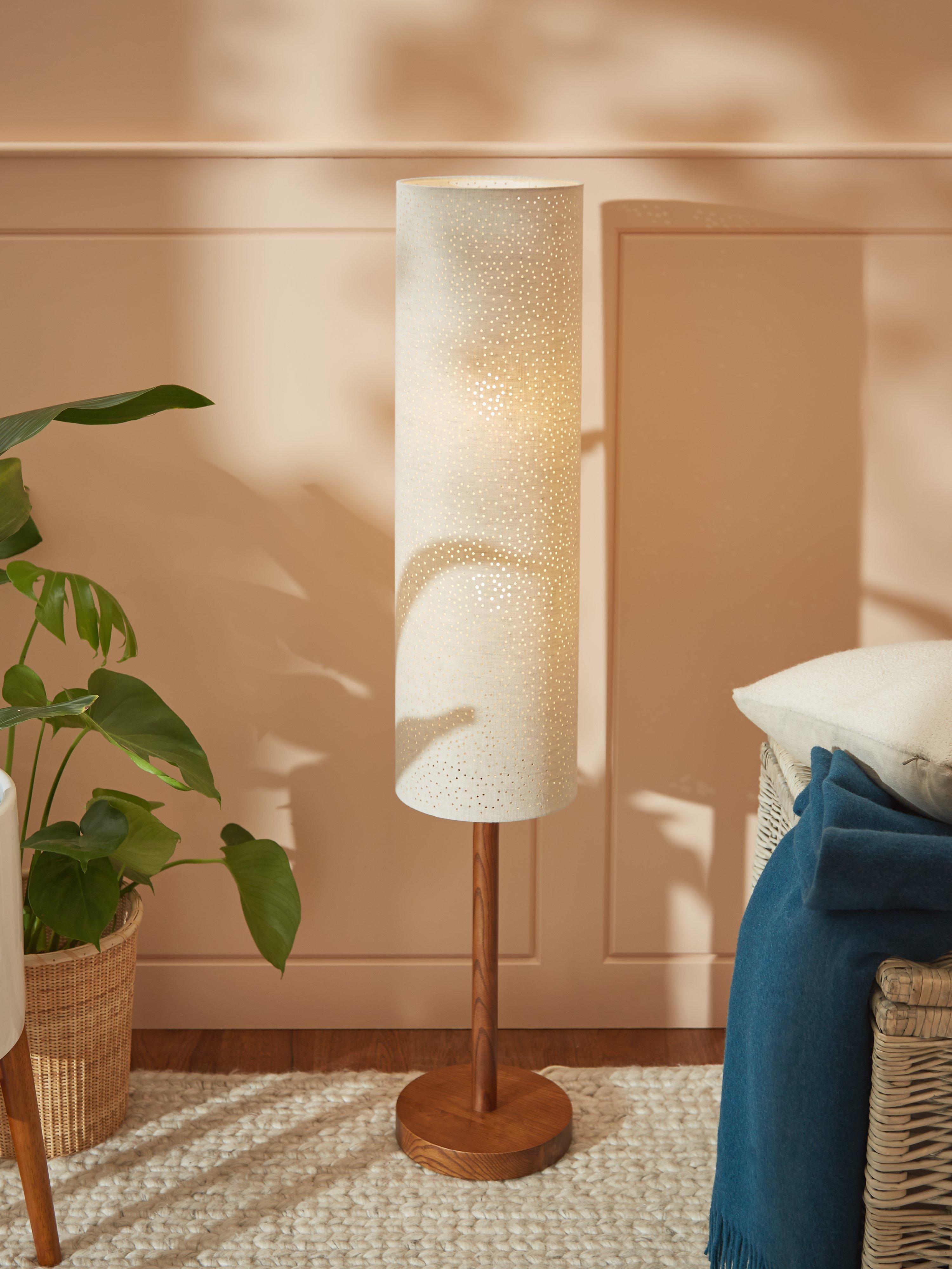 Showcasing the beauty of natural materials in a contemporary design, our Alice floor lamp features a natural linen shade that's finished with pierced detailing for an eye-catching touch. Sitting on a sturdy ash wood base, place it in your living spaces to create a warm light effect.