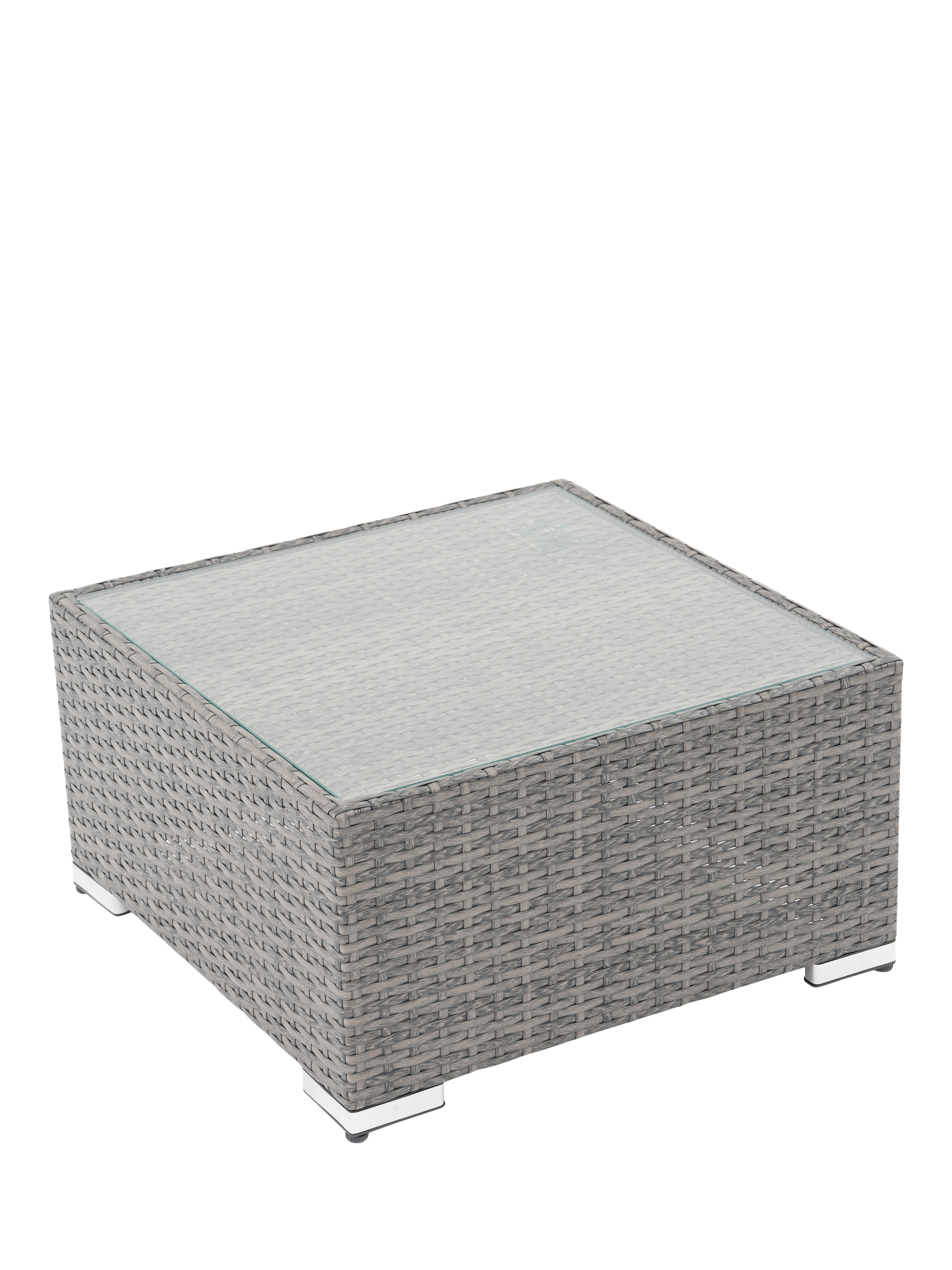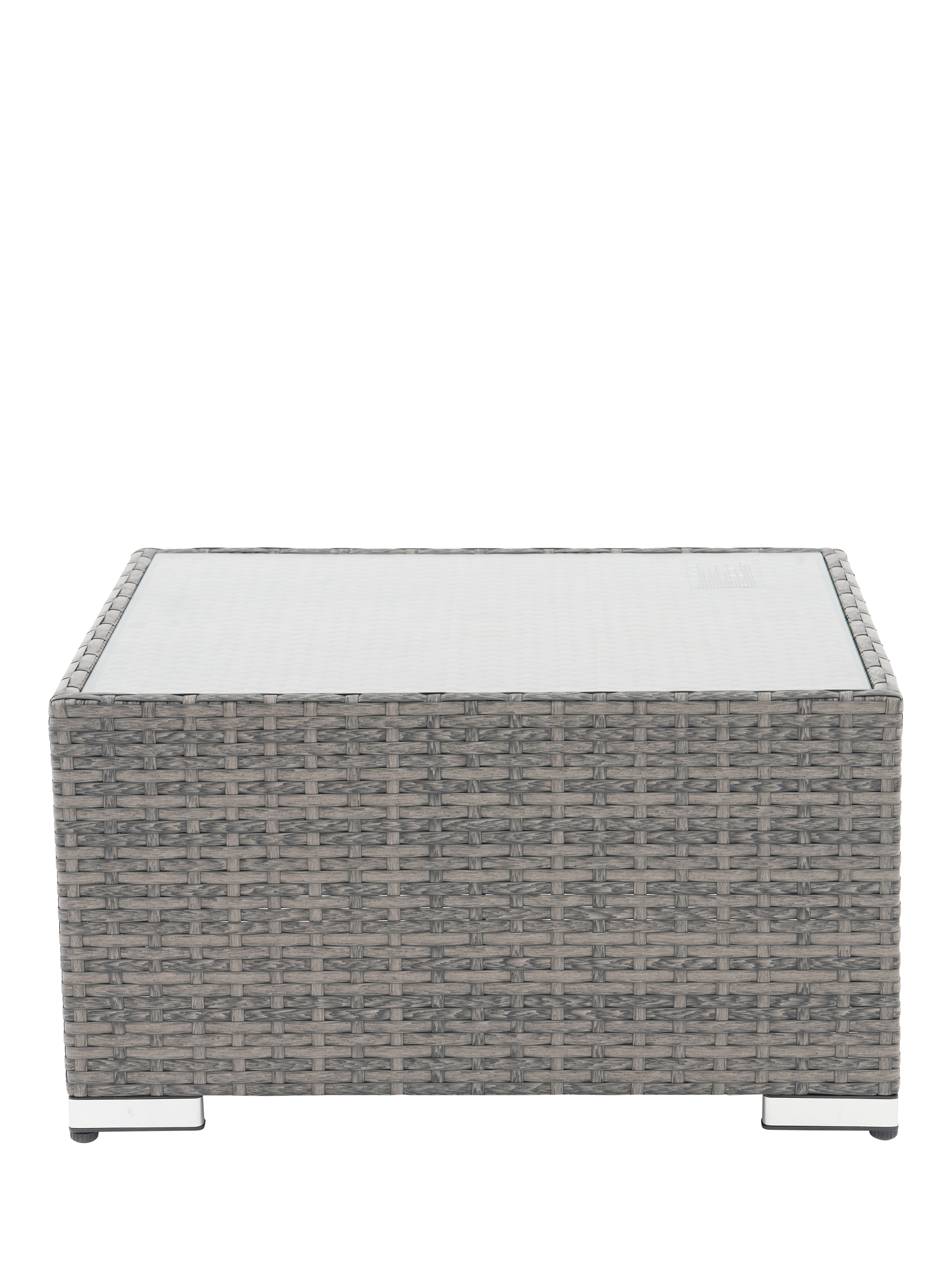 Compact and robust, the square Alora coffee table is equally at home in the garden or conservatory and features a glass top.
