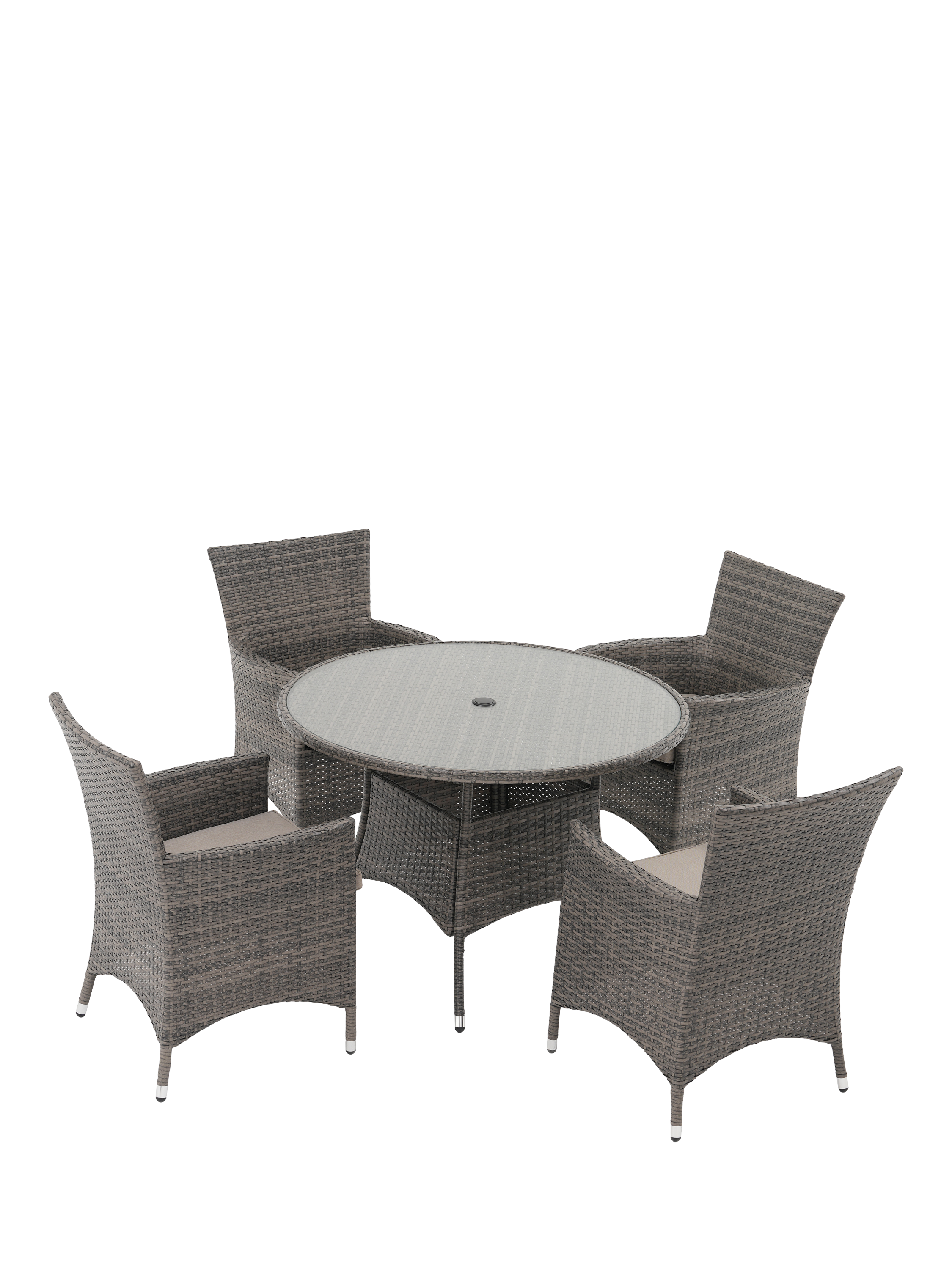 John LewisAlora Woven Rattan 4-Seater Round Garden Dining Table & Chairs Set, Grey