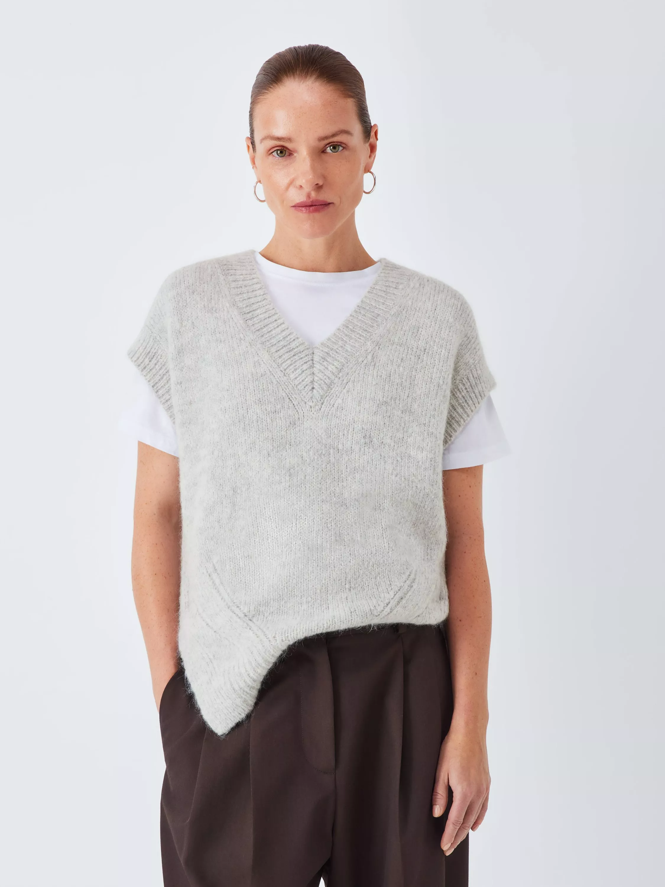 Sleeveless tabard with super-soft alpaca and wool in the fabric blend. A relaxed fit with a ribbed knit on the V-neckline, cuffs and split hem, it makes an ideal layer to take you from one season to the next.