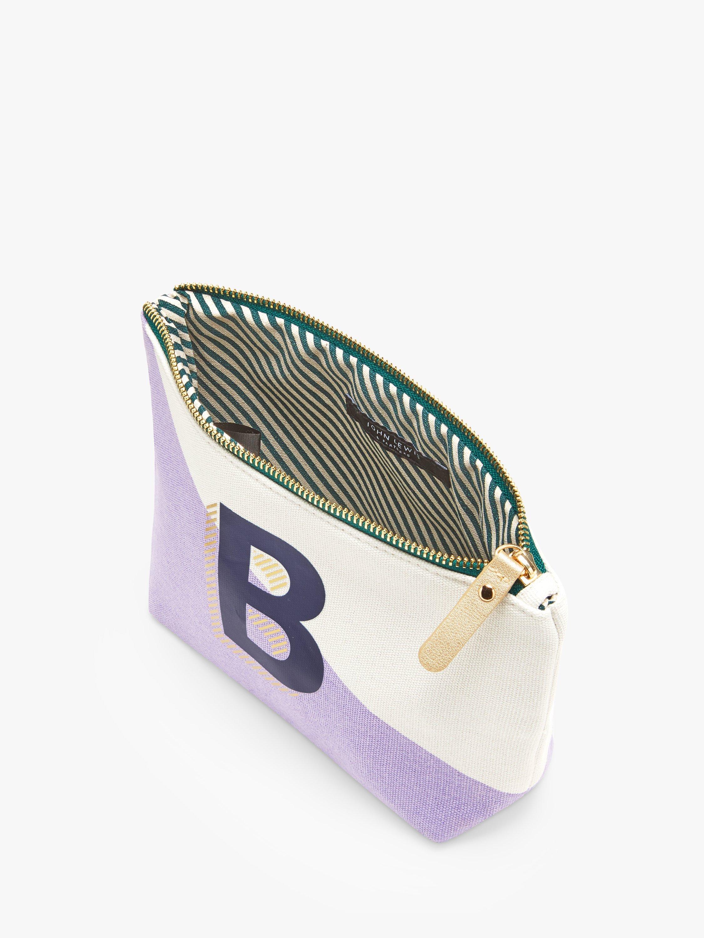 A canvas cotton makeup bag with a colourful, alphabet design.
