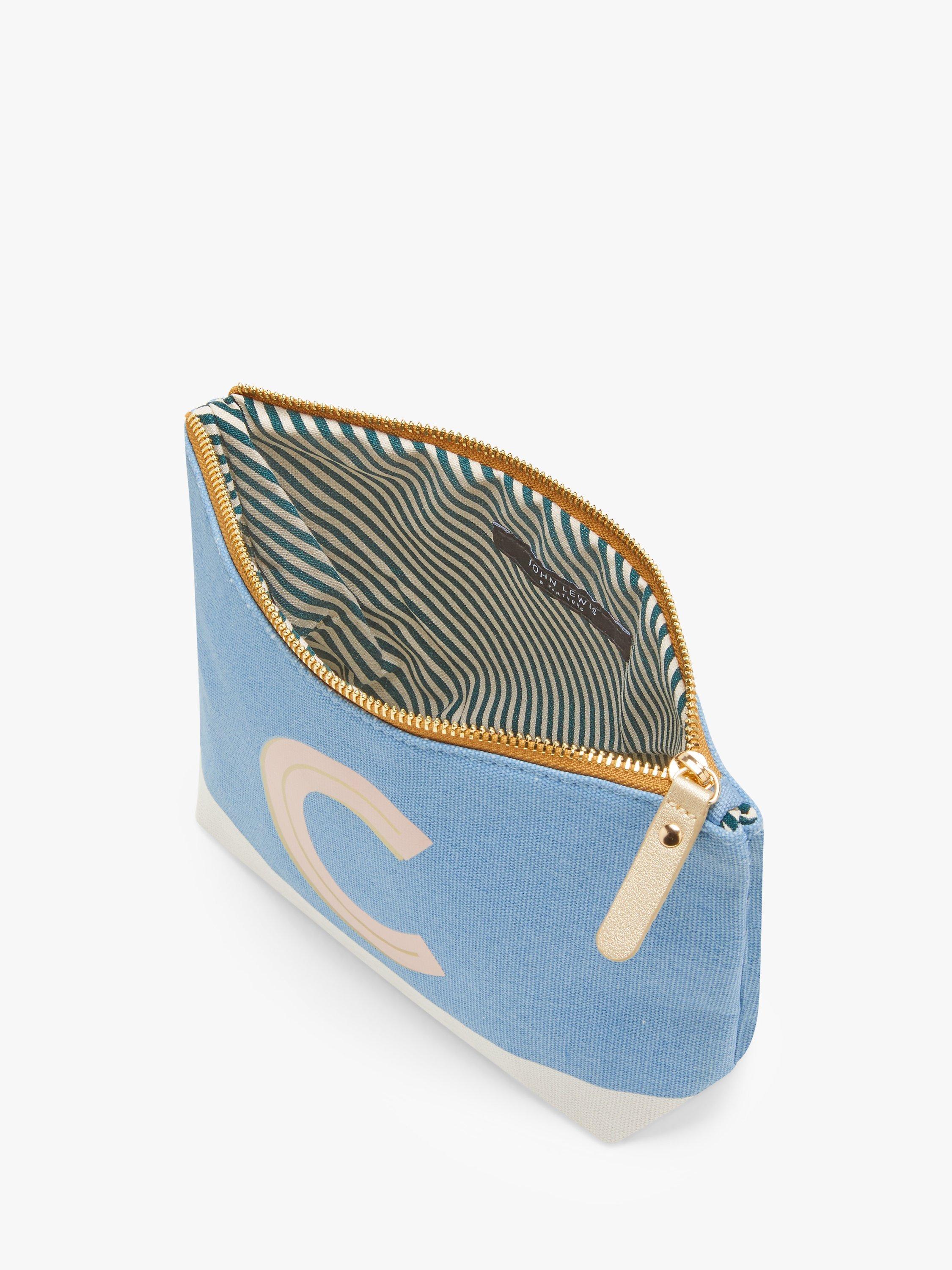 A canvas cotton makeup bag with a colourful, alphabet design.