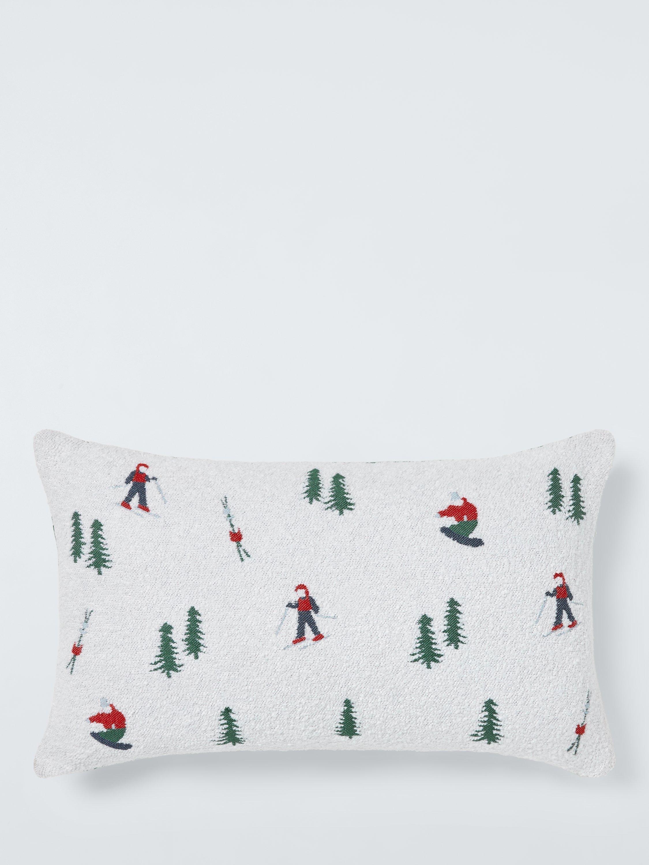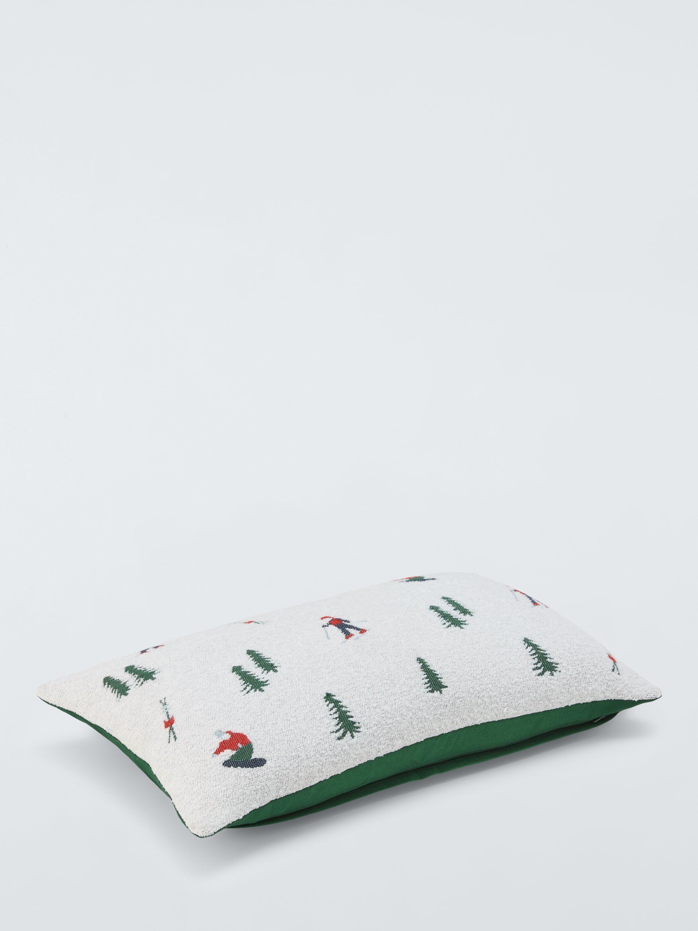 A snowy ski scene on textured fabric. The reverse is plain green for bright contrast.