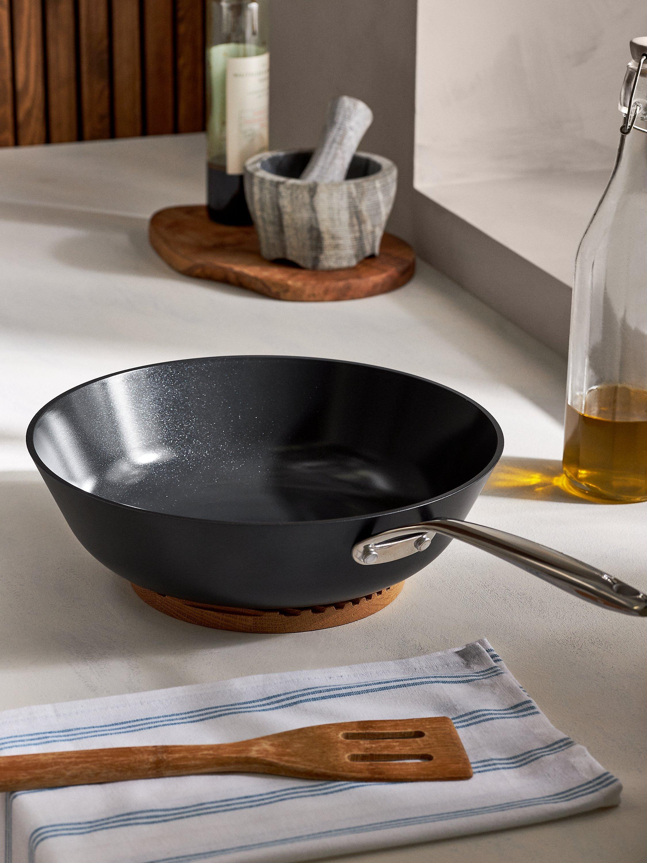 High-quality cookware with a modern look, made from heavy-gauge thick aluminium for superior heat distribution. The stainless steel handle is riveted for strength and designed for safe and comfortable use. Each pan has a 100% full induction plate for better conductivity when used on induction hobs and a smooth-finish ceramic non-stick coating.