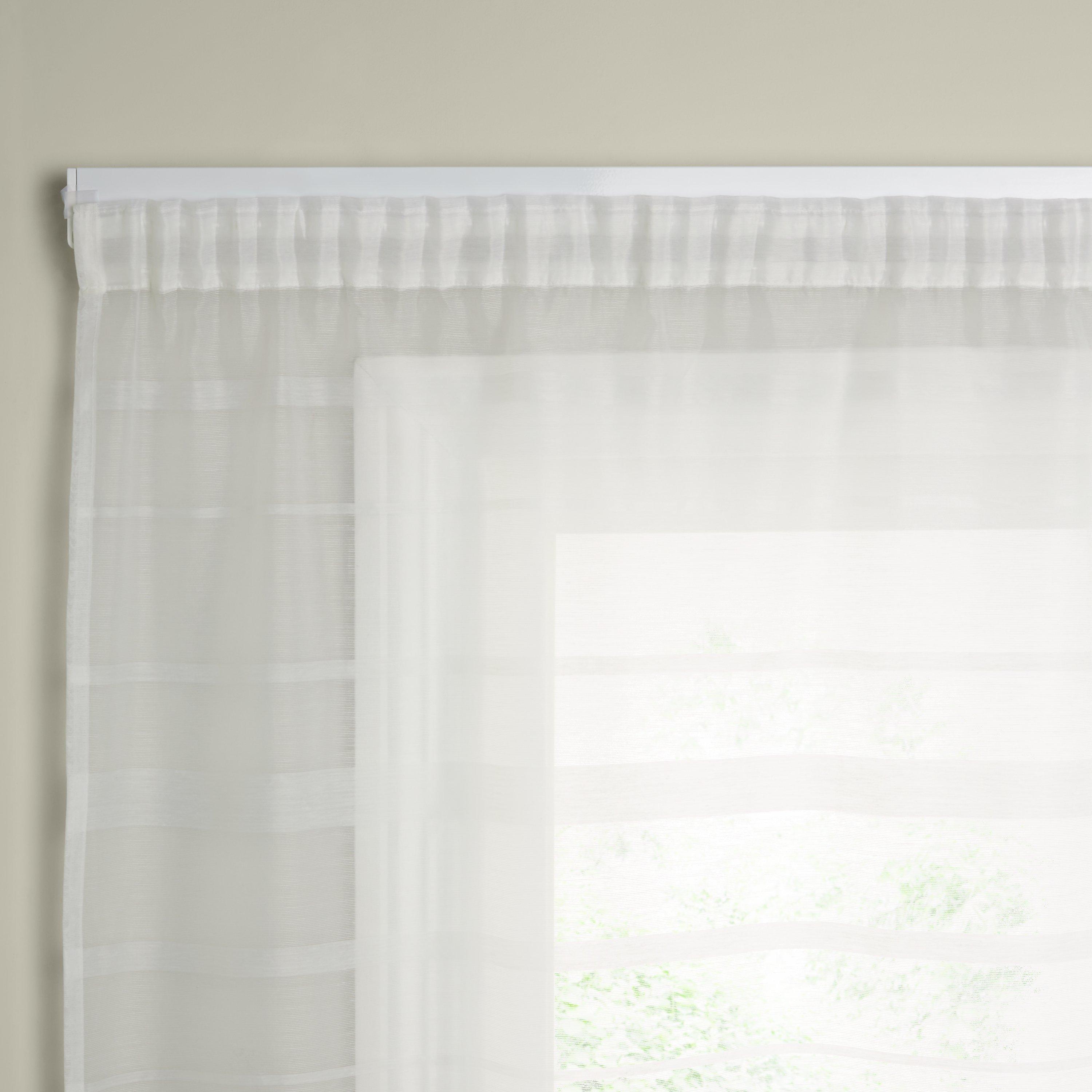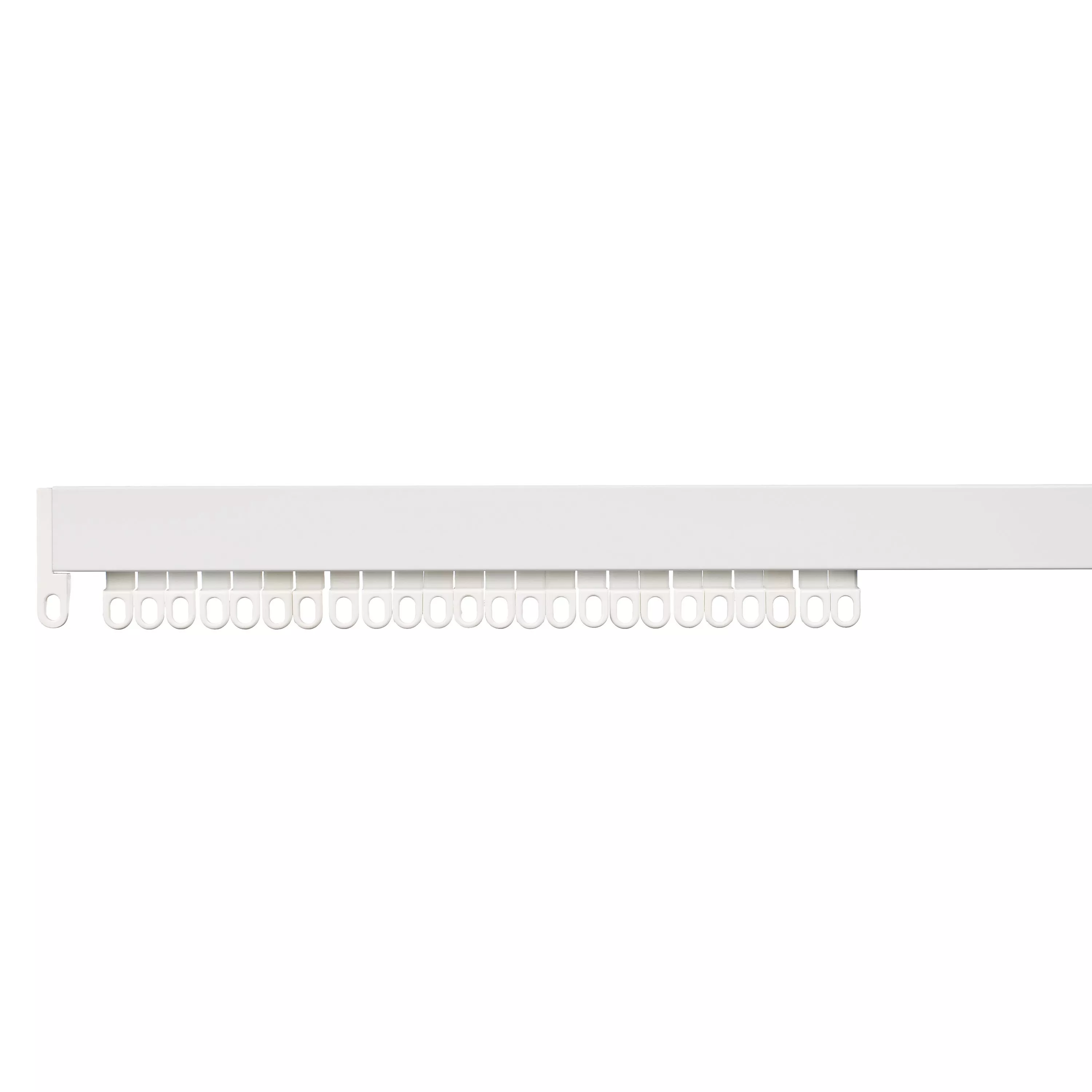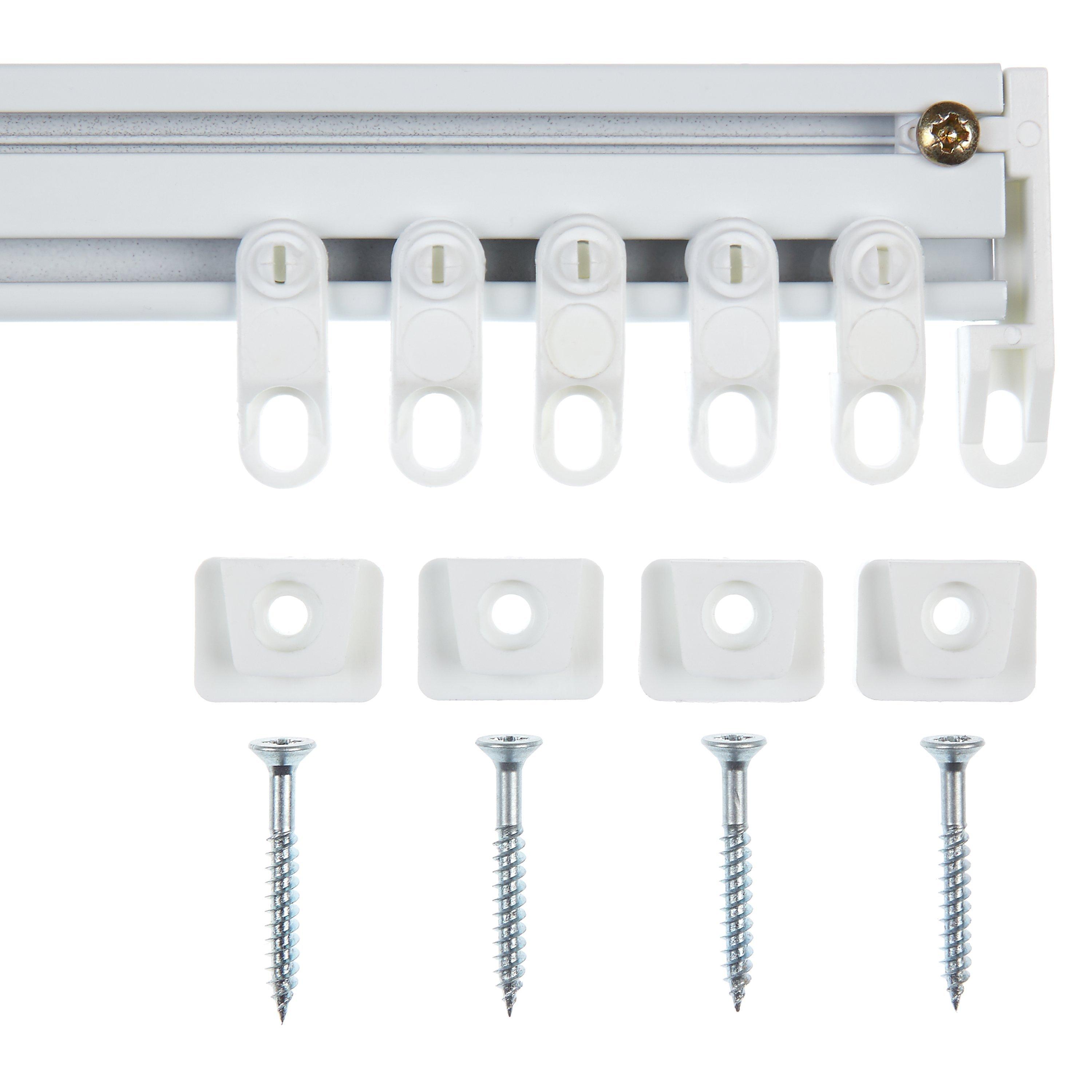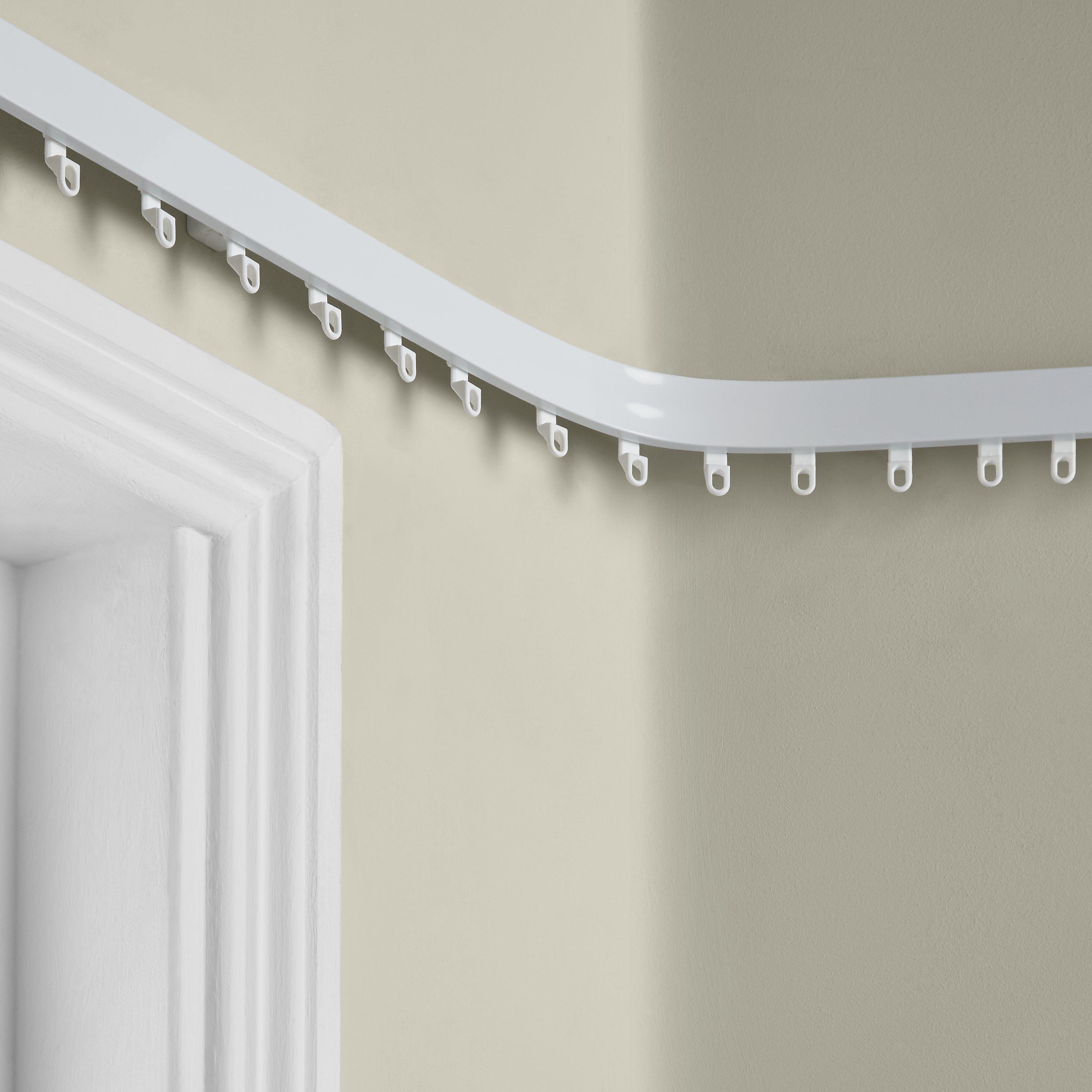 A white, uncorded, aluminium track suitable for light to medium-weight curtains.
