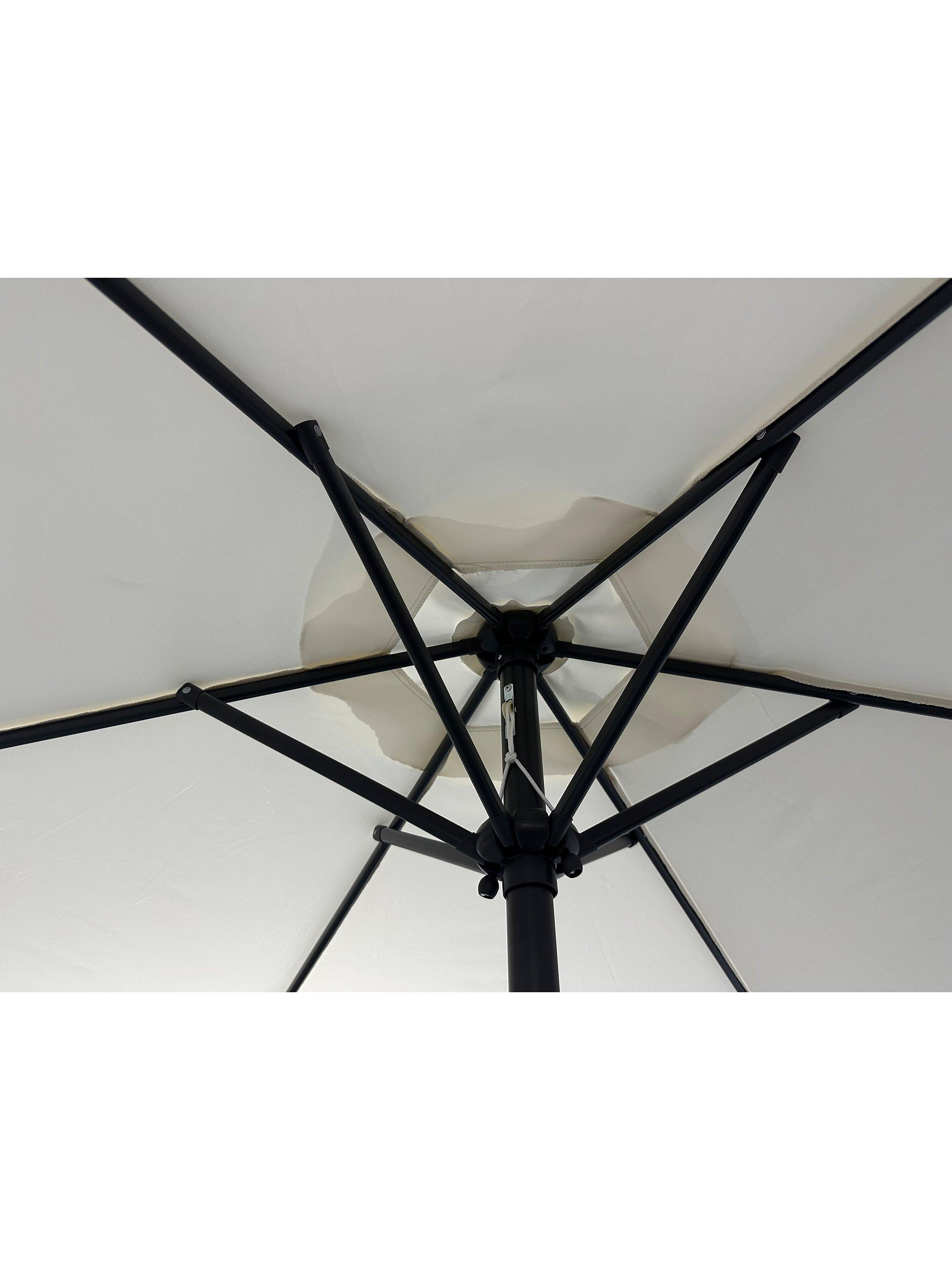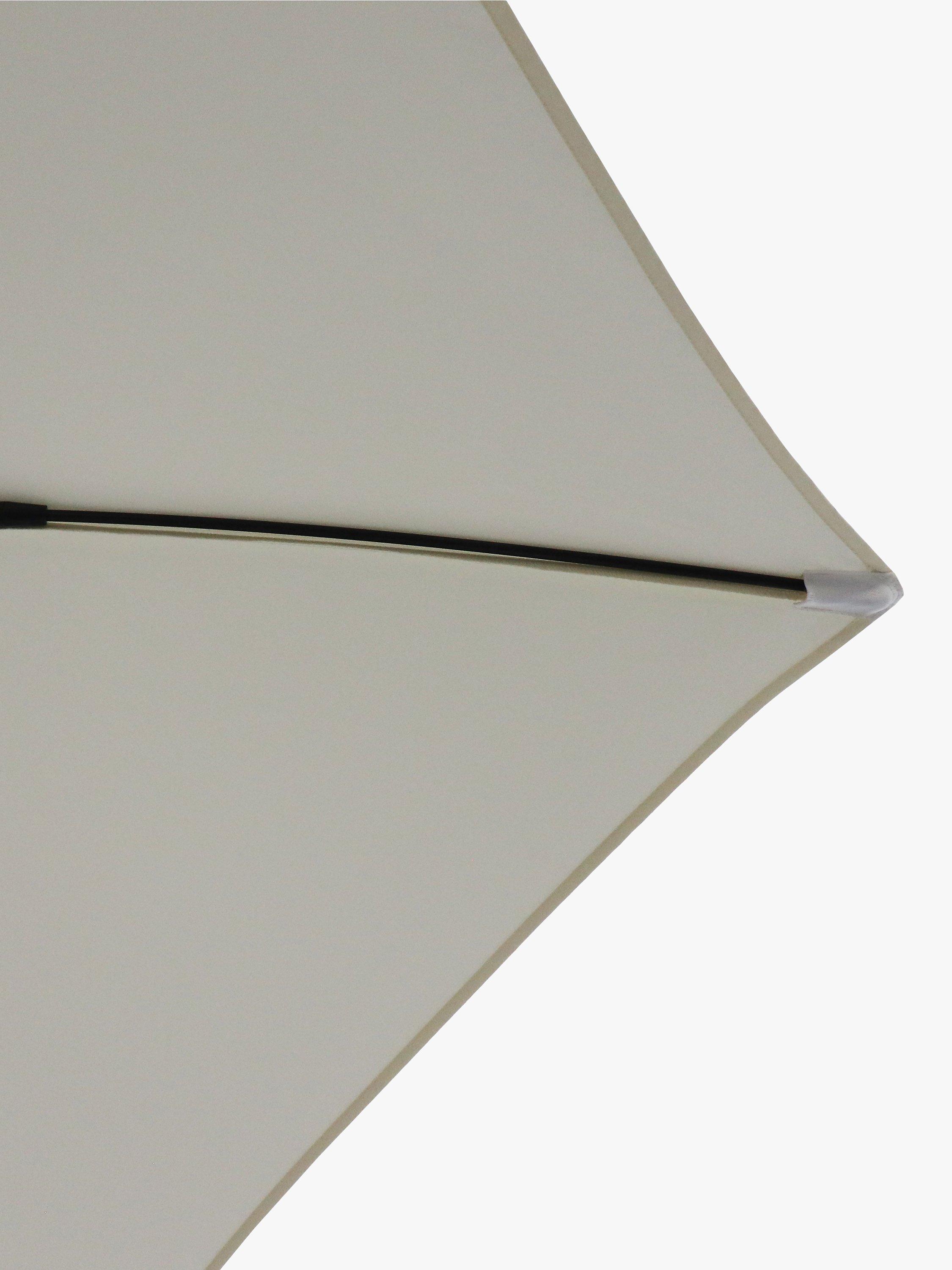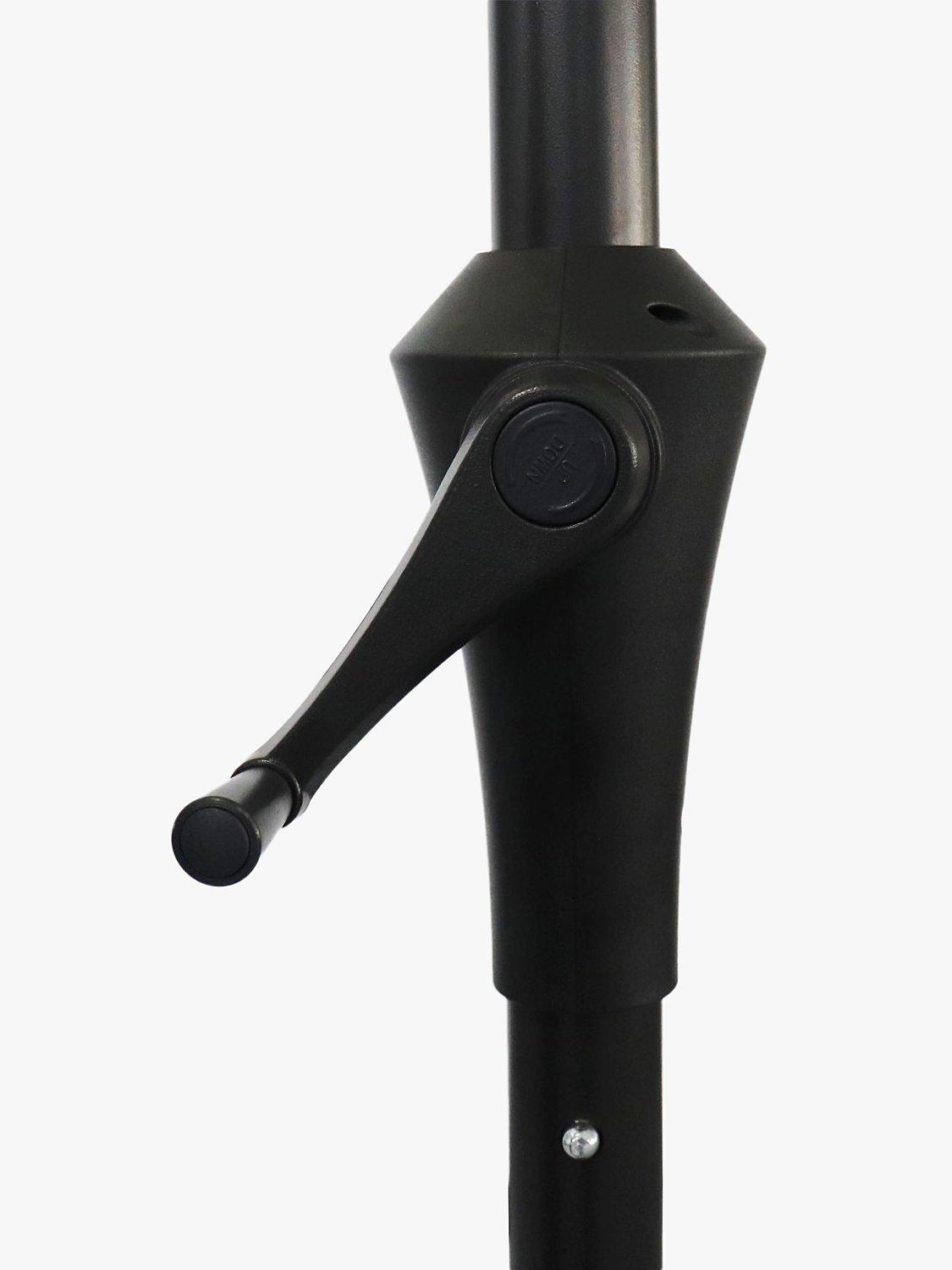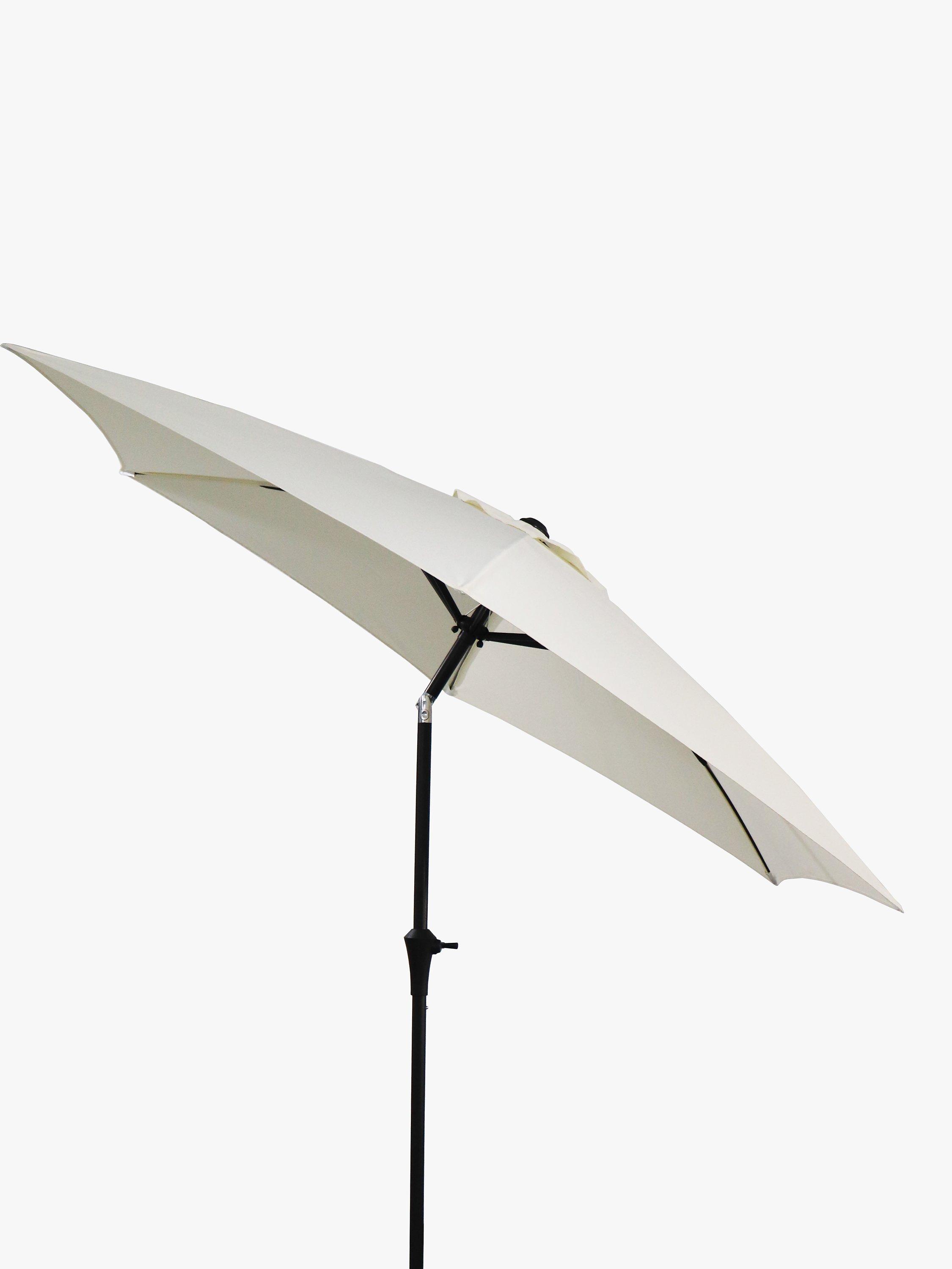 Operated by an easy wind-up mechanism, this garden parasol has tilt adjustment to give you targeted protection from the sun. It's made with a shower-resistant canopy offering UV50+ sun protection, a corrosion-resistant aluminium pole and shock-resistant ribs to complete this sturdy design.