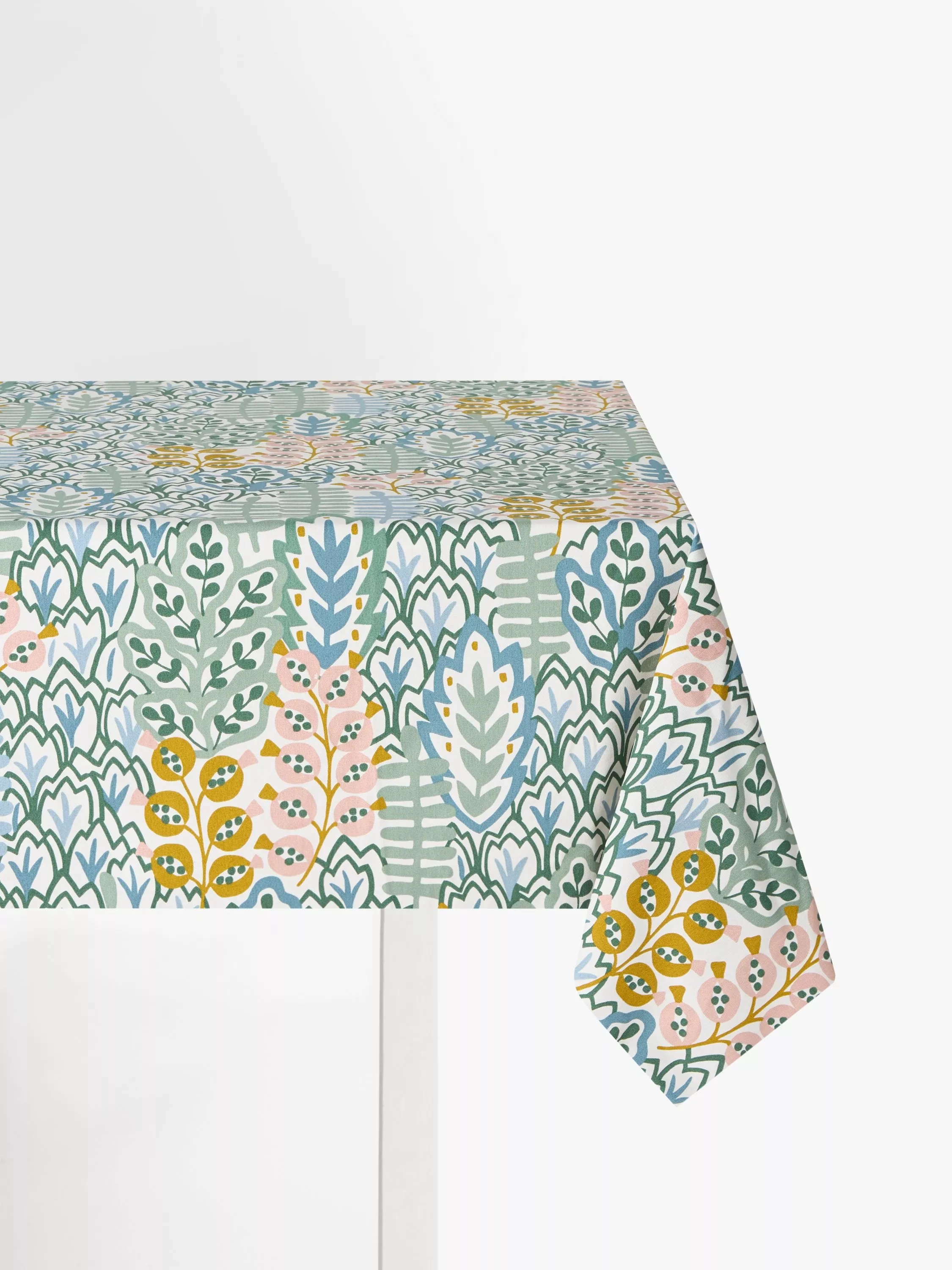 This fabric is ideal for use as a tablecloth as spills and mess can easily be cleaned with a damp cloth. If any liquids are spilt, it's a good idea to clean up straight away using a blotting action, as this is the most effective way to prevent the stain from seeping into the fabric. Daylight will also help minimise the look of any residual marks. Finally, be cautious of excessive heat which can damage the coating and look of the fabric. Always protect the tablecloth by using placemats and coasters.