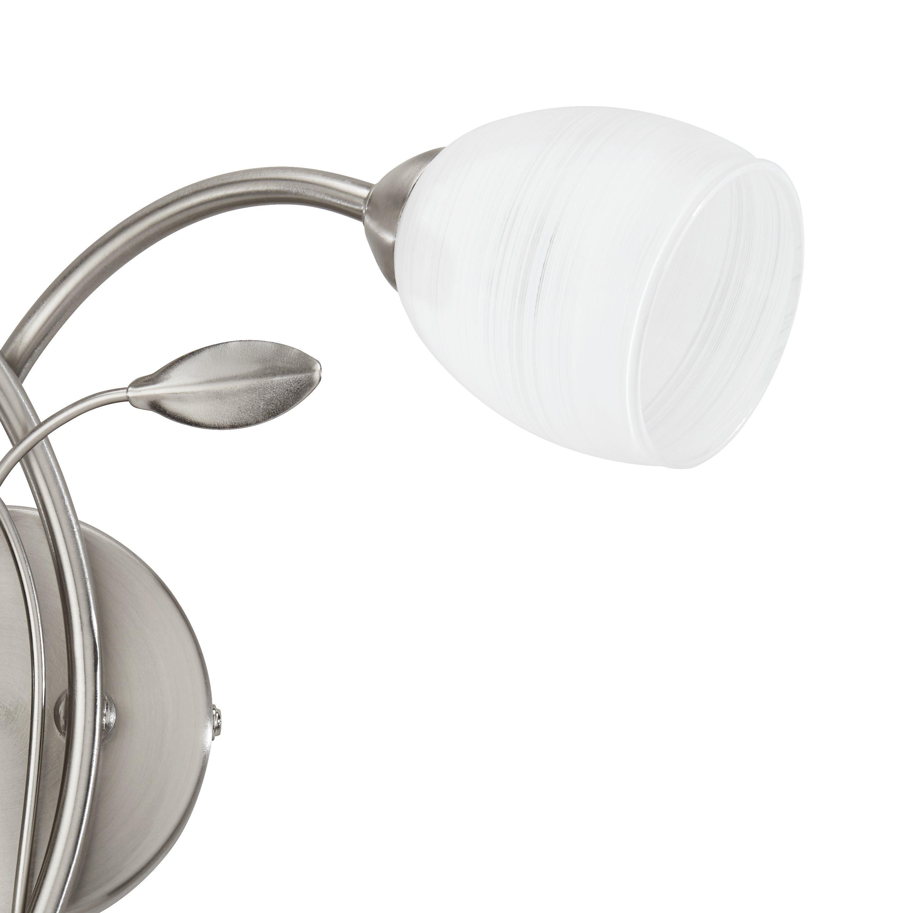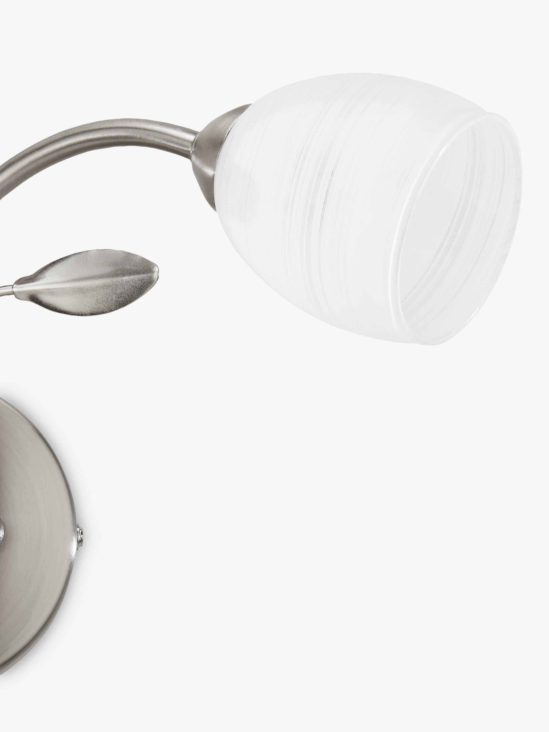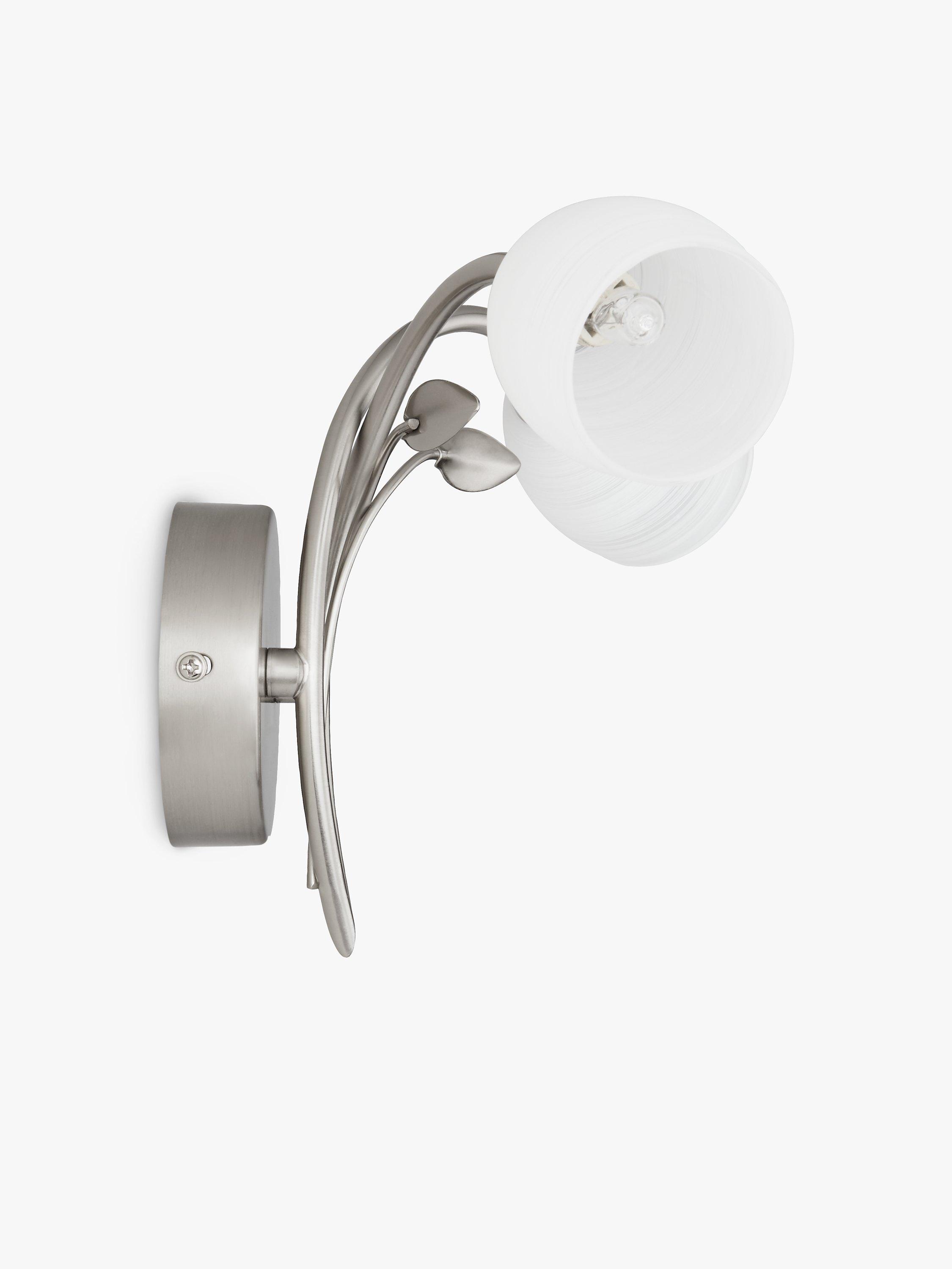 A classically styled twin wall light. Intertwined arms with small leaf details add an opulent air to the opal glass tulip shaped shades.