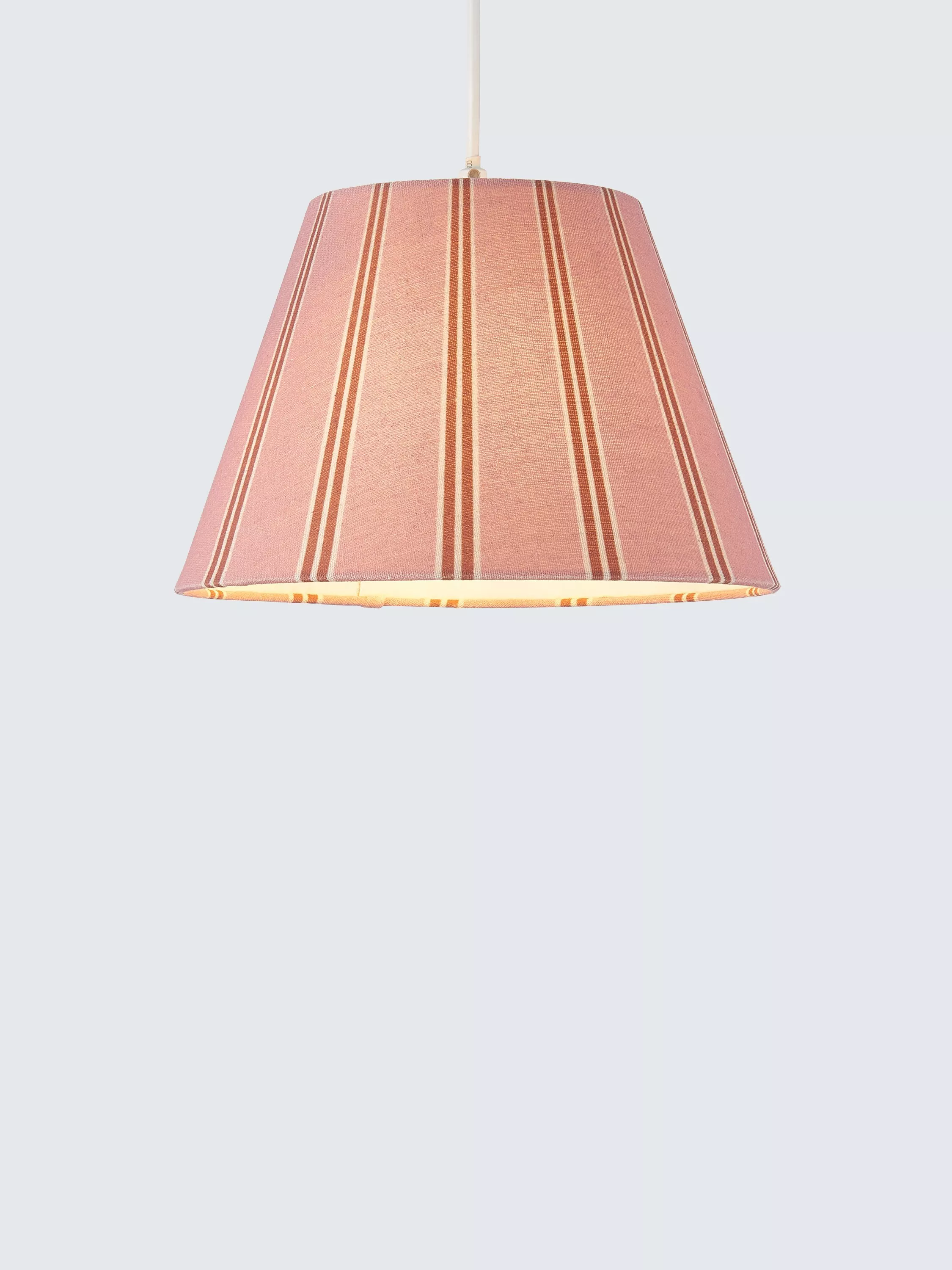 The Ambleside shade features earthy-toned stripes on a linen-effect fabric, adding a soft, stylish touch to any space. Its simple design blends seamlessly with a variety of interiors and is available in a range of colours. Comes with a reversible gimbal so you can use it as a ceiling light shade or for a table lamp.
