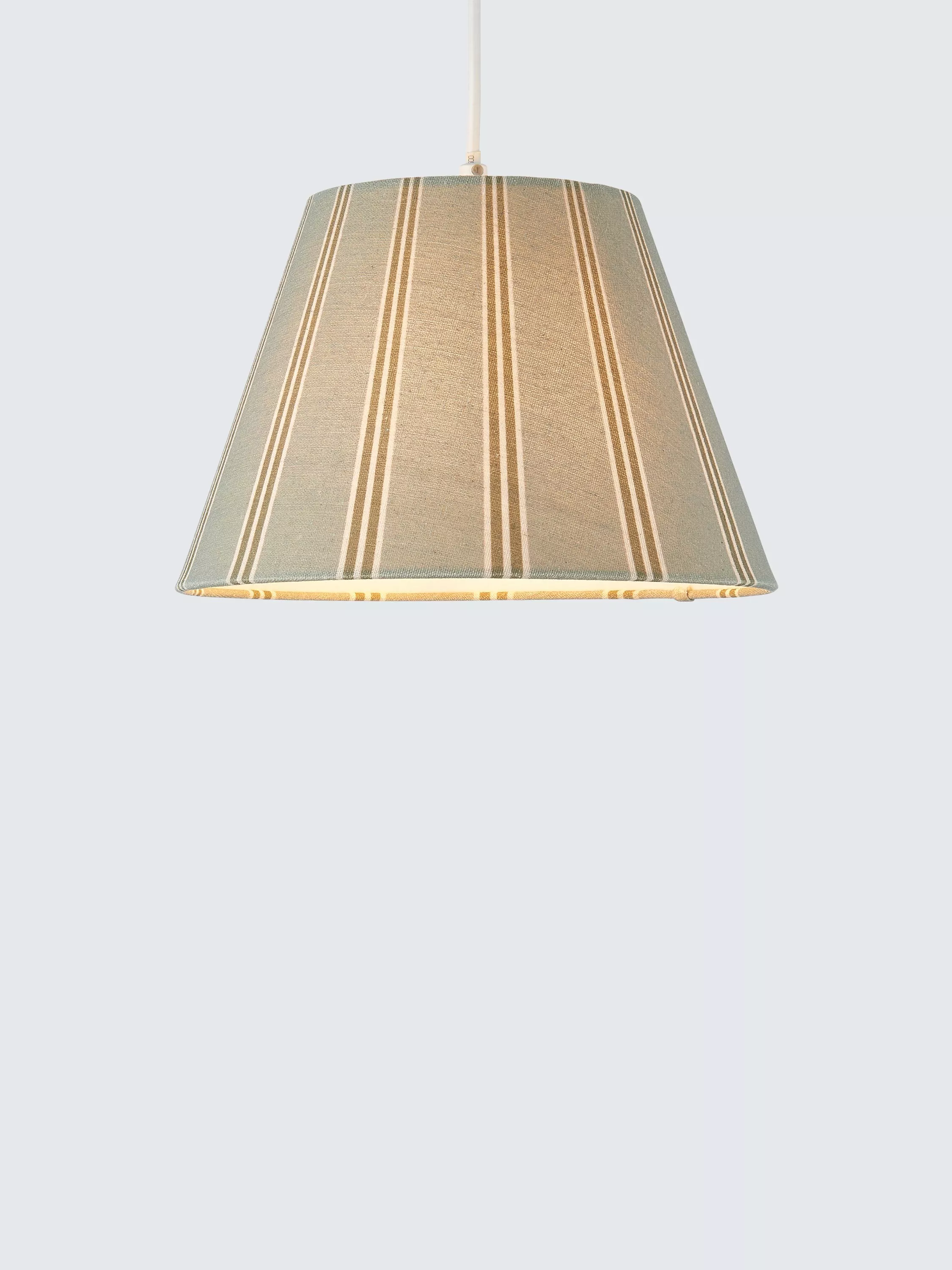 The Ambleside shade features earthy-toned stripes on a linen-effect fabric, adding a soft, stylish touch to any space. Its simple design blends seamlessly with a variety of interiors and is available in a range of colours. Comes with a reversible gimbal so you can use it as a ceiling light shade or for a table lamp.