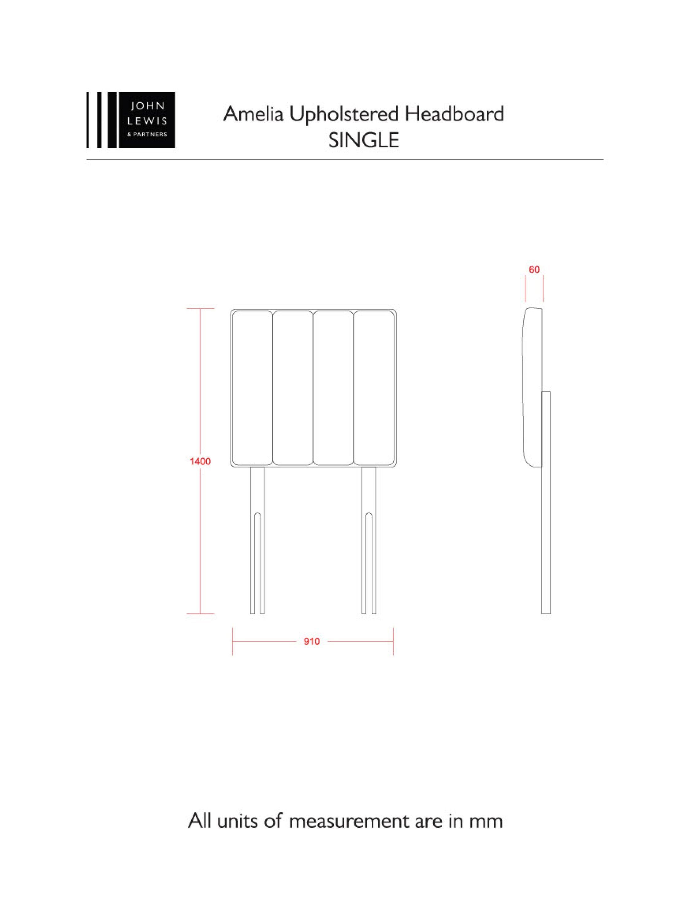 John LewisAmelia Upholstered Headboard, Single, Herringbone Oat