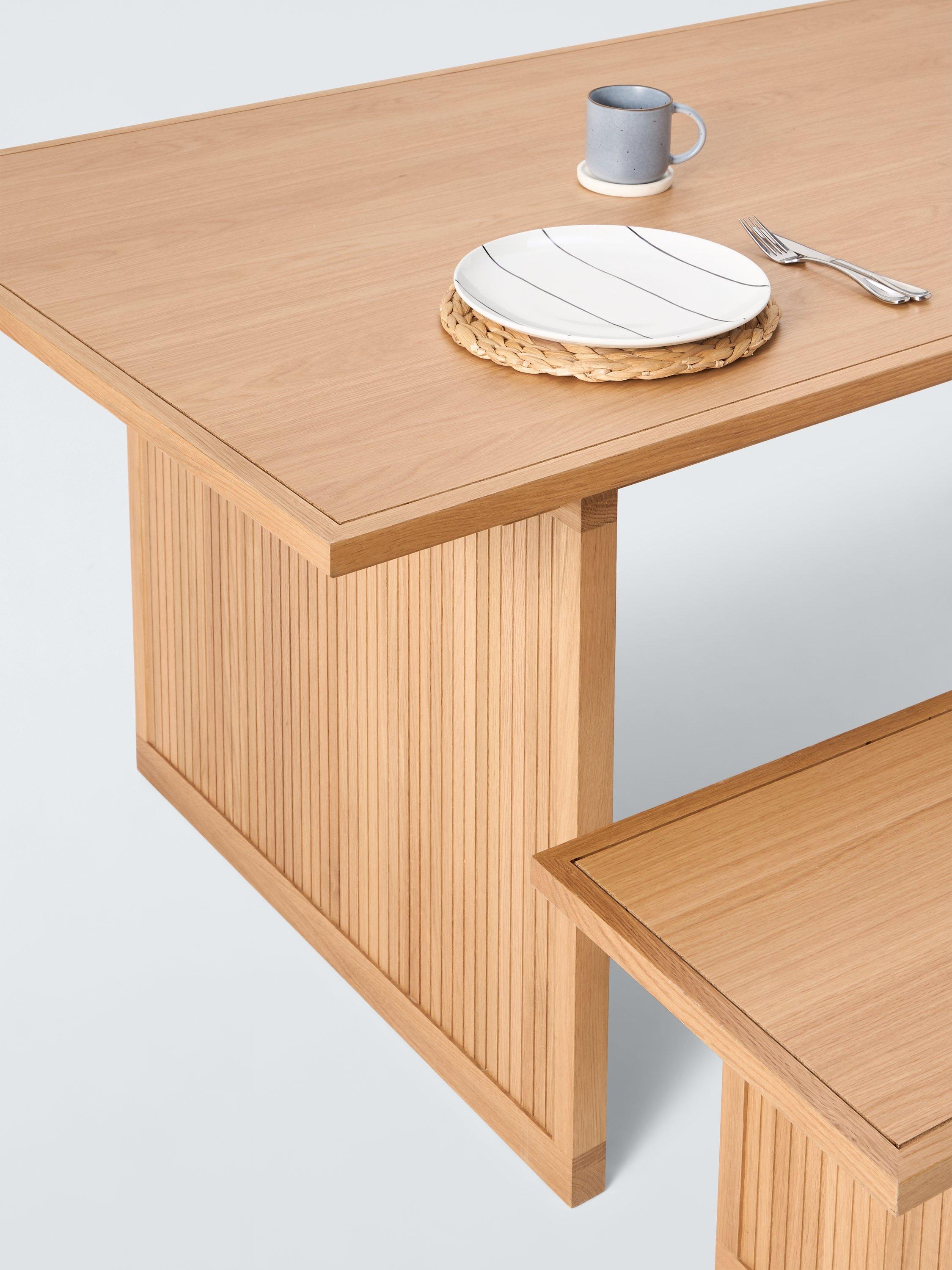 Undeniable Scandi design. Our Anders range offers modern furniture, made using traditional techniques. There's space for eight people around this striking dining table, which is built from solid oak and features distinctive groove detail on the legs. Visually timeless and reassuringly robust, it shows off the natural and tactile mixed grain directions of the wood.