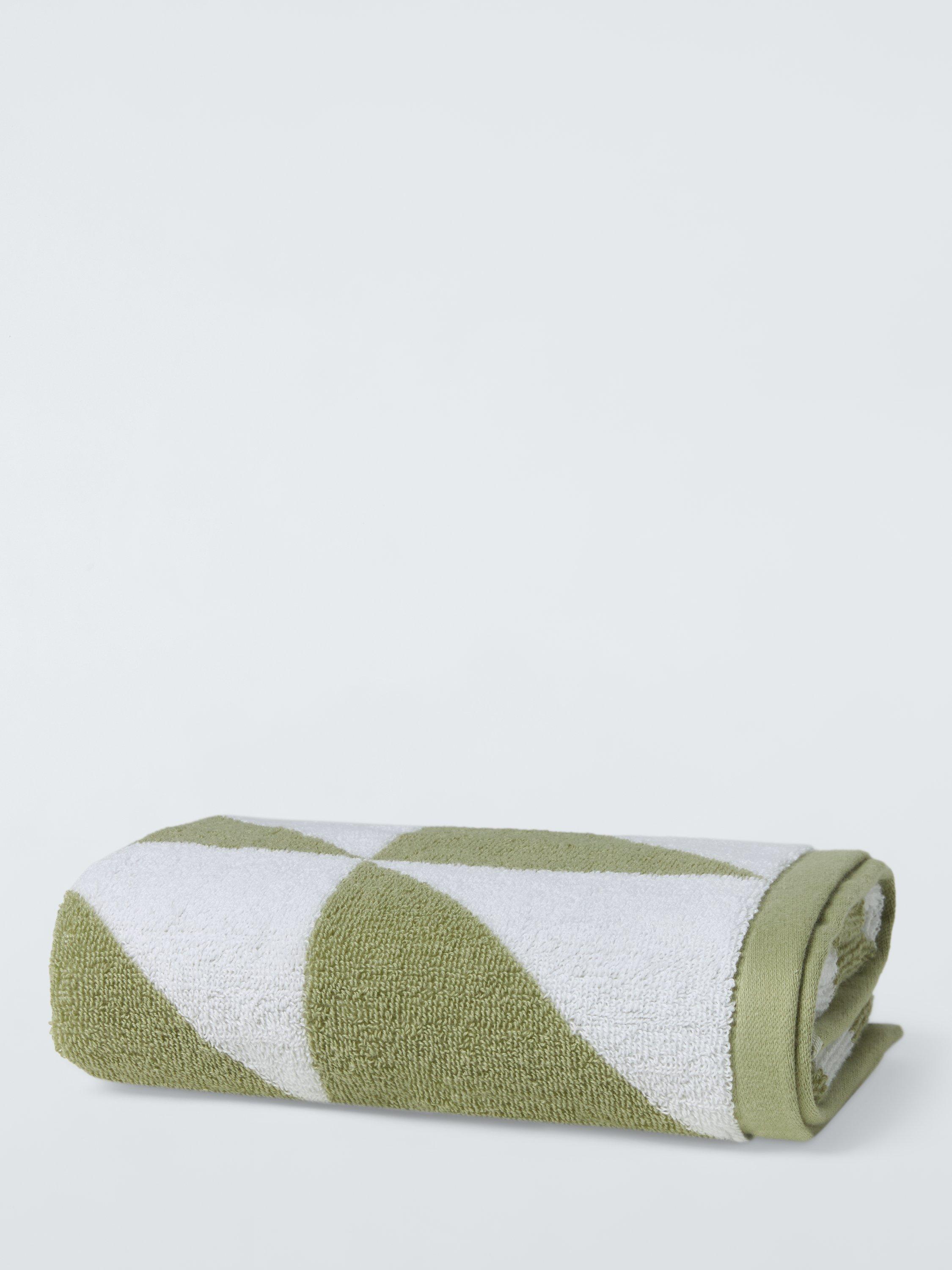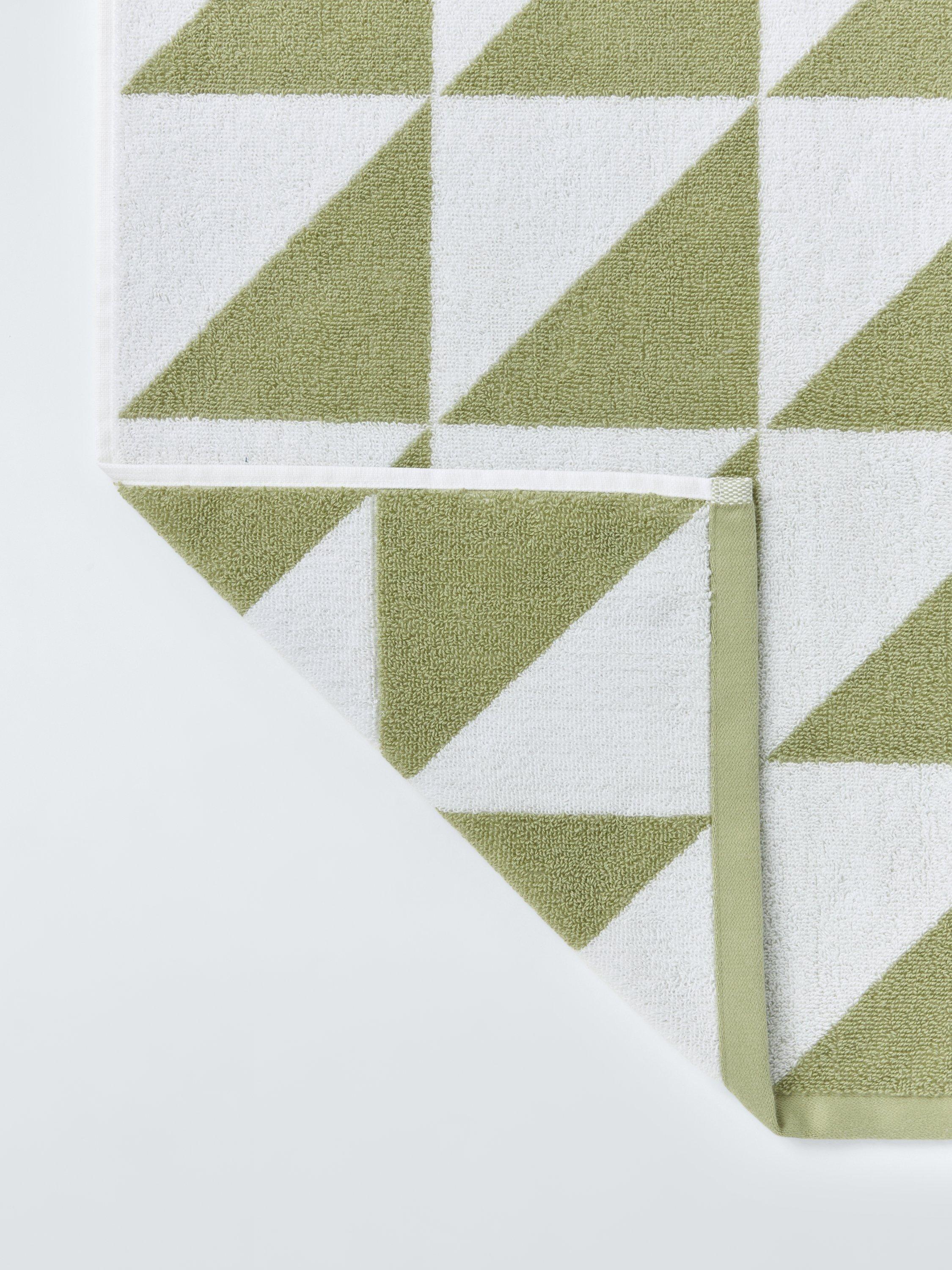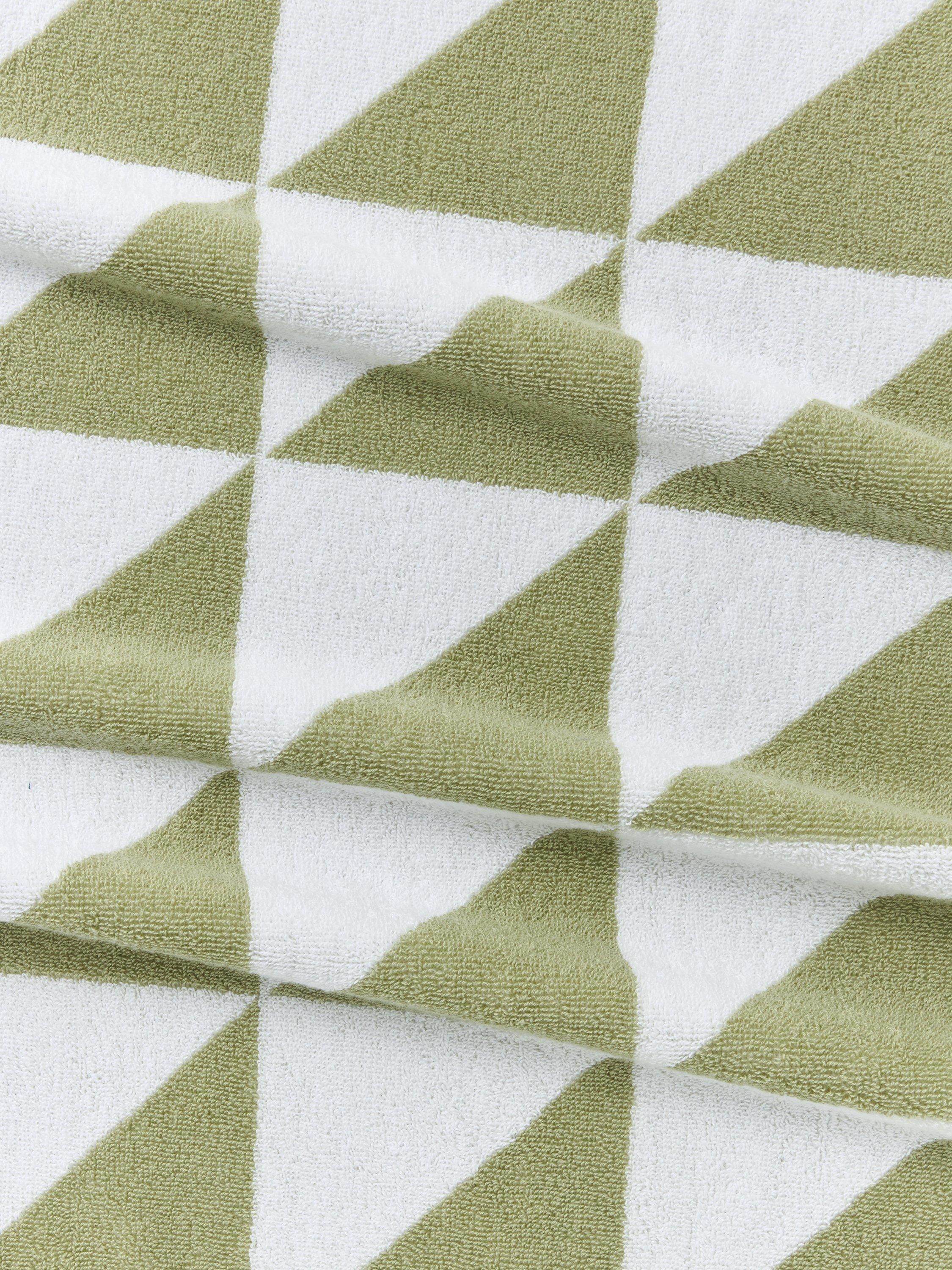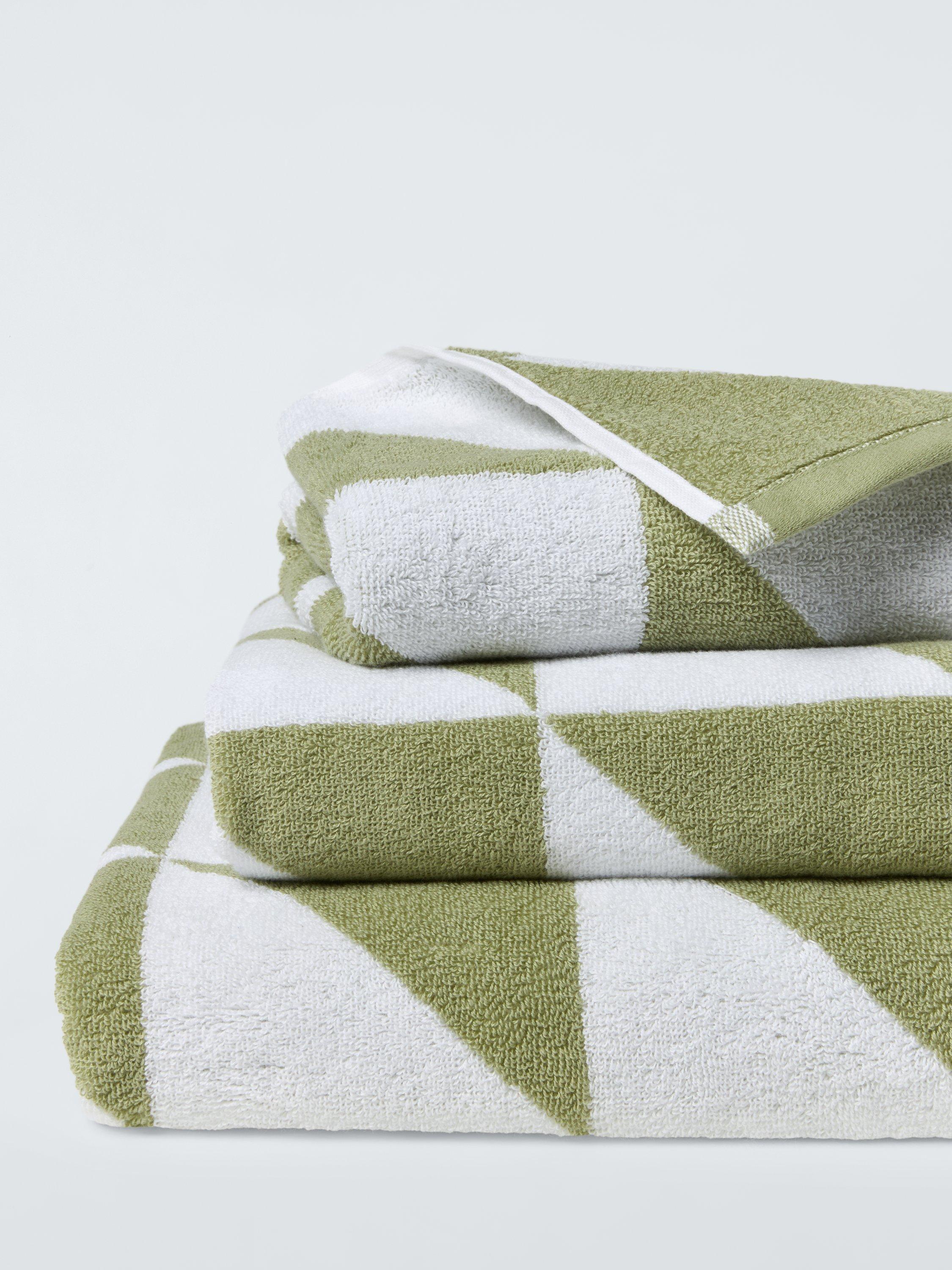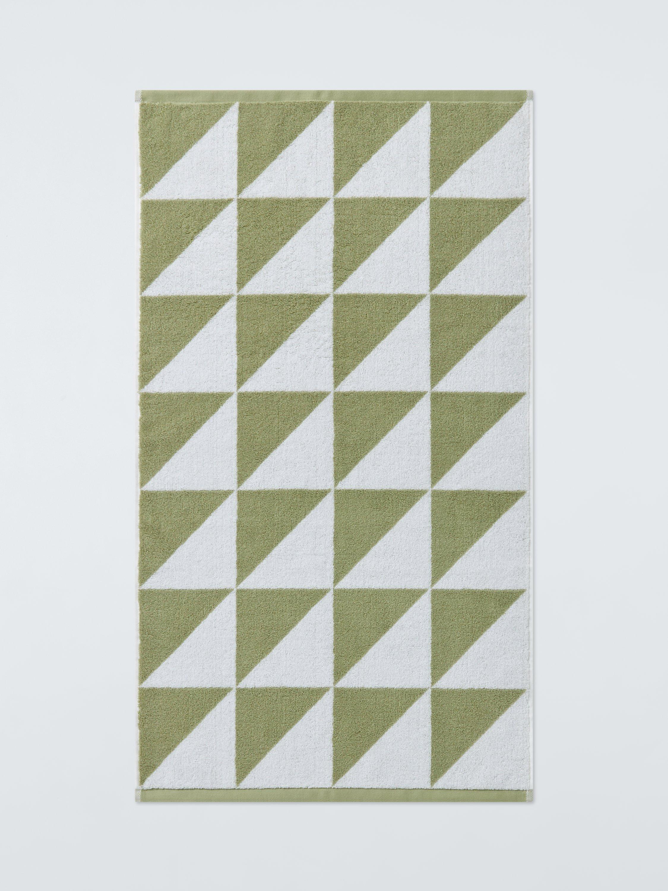 These towels have a fresh and simple design of right angled pale green triangles to complement modern-style bathrooms.