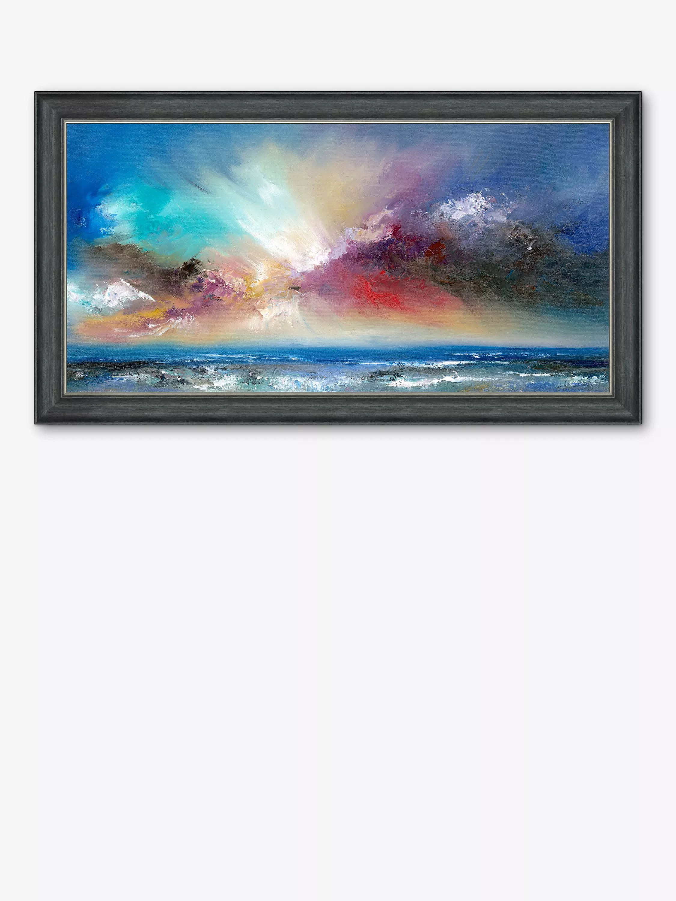 A framed unglazed print of a dramatic and vibrant coastal scene by artist Anna Schofield. Made in the UK, it's finished with a hand-applied artist's texture gel and presented in a black frame, ready to hang on your wall.