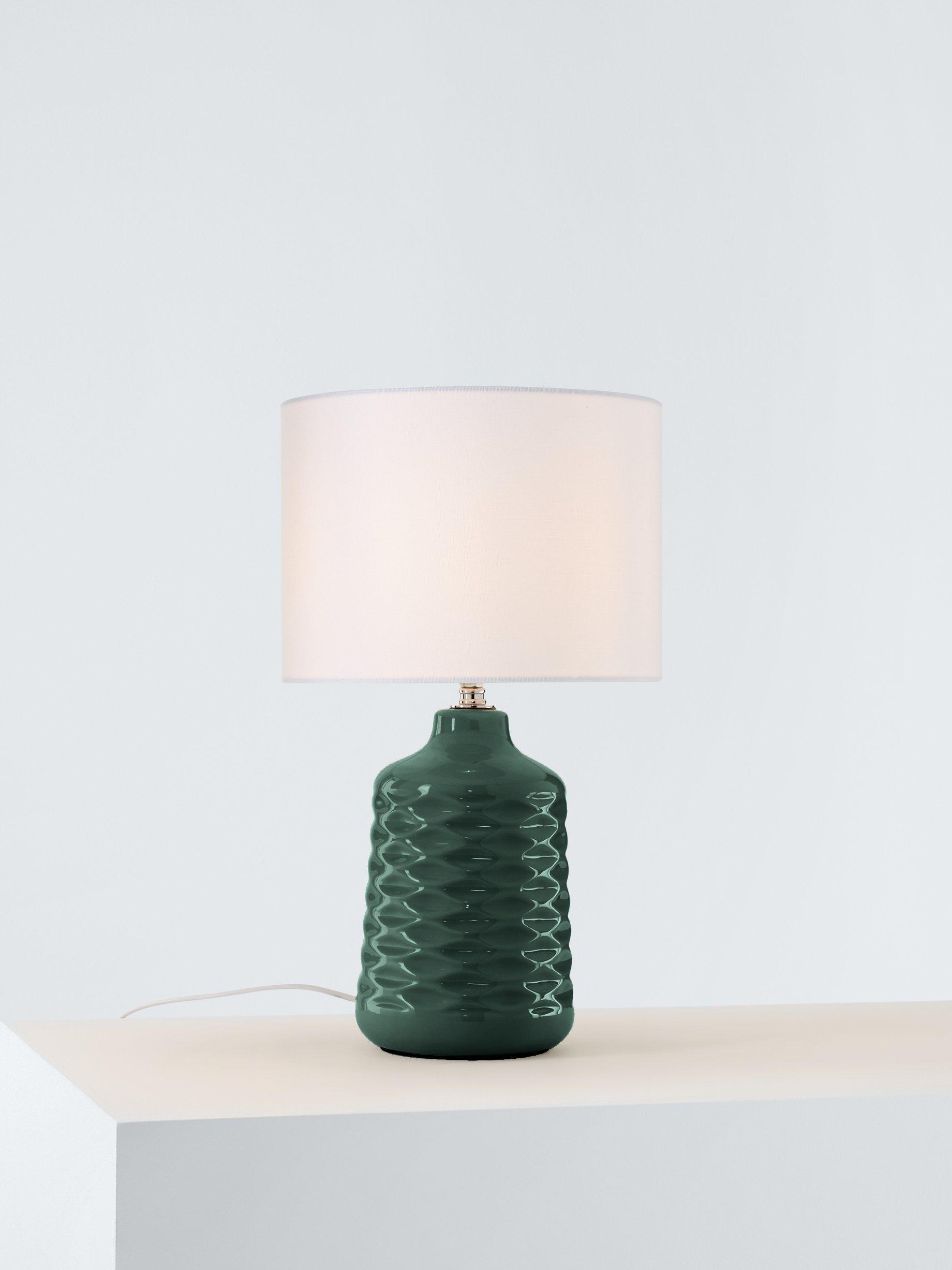 With a ceramic base and fabric lampshade, this table lamp offers a warm glow of light. The base has a ribbed finish and is available in a range of bold or neutral colours, so it's easier than ever to add an instant accent of colour and texture to your space.