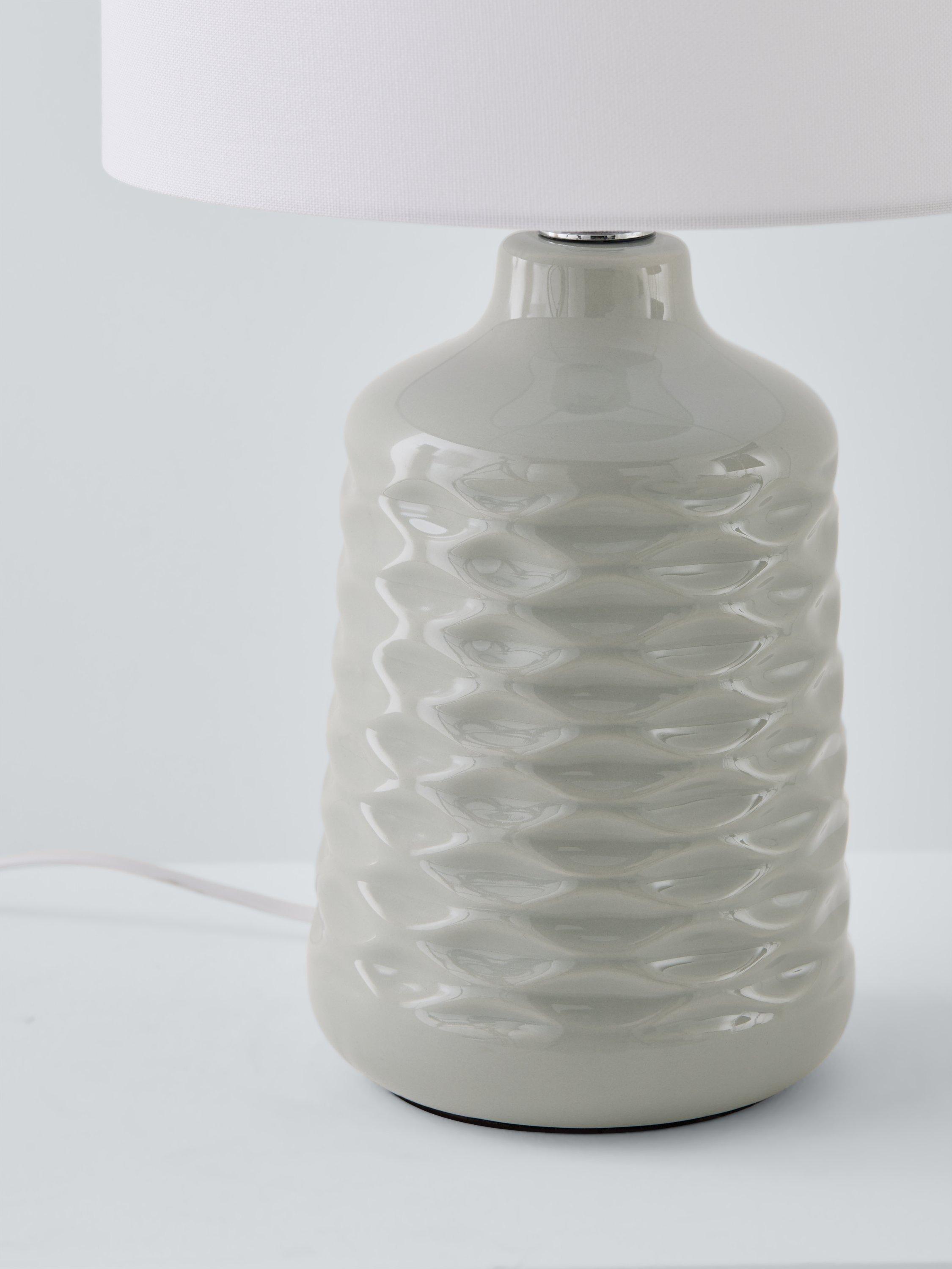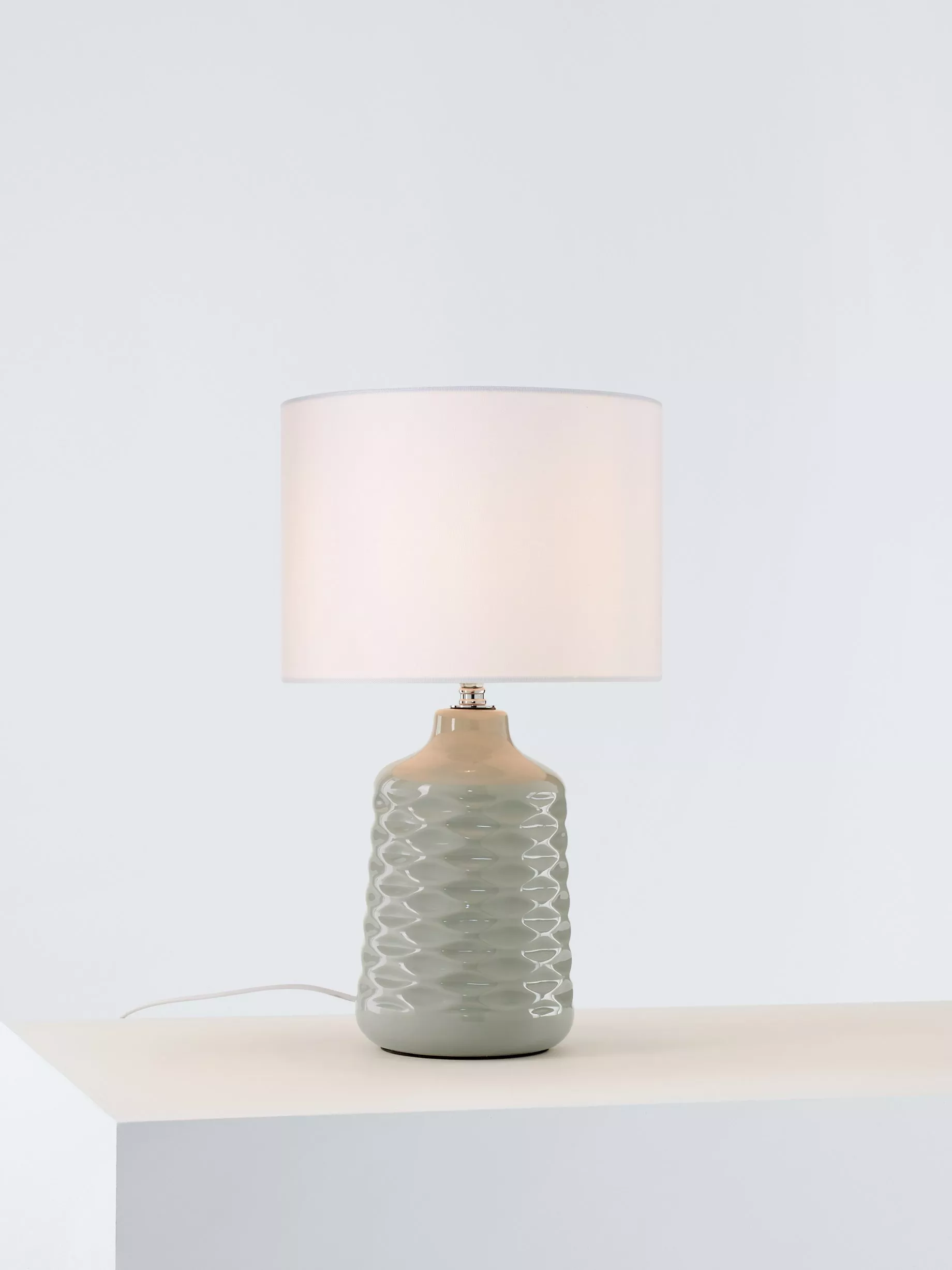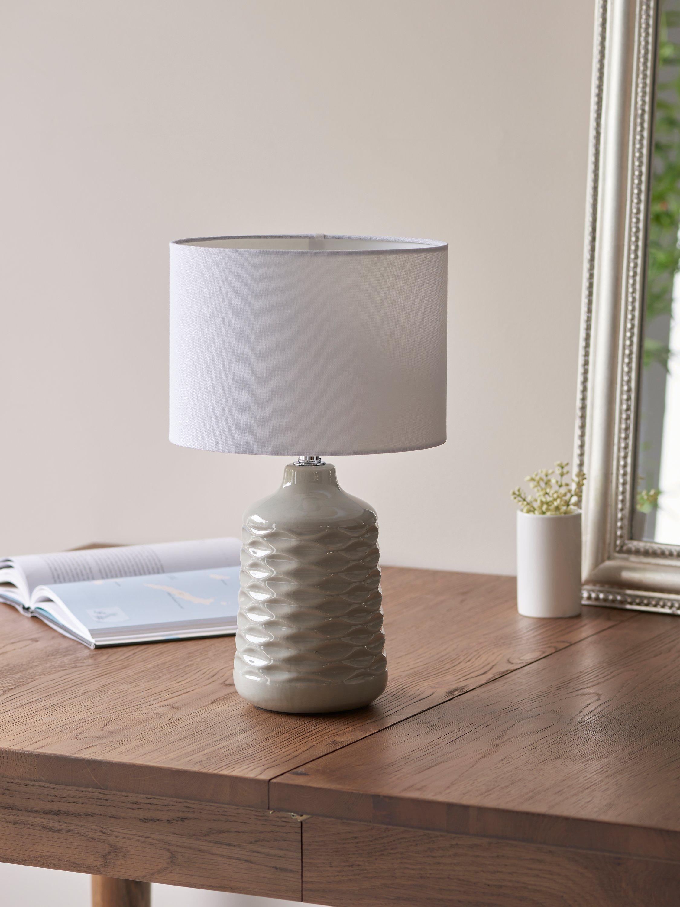 With a ceramic base and fabric lampshade, this table lamp offers a warm glow of light. The base has a ribbed finish and is available in a range of bold or neutral colours, so it's easier than ever to add an instant accent of colour and texture to your space.